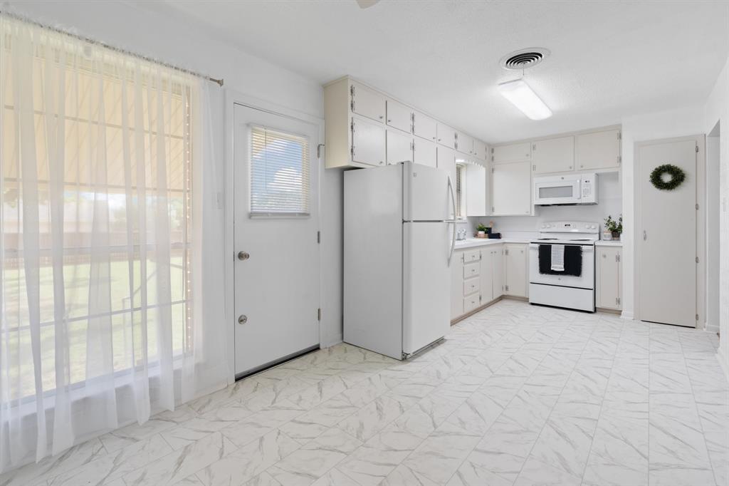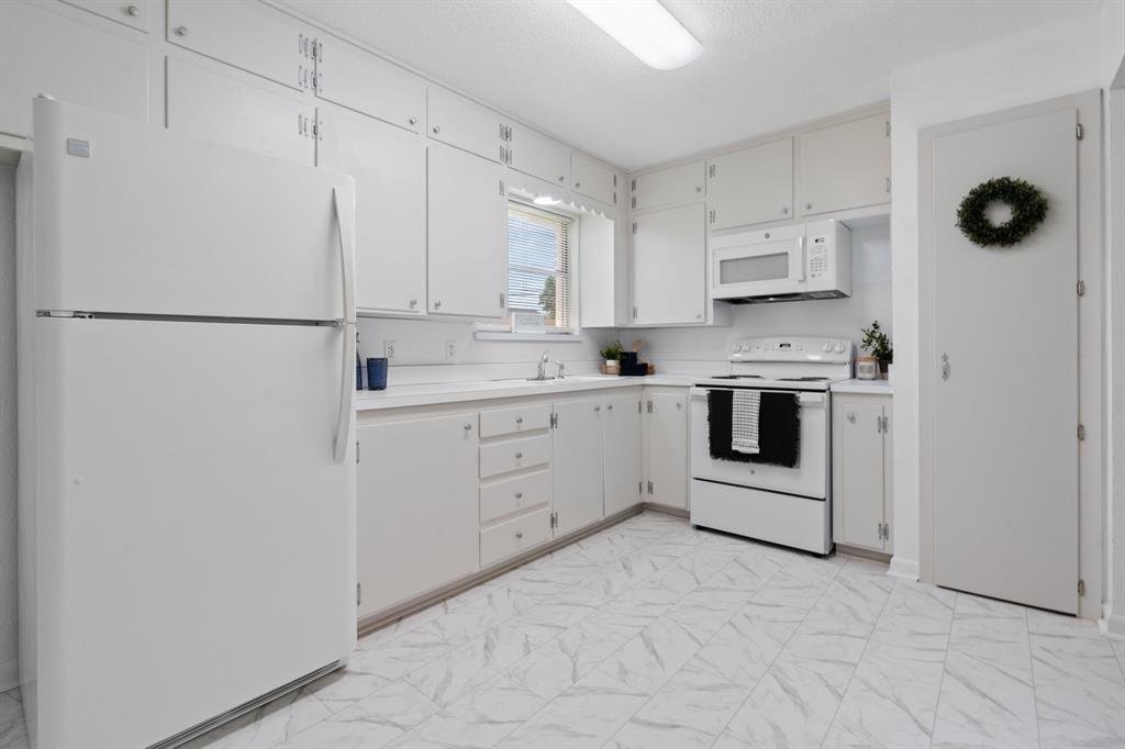 This is an original 1960 dedicated 3 bedroom 1.5 bathroom with a finished front entry single car garage. The home is on a large corner lot. It has a double gate side entry to the back yard with 2 mature trees. The backyard is enclosed with a cedar wood fence for privacy. It has a covered patio and a covered front porch. Home has more than average storage. Each bedroom has a large closet. Two closets are walk-in. The eat-in kitchen's upper cabinets extend to the ceiling. It also has a pantry. The living room has a coat closet. There is a large storage closet in the garage with the washer and dryer connections. The roof and rain gutters were replaced in May 2025. A new Energy Star electric self-cleaning range and microwave, new flooring and fresh interior paint has been added.