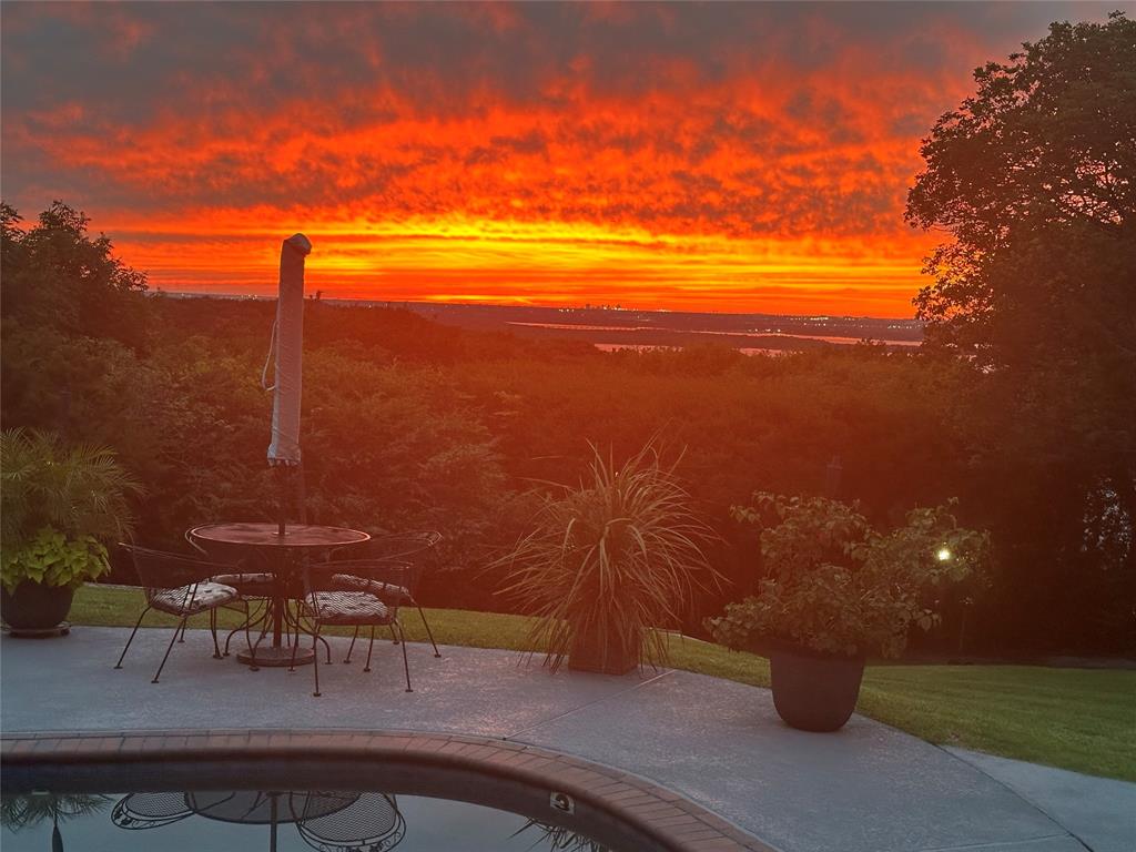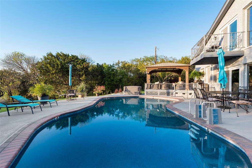 Welcome to a one of a kind gated estate with privacy, exclusivity, serene, natural setting featuring spectacular views of Sunsets, Joe Pool Lake and Downtown Fort Worth! Luxurious and private Primary Suite with a huge walk-in closet, walk-in shower and garden tub, plus a private patio perfect to enjoy your favorite beverage after a long day. Enjoy outdoor entertaining and recreation areas around the sparkling inground gunite pool and covered wood deck with stunning views of Joe Pool Lake and sunset! Elegant Iron door and custom staircase welcomes you when you enter the home. Of the many features of high-quality craftsmanship throughout the home. All living spaces have 1st story views of Joe Pool Lake. Formal living and formal dining areas offer plenty of natural light and are spacious areas for entertaining and comfortable living. Large kitchen features custom cabinets, high end stainless steel appliances and a huge island. Storage building with electricity. Greenhouse for the family gardener. Easy access to DFW airport, downtown Dallas and Fort Worth. Don’t miss your chance to call this truly unique property home!