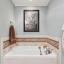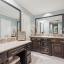The expansive primary suite is a peaceful retreat, complete with serene views of the pool from a large picture window—the perfect place to enjoy morning coffee, a good book, or simply the quiet start of a new day. The ensuite bathroom includes dual sinks, a soaking tub, and separate shower, offering both function and a touch of luxury.