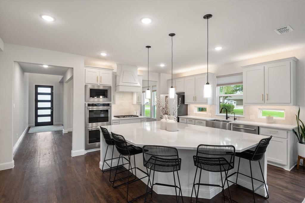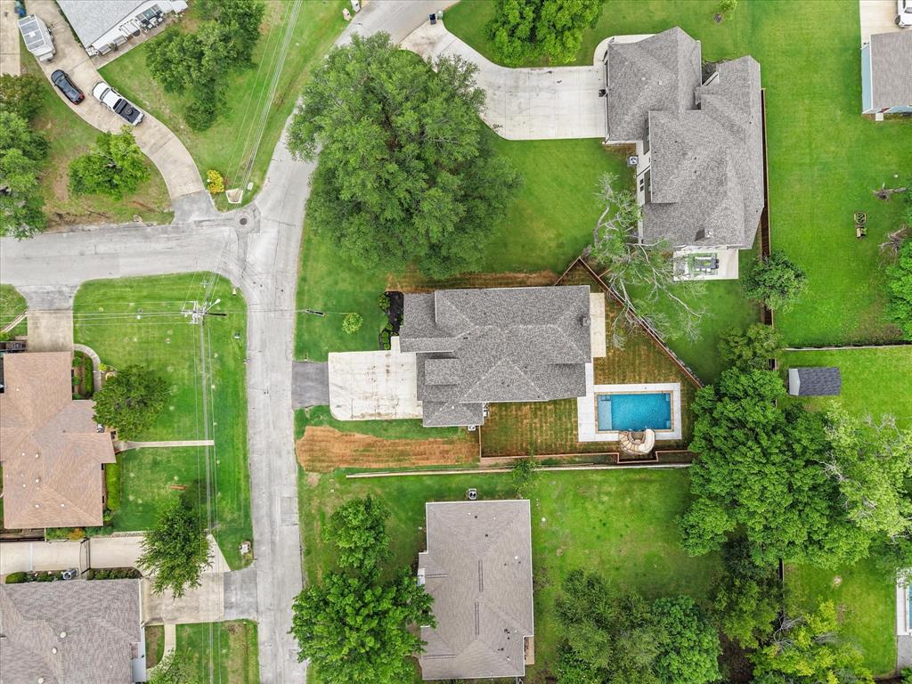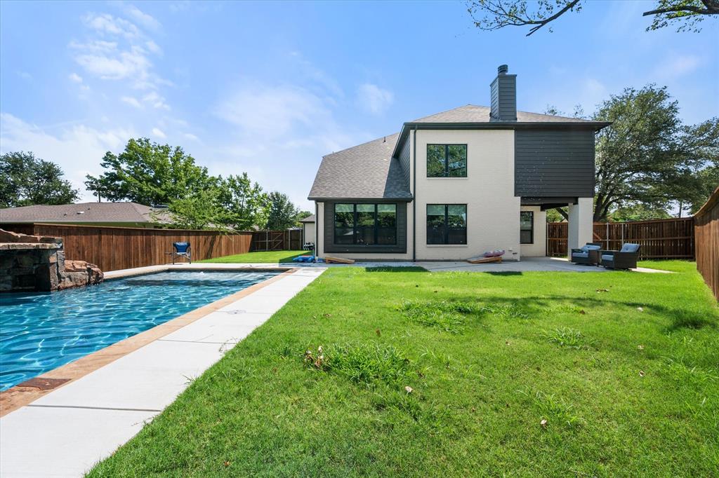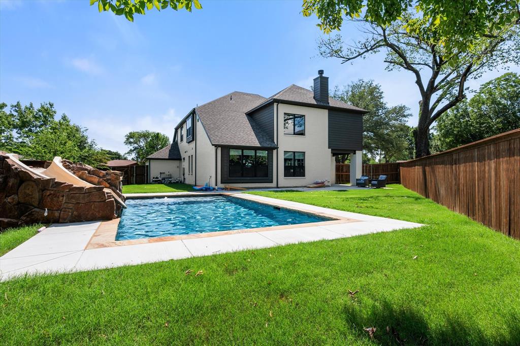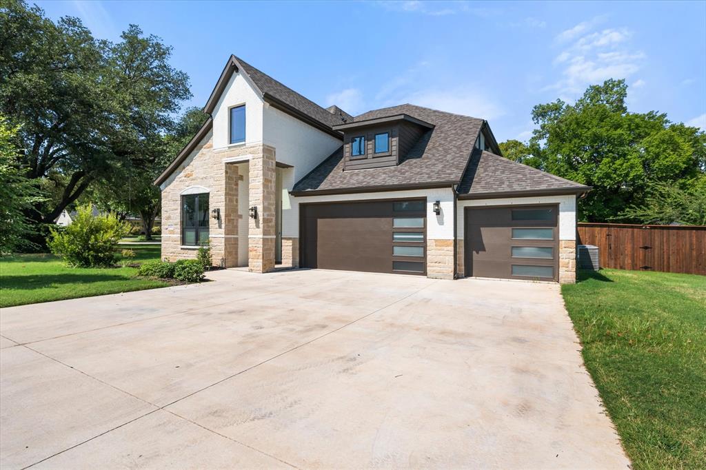 Introducing 3603 High Dr — a breathtaking 2024 custom-built luxury residence in the heart of Grapevine. This meticulously crafted 4-bedroom, 3.5-bath home offers an exceptional blend of refined elegance, smart design, and high-end finishes across an expansive, open-concept layout. Step through the grand entry into light-filled living spaces accentuated by soaring vaulted ceilings, rich wood flooring, and designer-selected lighting fixtures. A gorgeous floor-to-ceiling brick facade, wood-burning fireplace anchors the living room, creating a warm and inviting focal point. The seamless flow between living, dining, and kitchen areas makes this home ideal for both entertaining and everyday comfort. The heart of the home is a stunning gourmet kitchen, complete with gleaming quartz countertops, a generous oversized island with room for seating, loads of cabinet storage, SS built-in microwave and double ovens, farm sink, and premium fixtures. Whether hosting dinner parties or preparing quiet family meals, this modern kitchen delivers both function and form. Retreat to the luxurious first-floor primary suite, designed as a private sanctuary with ample natural light, spa-inspired ensuite bath with separate vanities, soaking tub, stand-in shower, and large walk-in closet. Upstairs, you’ll find a versatile media room along with three additional bedrooms and two full baths. Enjoy work-from-home convenience with a dedicated office space tucked away for privacy. Outside, your private backyard paradise awaits — an in-ground pool with a tranquil waterfall, beautifully landscaped surroundings, and ample patio space for lounging or entertaining. An oversized 3-car garage offers abundant room for vehicles, storage, or hobby space. Located in an established neighborhood just minutes from Historic Downtown Grapevine, Lake Grapevine, top-rated schools, and DFW International Airport, this home delivers the ultimate in luxury living, location, and lifestyle. Schedule a showing today!