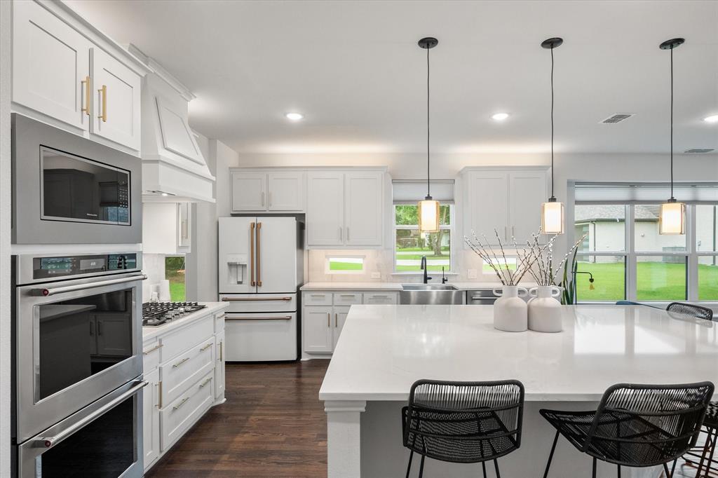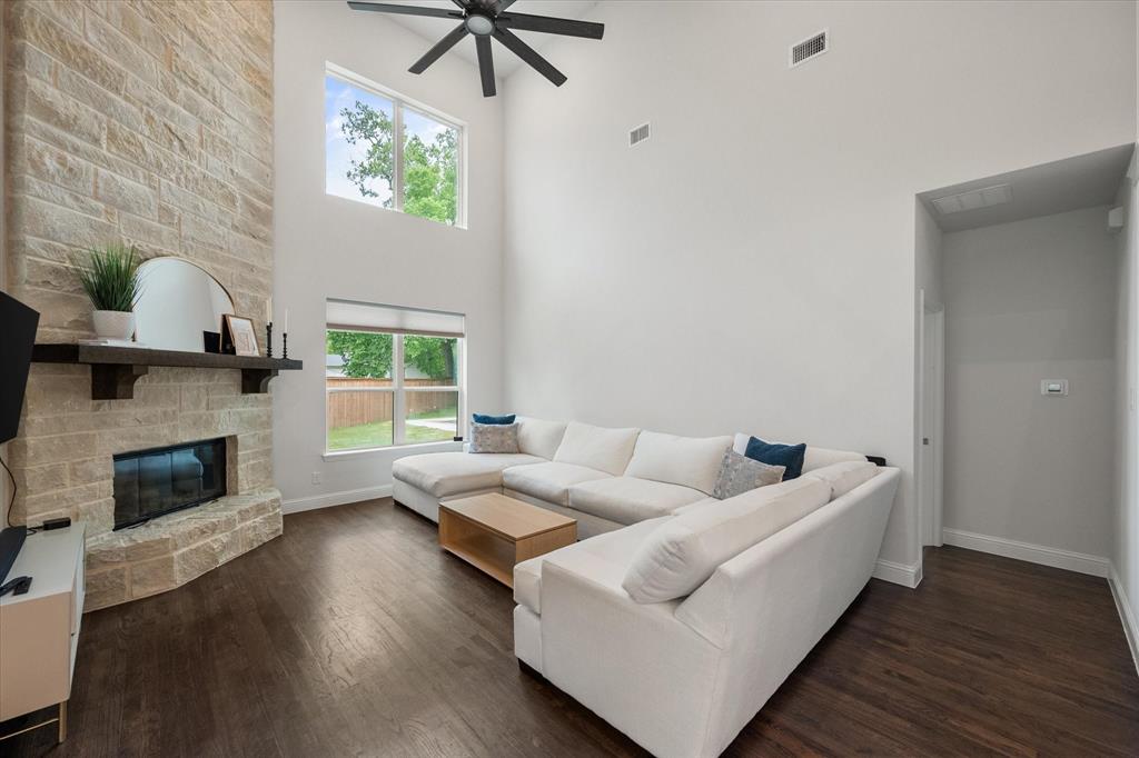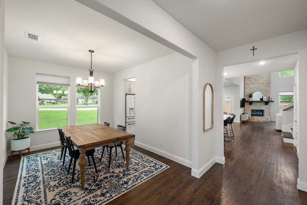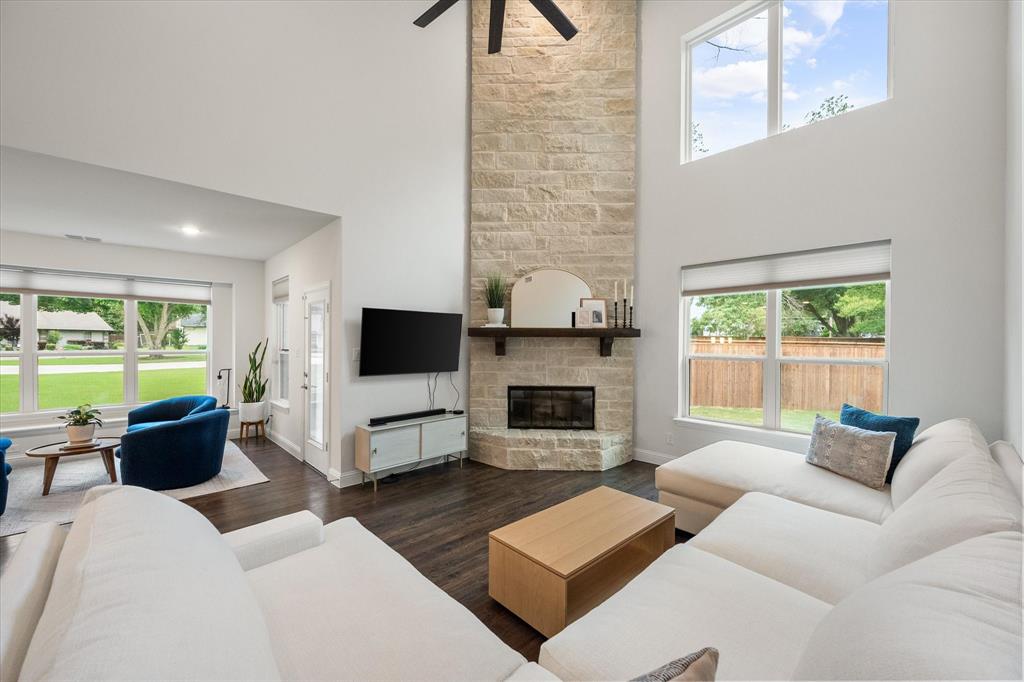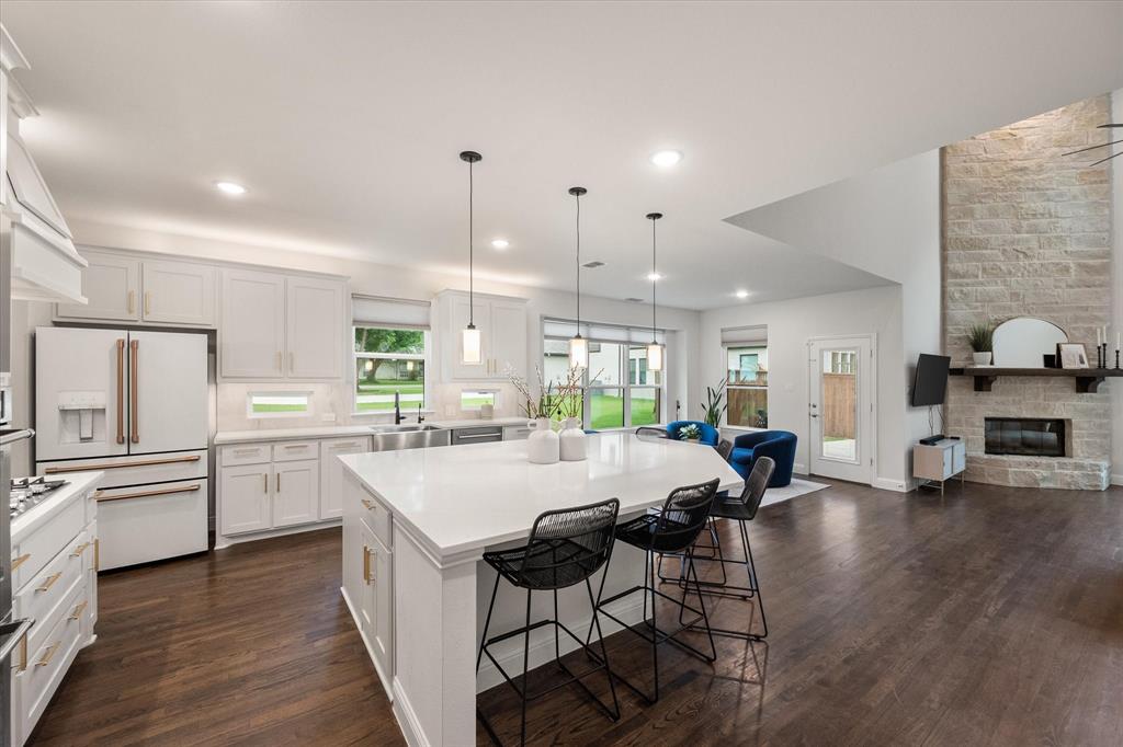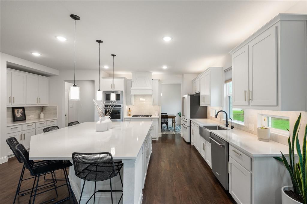 Introducing 3603 High Dr — a breathtaking 2024 custom-built luxury residence in the heart of Grapevine. This meticulously crafted 4-bedroom, 3.5-bath home offers an exceptional blend of refined elegance, smart design, and high-end finishes across an expansive, open-concept layout. Step through the grand entry into light-filled living spaces accentuated by soaring vaulted ceilings, rich wood flooring, and designer-selected lighting fixtures. A gorgeous floor-to-ceiling brick facade, wood-burning fireplace anchors the living room, creating a warm and inviting focal point. The seamless flow between living, dining, and kitchen areas makes this home ideal for both entertaining and everyday comfort. The heart of the home is a stunning gourmet kitchen, complete with gleaming quartz countertops, a generous oversized island with room for seating, loads of cabinet storage, SS built-in microwave and double ovens, farm sink, and premium fixtures. Whether hosting dinner parties or preparing quiet family meals, this modern kitchen delivers both function and form. Retreat to the luxurious first-floor primary suite, designed as a private sanctuary with ample natural light, spa-inspired ensuite bath with separate vanities, soaking tub, stand-in shower, and large walk-in closet. Upstairs, you’ll find a versatile media room along with three additional bedrooms and two full baths. Enjoy work-from-home convenience with a dedicated office space tucked away for privacy. Outside, your private backyard paradise awaits — an in-ground pool with a tranquil waterfall, beautifully landscaped surroundings, and ample patio space for lounging or entertaining. An oversized 3-car garage offers abundant room for vehicles, storage, or hobby space. Located in an established neighborhood just minutes from Historic Downtown Grapevine, Lake Grapevine, top-rated schools, and DFW International Airport, this home delivers the ultimate in luxury living, location, and lifestyle. Schedule a showing today!