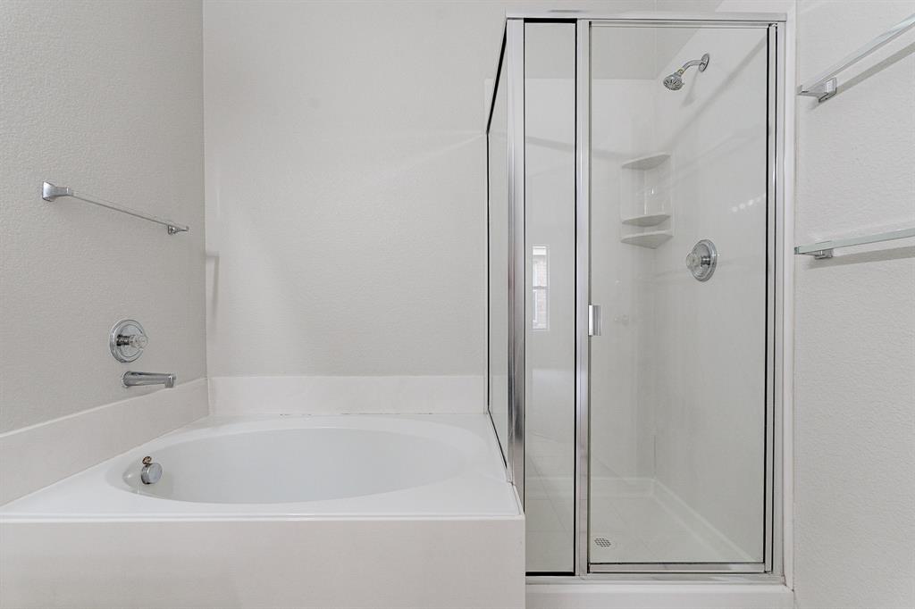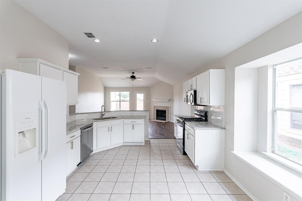 Included 100-Day Home Warranty with buyer activation. Welcome to this charming home that is sure to impress. The living room boasts a cozy fireplace, perfect for those chilly evenings. The walls are adorned with a neutral color paint scheme, providing a calming atmosphere. The kitchen features an accent backsplash that adds a touch of elegance. The adjacent primary bedroom is a serene retreat with a large walk-in closet providing ample storage. The primary bathroom is with double sinks, a separate tub, and a shower, offering a spa-like experience. Outside, you'll find a patio perfect for entertaining, and a fenced-in backyard for your privacy. The house is finished with fresh exterior paint, enhancing its curb appeal. Don't miss out on this gem, it's a must-see! This home has been virtually staged to illustrate its potential.