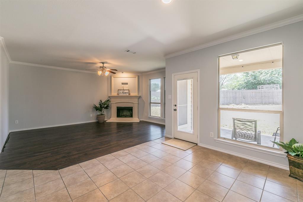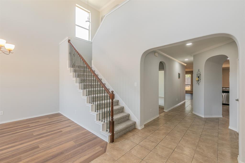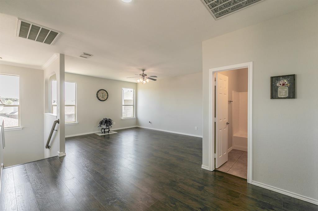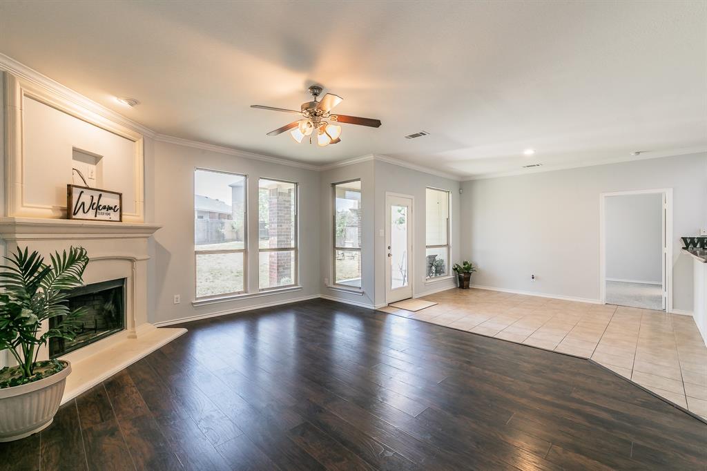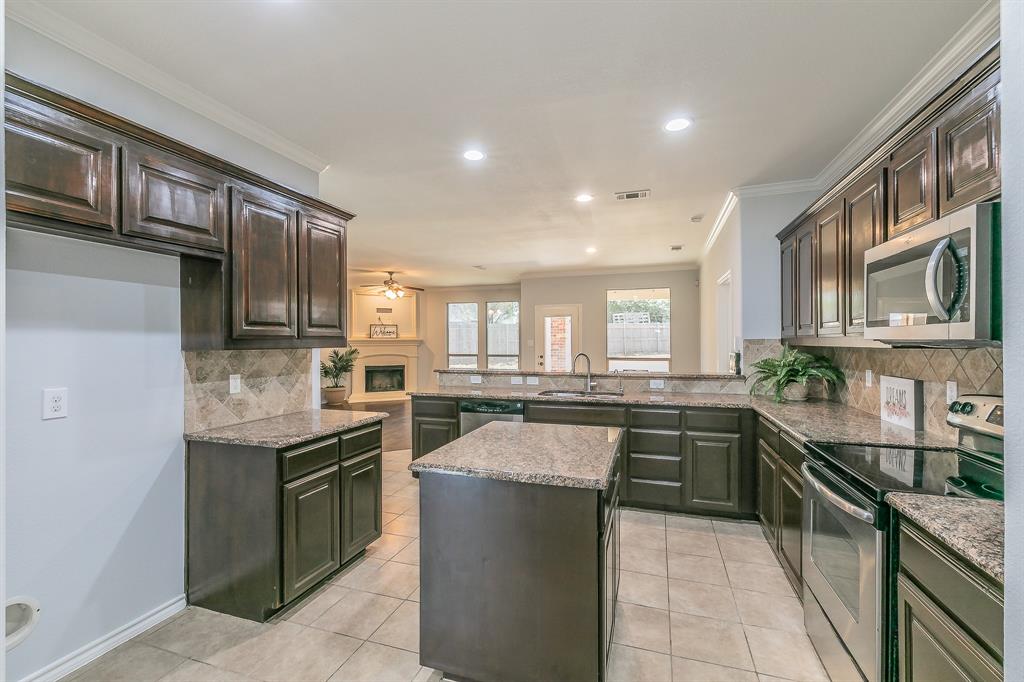 Welcome to your new home! A stunning 2-story home over 3300 SQ FT located in a cul-de-sac in the highly acclaimed Dorado Ranch subdivision right off HWY287. It features 5 beds and 3 full baths. The lower level boasts an inviting high ceiling entry and floor plan with an elegant formal living room to the left as you enter. As you continue into home, it leads to the huge kitchen, complete with stainless steel appliances, an island, a large breakfast bar area, and a walk-in pantry. Adjacent is the dining area enjoined by the large and open living room overlooking the gas fireplace that has prewired HD connection integrated into the wall. It features the master bedroom downstairs with a huge walk-in closet and a 5th bedroom or office that is also downstairs. All the other oversized rooms are upstairs. Upstairs, you are also greeted by a huge open family & game room space, ready for countless gatherings and lots of family fun. The house features vinyl plank flooring and tile combination throughout and new carpet in all of the bedrooms. Outside, you will find your personal oasis to enjoy a huge backyard that is awaiting your imagination. It has fresh paint, new accessories, and 2 new outside AC units. The Dorado Ranch community offers fantastic amenities, including large playground and pool areas, a walking-jogging path, and a covered area for birthday gatherings. With its close proximity to major roads, this home combines luxury living with convenience. Just the home you were looking for in Haslet! Schedule your showing today.