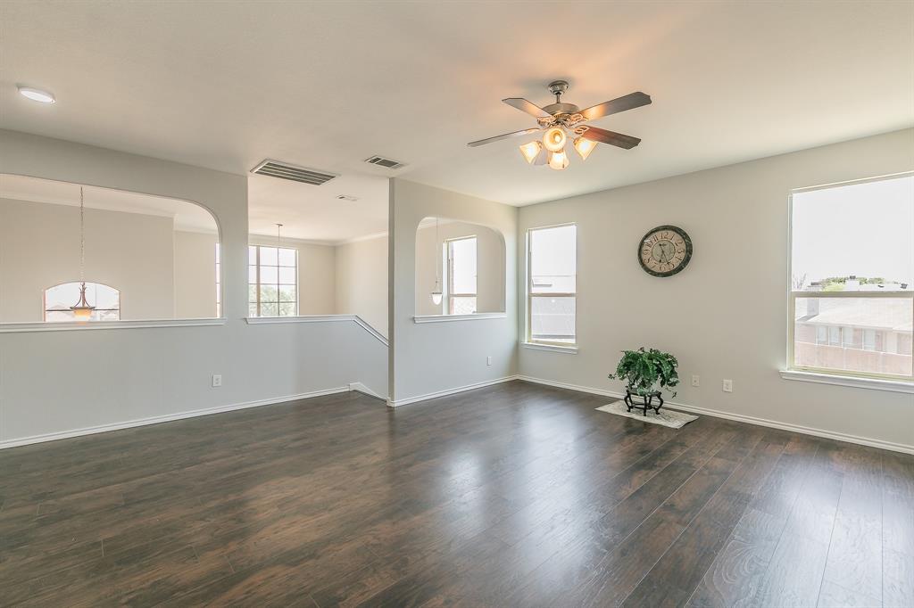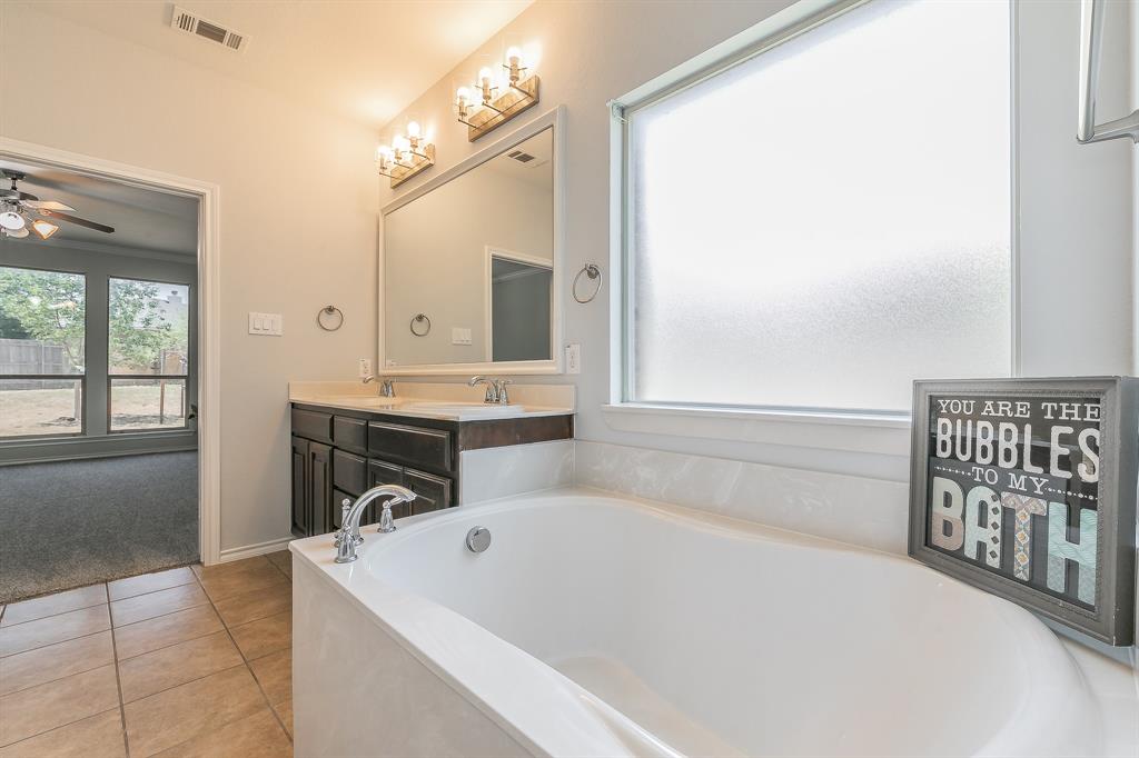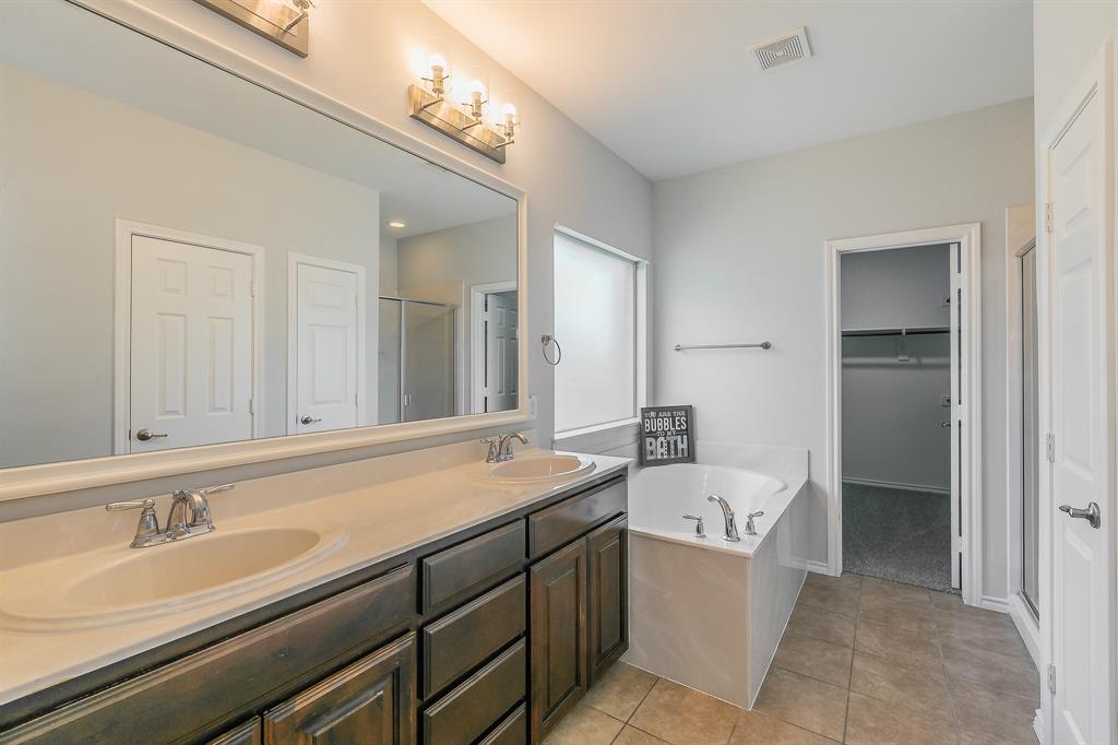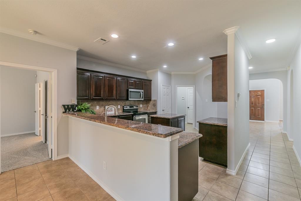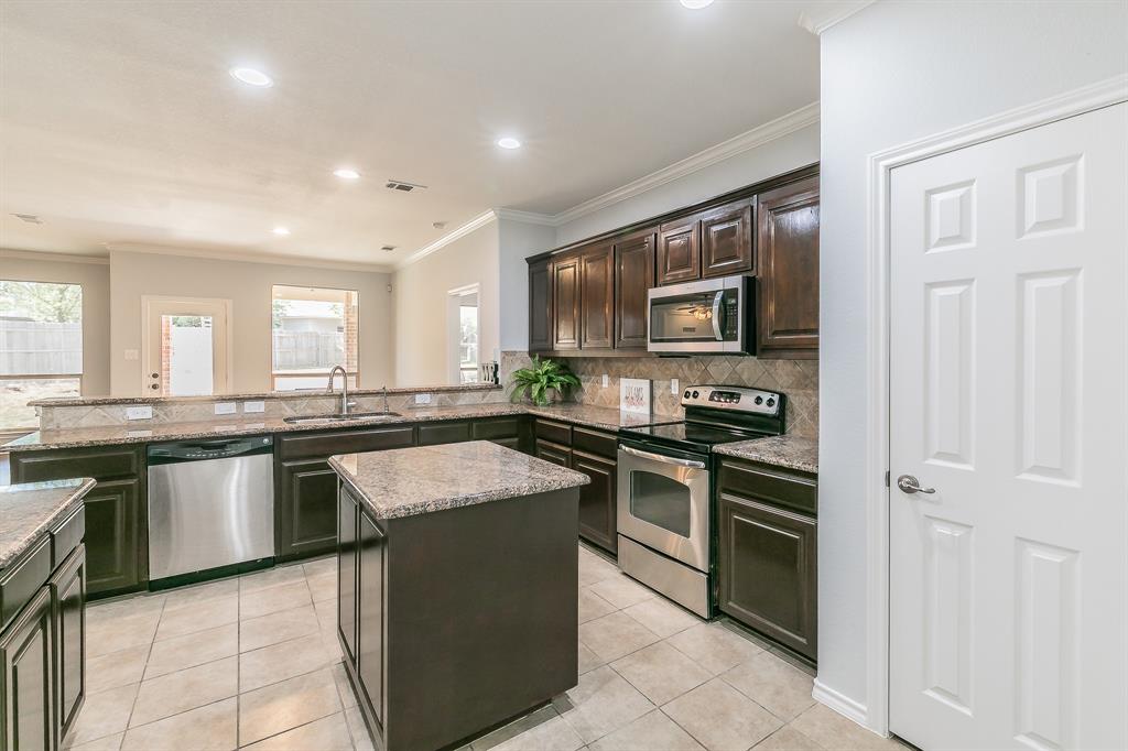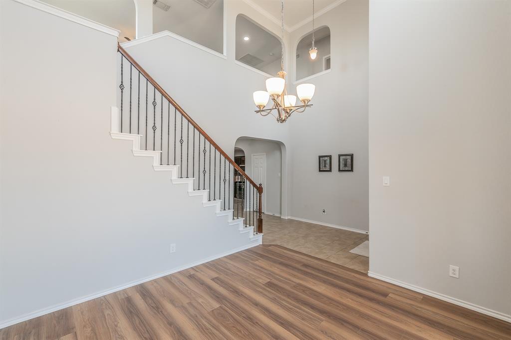 Welcome to your new home! A stunning 2-story home over 3300 SQ FT located in a cul-de-sac in the highly acclaimed Dorado Ranch subdivision right off HWY287. It features 5 beds and 3 full baths. The lower level boasts an inviting high ceiling entry and floor plan with an elegant formal living room to the left as you enter. As you continue into home, it leads to the huge kitchen, complete with stainless steel appliances, an island, a large breakfast bar area, and a walk-in pantry. Adjacent is the dining area enjoined by the large and open living room overlooking the gas fireplace that has prewired HD connection integrated into the wall. It features the master bedroom downstairs with a huge walk-in closet and a 5th bedroom or office that is also downstairs. All the other oversized rooms are upstairs. Upstairs, you are also greeted by a huge open family & game room space, ready for countless gatherings and lots of family fun. The house features vinyl plank flooring and tile combination throughout and new carpet in all of the bedrooms. Outside, you will find your personal oasis to enjoy a huge backyard that is awaiting your imagination. It has fresh paint, new accessories, and 2 new outside AC units. The Dorado Ranch community offers fantastic amenities, including large playground and pool areas, a walking-jogging path, and a covered area for birthday gatherings. With its close proximity to major roads, this home combines luxury living with convenience. Just the home you were looking for in Haslet! Schedule your showing today.