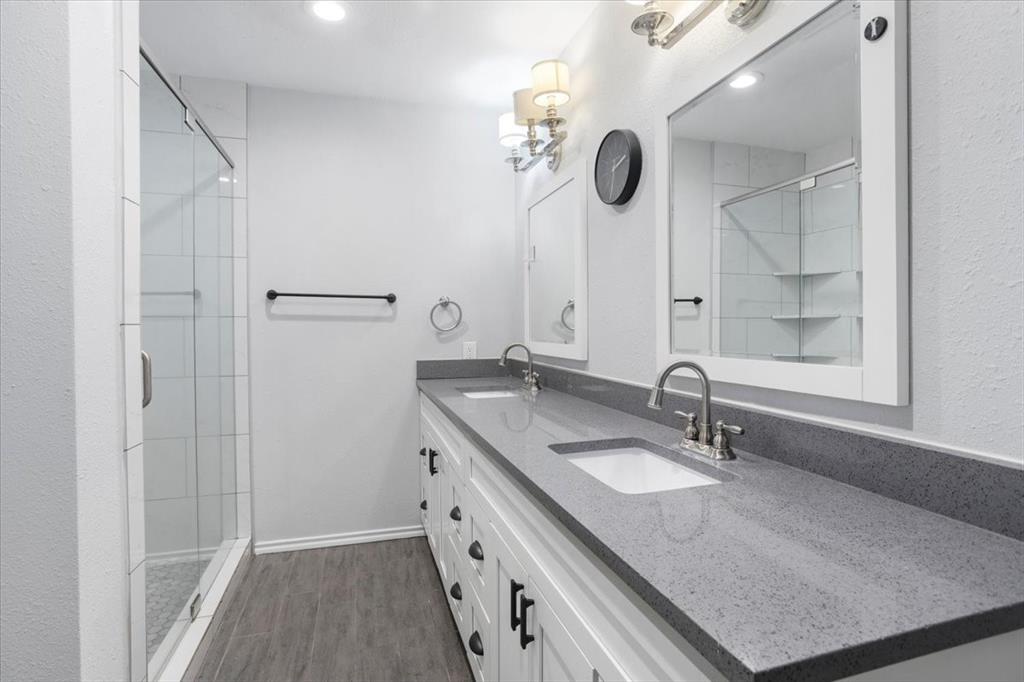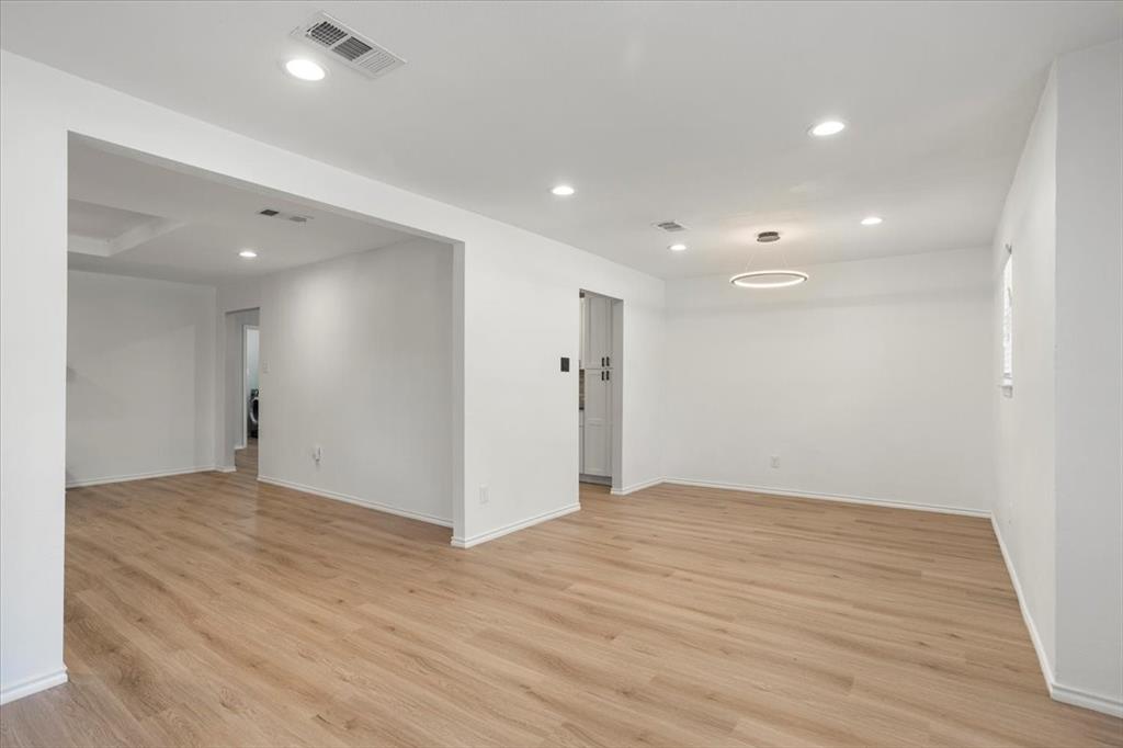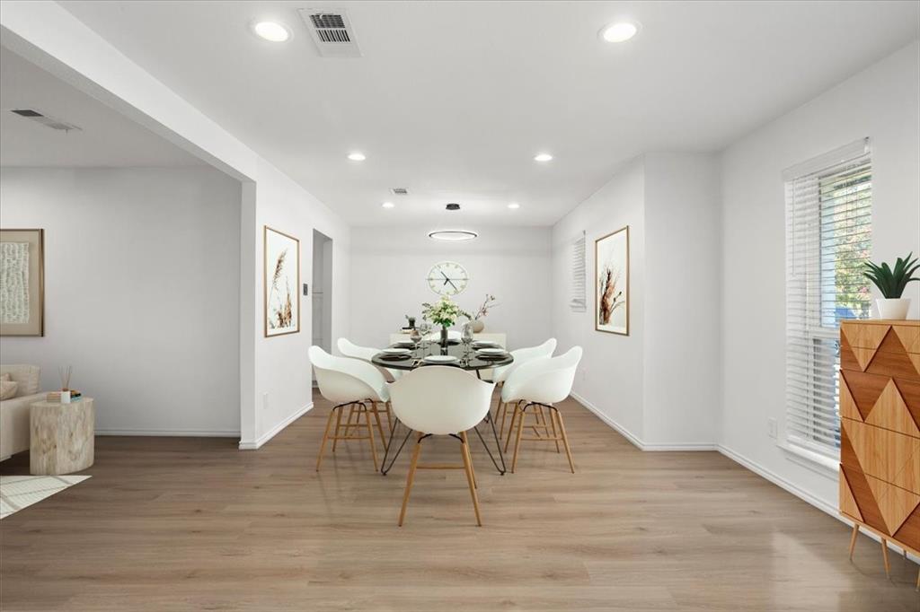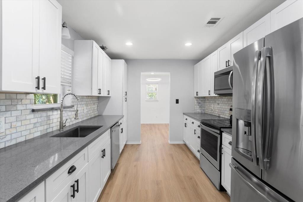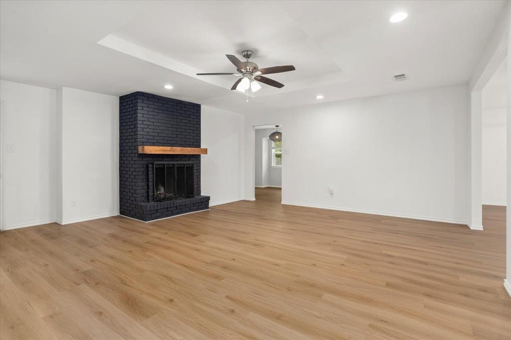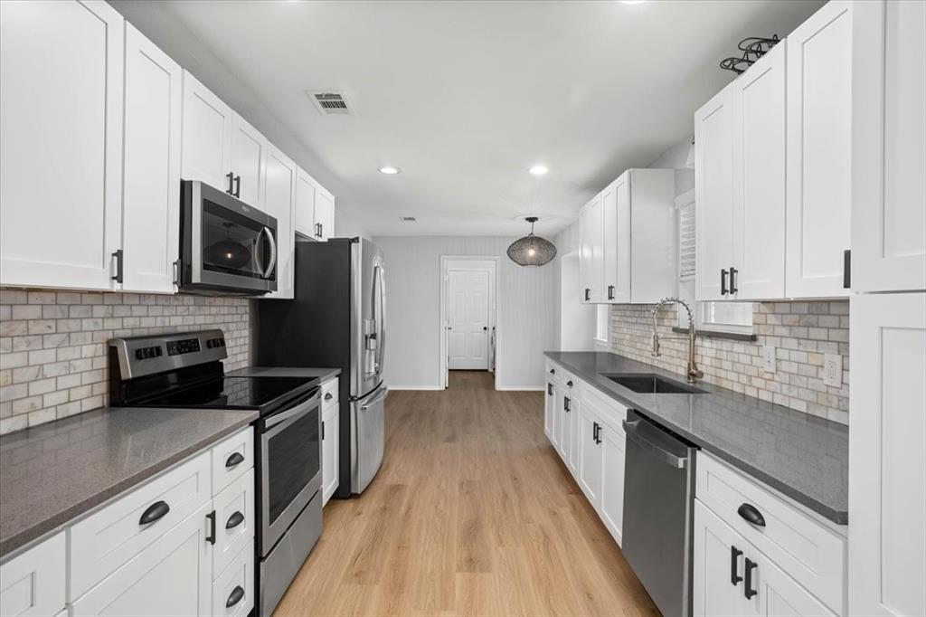 Perfectly situated on nearly a quarter-acre lot in desirable Pantego, this beautifully remodeled 4 bedroom, 2.5 bath home has been carefully updated and maintained, blending modern elegance with everyday comfort. The light-filled kitchen showcases stainless-steel appliances, sleek white cabinetry with black hardware, and a custom designer tile backsplash. New luxury vinyl plank flooring flows seamlessly throughout spacious living areas, including an inviting living room anchored by a dramatic floor-to-ceiling black brick fireplace with a custom mantle. The dining area offers effortless flow for both entertaining and daily living.
