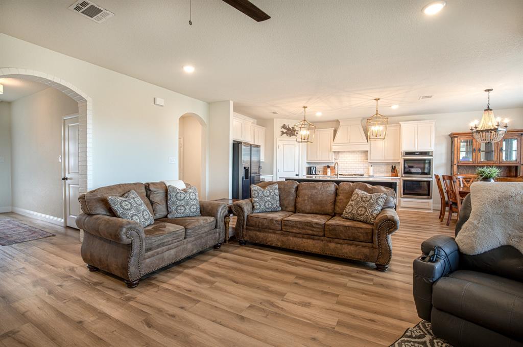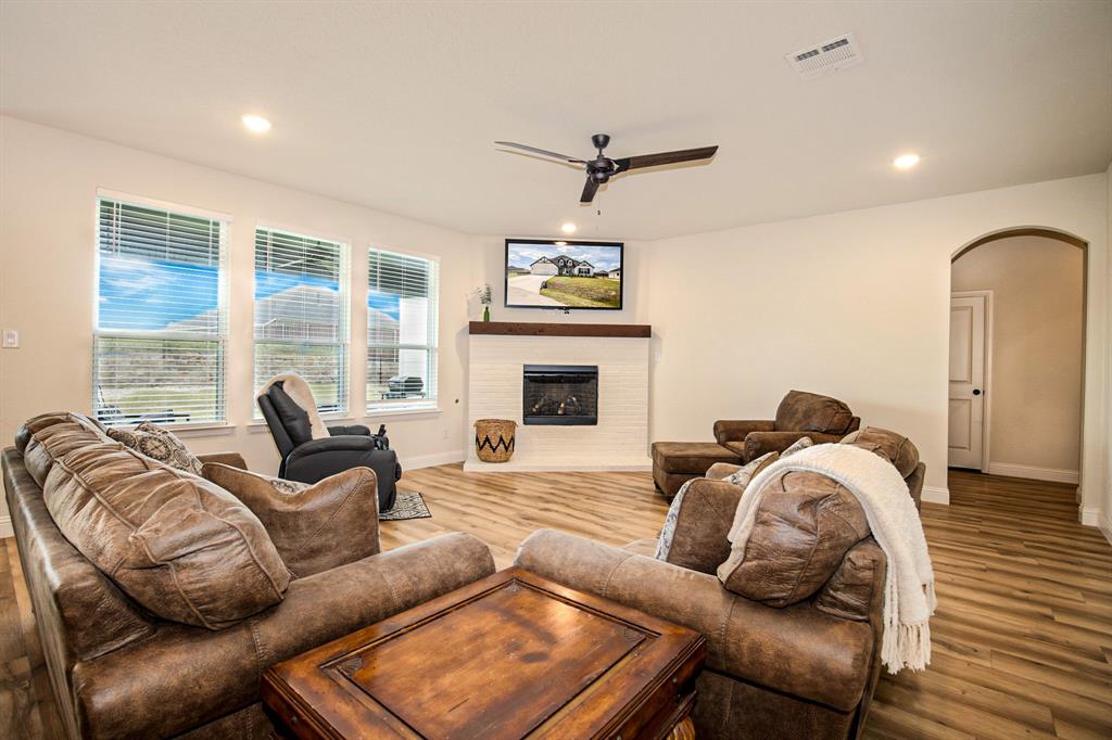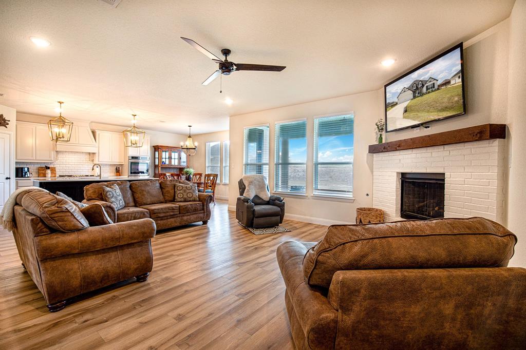 Seller willing to offer up to $10K IN BUYER CONCESSION with acceptable offer. This beautiful home in the highly sought-after Godley ISD combines style, comfort, and everyday functionality. An inviting oversized front porch, landscaping, and a full sprinkler system set the tone. Inside, luxury vinyl plank floors flow through an open-concept design, from the spacious living room with a cozy gas fireplace to the chef’s kitchen featuring an oversized island, quartz countertops, farmhouse sink, stainless steel double convection oven, and elegant gold-accent lighting. Solid cabinetry offers generous storage, while large windows fill the space with natural light. The private primary suite includes a spa-like bath with an oversized vanity and dual shower heads in the walk-through shower. Three additional bedrooms with large closets share a stylish hallway bath on the opposite side of the home. Outside, enjoy a large covered patio and a backyard big enough for a pool or play area. Community amenities include a pool and clubhouse. See 3D virtual tour and schedule an appointment today!