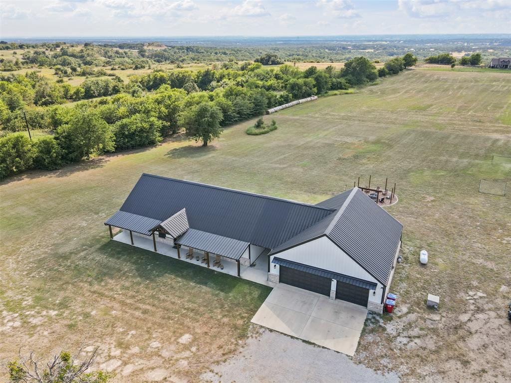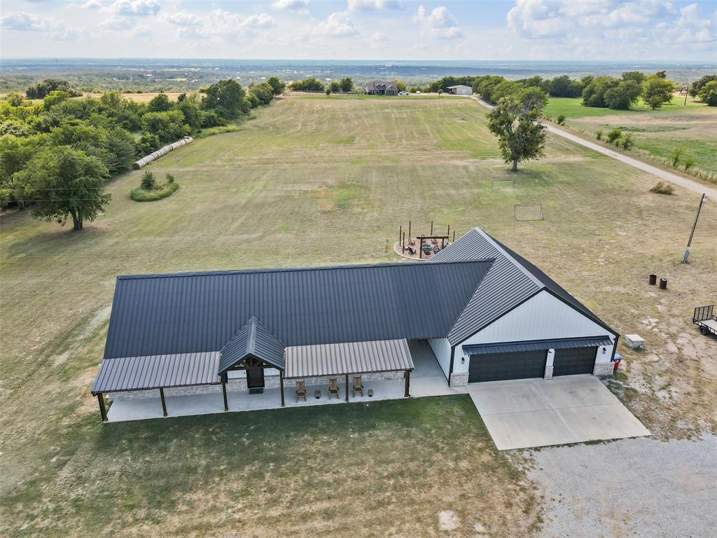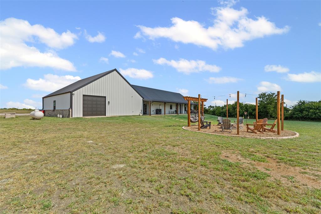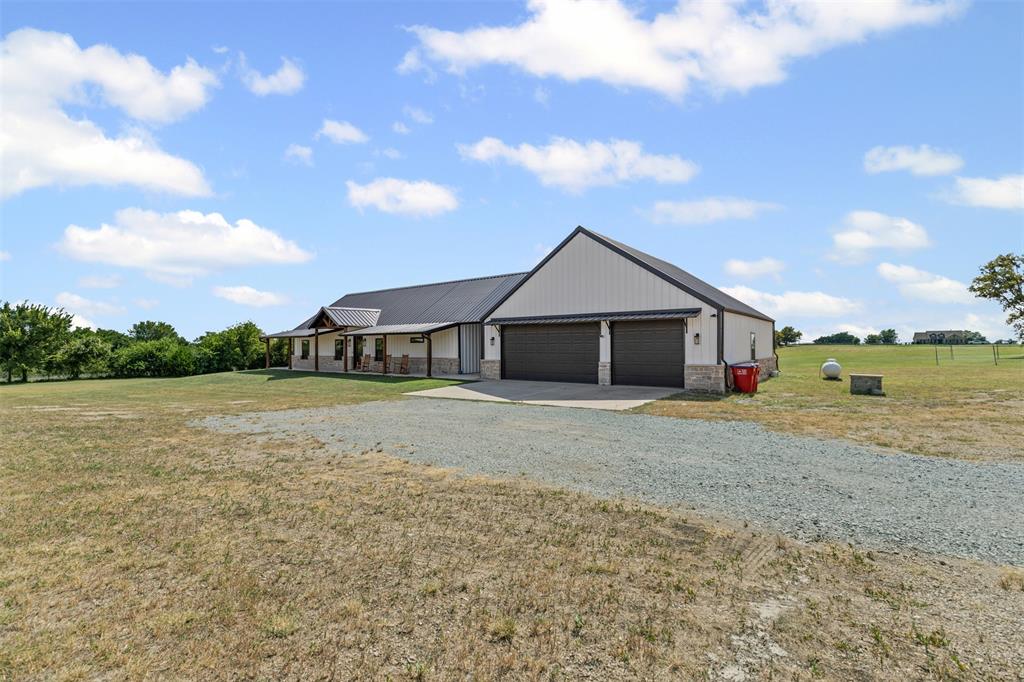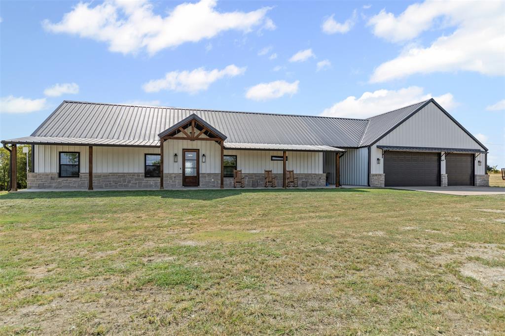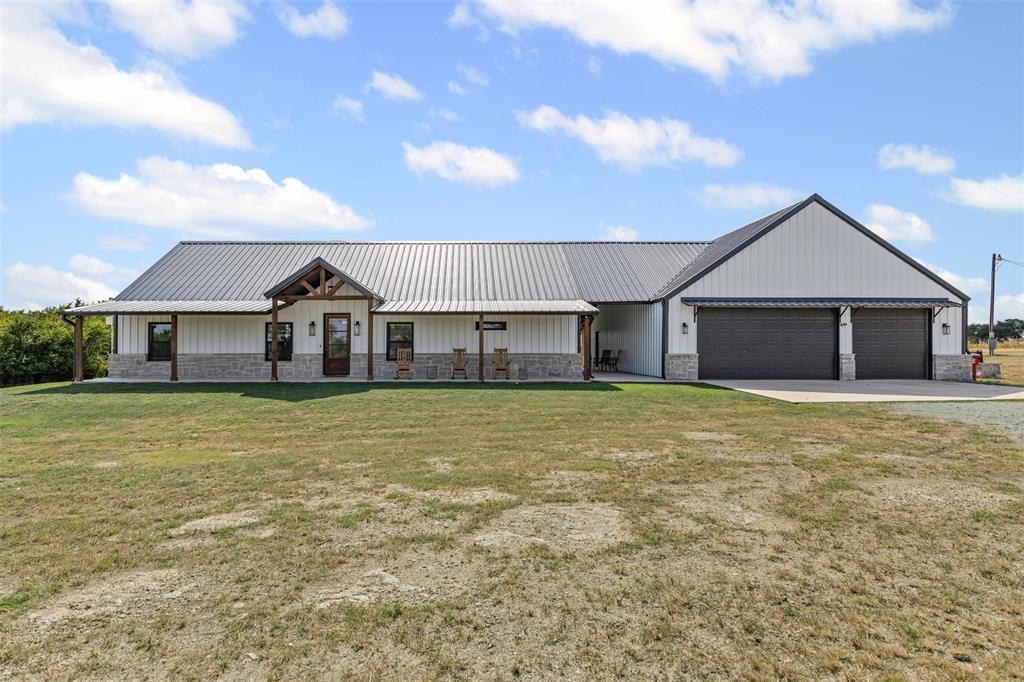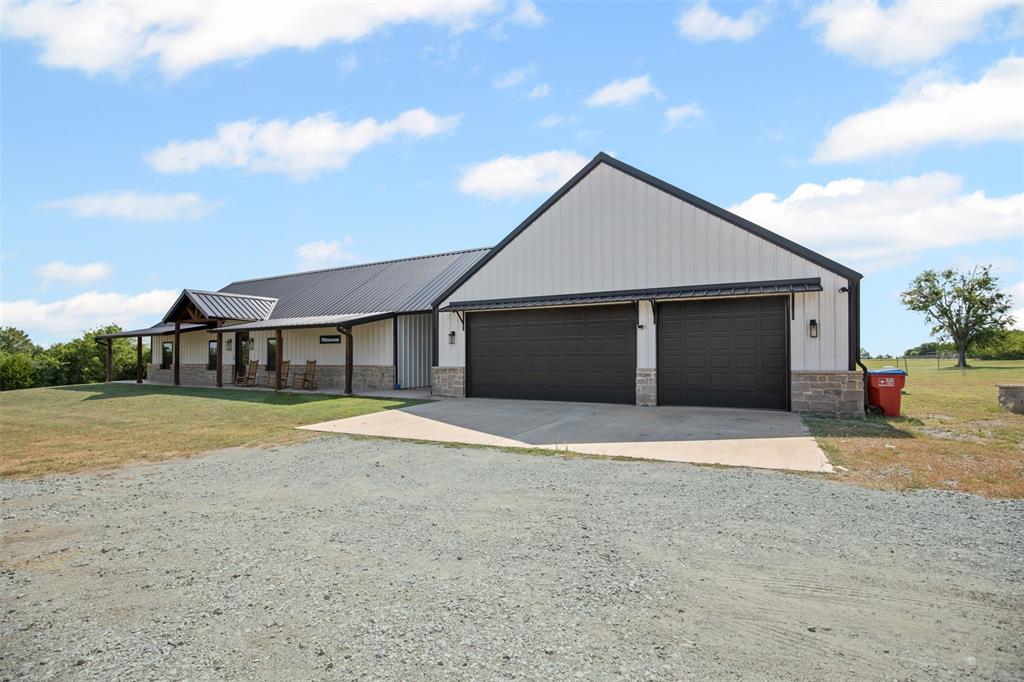Hard to find small acreage property with a gorgeous modern farmhouse style home! This 8.62 acre property is outside the city limits, has no restrictions and adjoins the LBJ Grasslands! The home, built in 2023, boasts 3 bedrooms - one with a private loft - 2 full and 1 half baths, a study or office, open concept floorplan with stained, scored concrete floors designed to look like wood, a delightful banquet table off the kitchen, double ovens, pot filler, a killer laundry-mud room-pantry with separate access to the covered side porch. The detached 4-5 car garage-shop is amazing! A darling vintage barn with shed to house miscellaneous equipment and a large firepit nicely complement the home. Did I mention that the Bad Boy Zero turn mower comes with? Come out to the country and be wowed!!