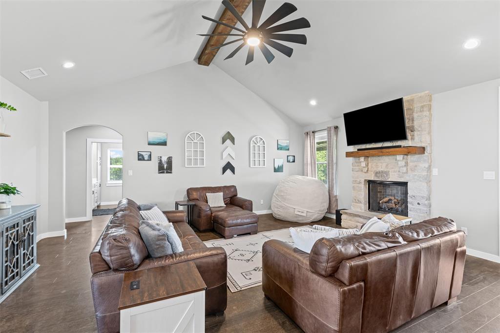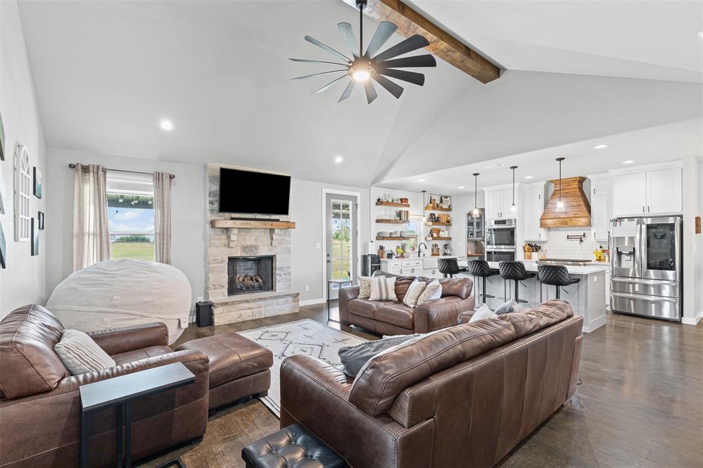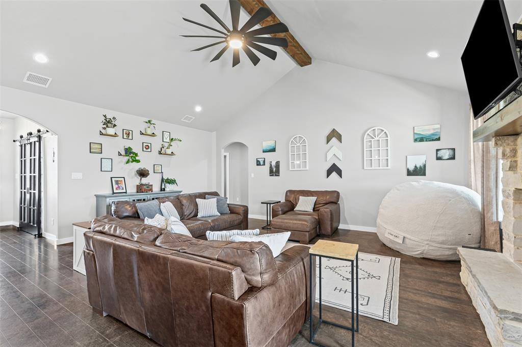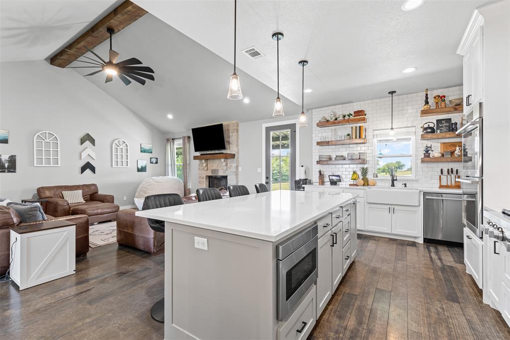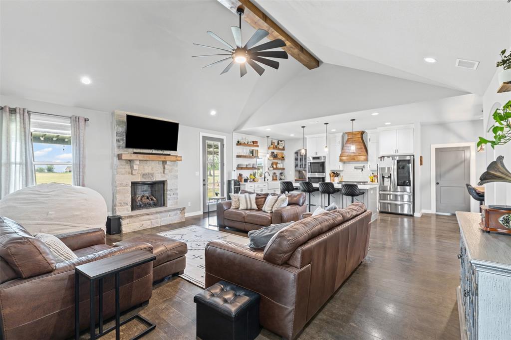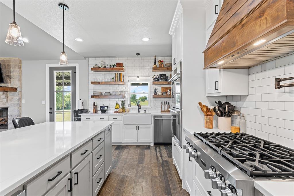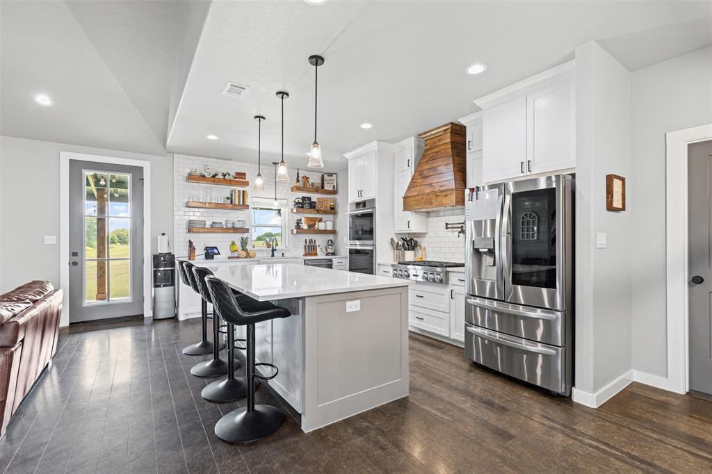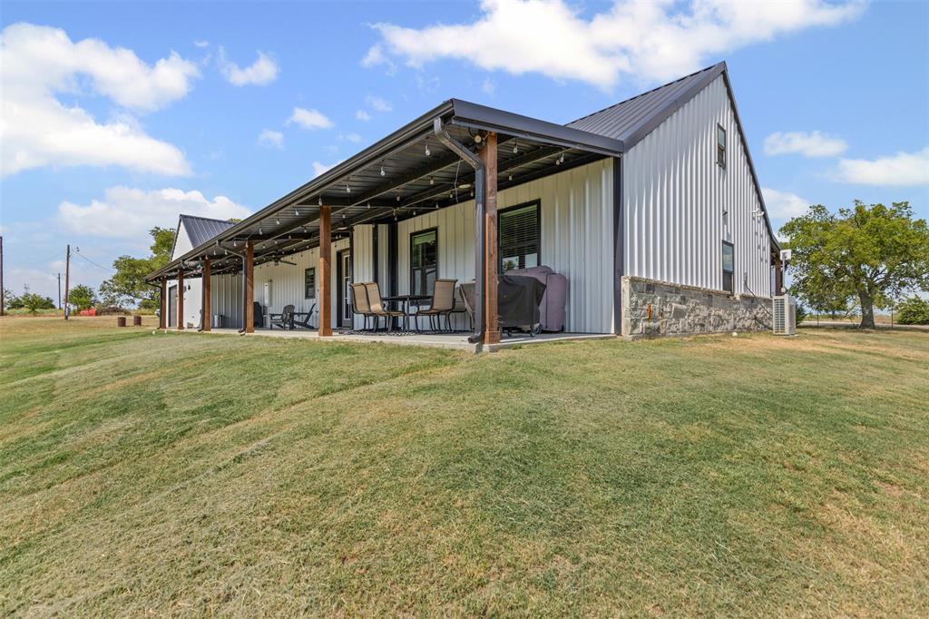 Hard to find small acreage property with a gorgeous modern farmhouse style home! This 8.62 acre property is outside the city limits, has no restrictions and adjoins the LBJ Grasslands! The home, built in 2023, boasts 3 bedrooms - one with a private loft - 2 full and 1 half baths, a study or office, open concept floorplan with stained, scored concrete floors designed to look like wood, a delightful banquet table off the kitchen, double ovens, pot filler, a killer laundry-mud room-pantry with separate access to the covered side porch. The detached 4-5 car garage-shop is amazing! A darling vintage barn with shed to house miscellaneous equipment and a large firepit nicely complement the home. Did I mention that the Bad Boy Zero turn mower comes with? Come out to the country and be wowed!!