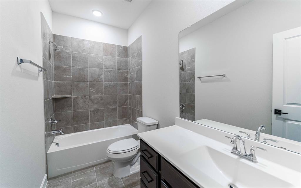 CastleRock Frisco Plan home with 6 bedrooms, 5 full baths, 3 car garage with circular driveway, study, guest bedroom, game room, media, on 80 X 150'ft (12,000 SF) lot. Large open floor plan concept kitchen, formal dining and 2 story family room combination, sweeping staircase. Kitchen has grey wolf cabinets with quartz c-tops, white subway tile backsplash, huge island, walk in pantry, Free standing SS venthood, potfiller over 36in gas cook top, SS appliances, jetted tub in master, hw flooring in foyer, family room, dining, study and kitchen, linear FP, super shower in bath 3 and 5, cat 6, security camera prewires, whole house vacuum system, under cab lights, pendant pre-wires over island, exterior flood lights, 8ft doors on first level & blinds