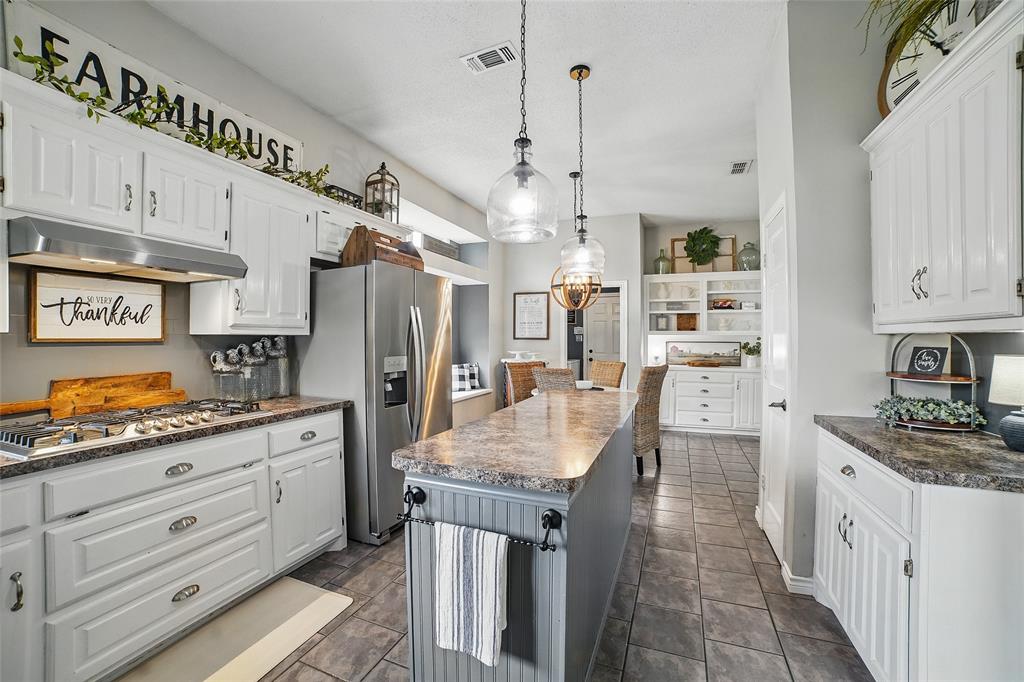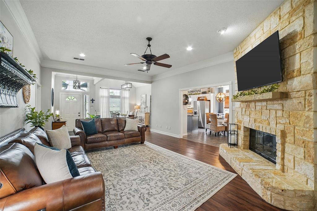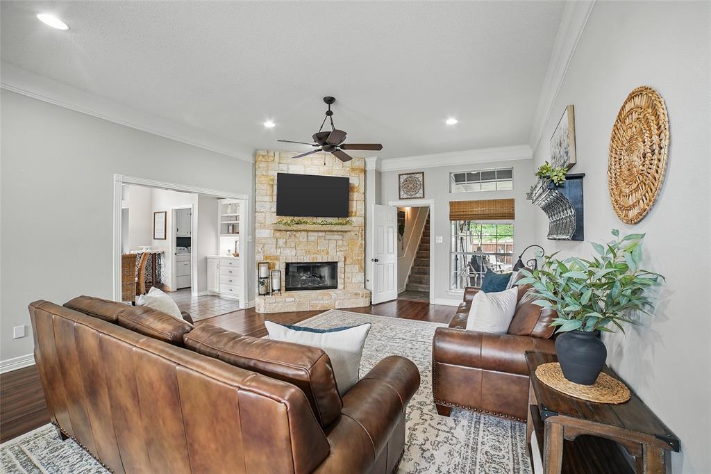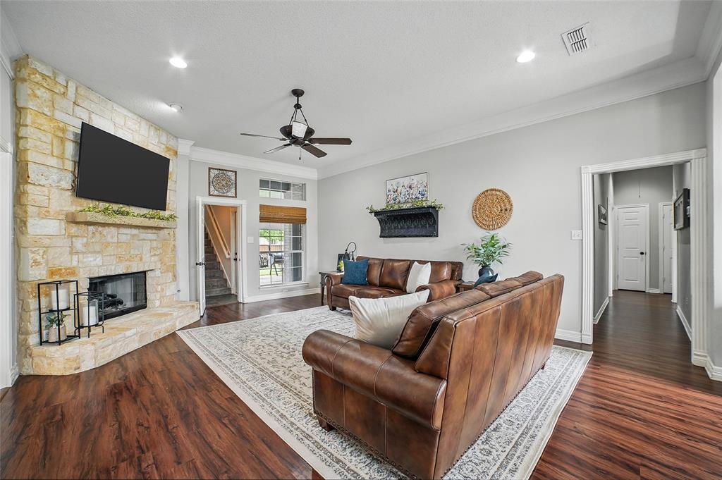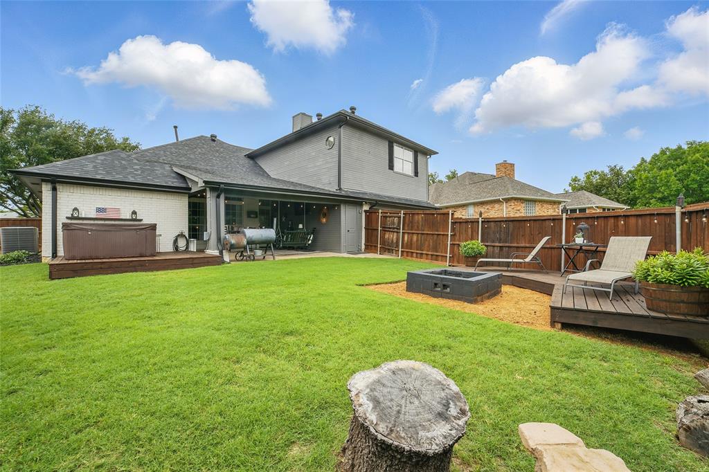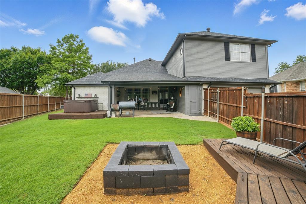Experience the perfect blend of space, style, and serenity in this beautifully designed 5-bedroom, 3-bath home located in highly sought-after Rockwall ISD. Step inside to a spacious living area anchored by a stunning floor-to-ceiling stone fireplace, ideal for cozy nights and entertaining alike. The open-concept kitchen is a chef’s dream, featuring sleek stainless steel appliances, a 5-burner gas cooktop, ample cabinetry, and generous counter space. A separate formal dining room just off the kitchen adds elegance to every meal. The private primary suite offers a peaceful retreat with an ensuite bath that includes a soaking tub, separate shower, dual vanities, and a walk-in closet. Three additional bedrooms share a full bath on the main floor, providing plenty of space for family or guests. Upstairs, a private apartment-style suite awaits—complete with a living area, bedroom, full bath, and kitchenette—perfect for multigenerational living, guests, or a private office. Step outside to your backyard oasis backing to a greenbelt, where a covered patio, custom deck with hot tub, and fire pit area create the ultimate space for relaxation and outdoor fun. Just minutes from Rockwall’s premier shopping, dining, and entertainment, this exceptional home offers the lifestyle you’ve been looking for!