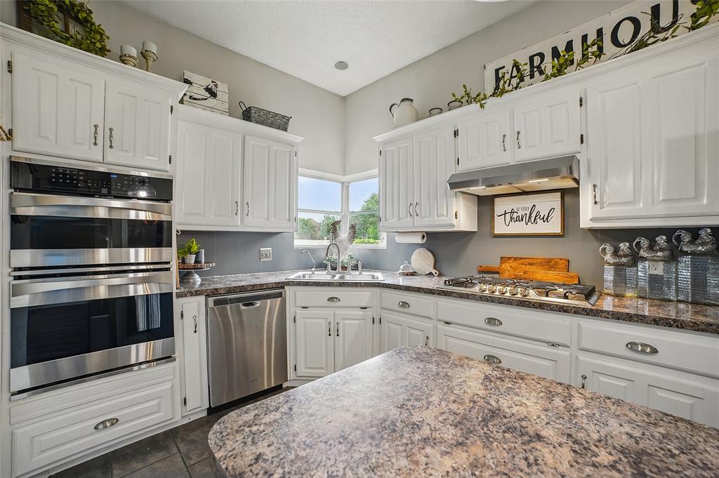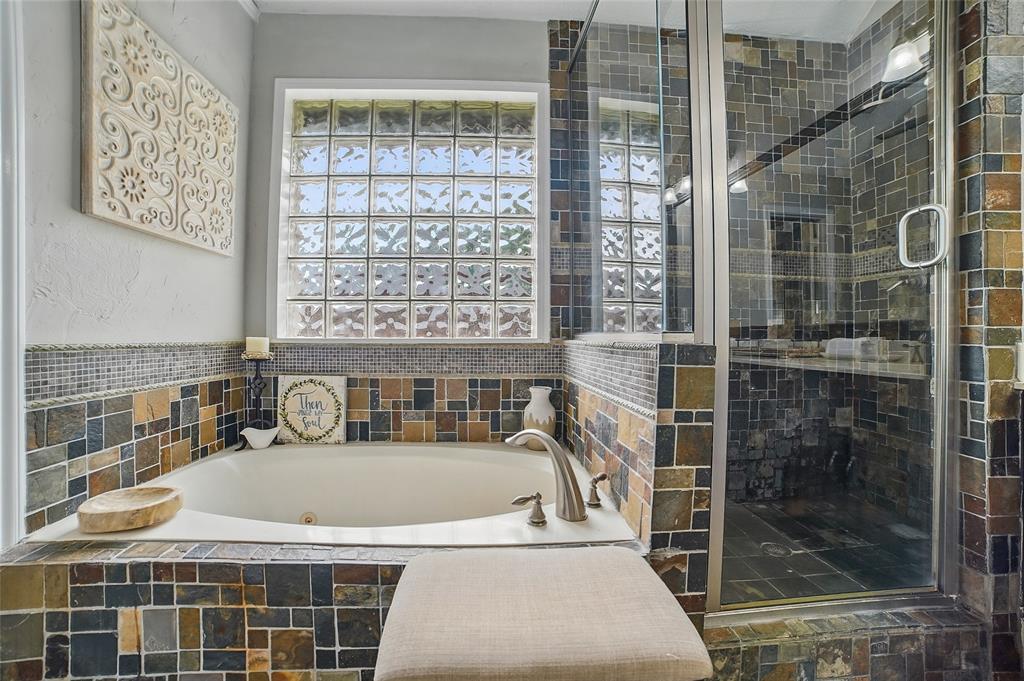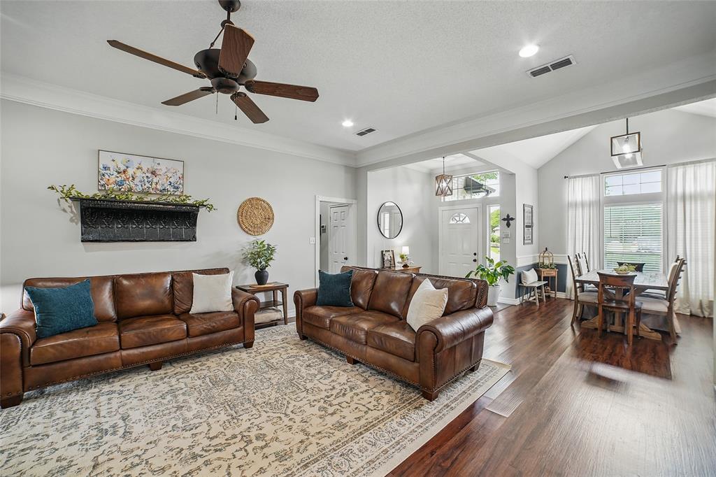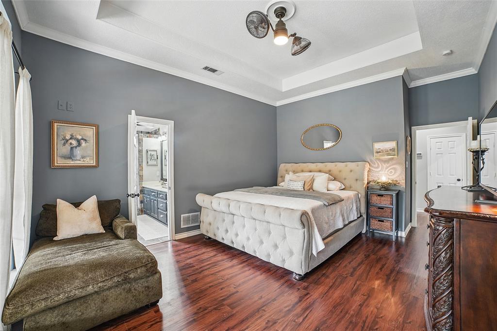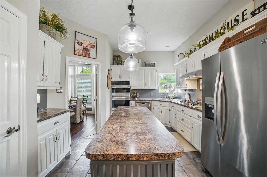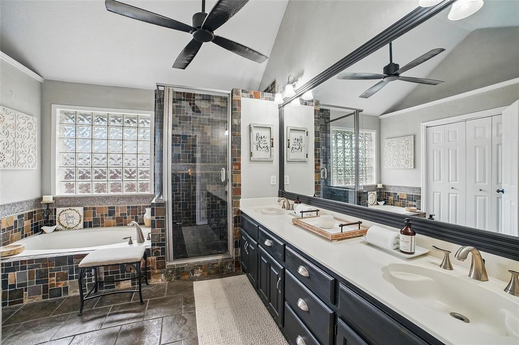Experience the perfect blend of space, style, and serenity in this beautifully designed 5-bedroom, 3-bath home located in highly sought-after Rockwall ISD. Step inside to a spacious living area anchored by a stunning floor-to-ceiling stone fireplace, ideal for cozy nights and entertaining alike. The open-concept kitchen is a chef’s dream, featuring sleek stainless steel appliances, a 5-burner gas cooktop, ample cabinetry, and generous counter space. A separate formal dining room just off the kitchen adds elegance to every meal. The private primary suite offers a peaceful retreat with an ensuite bath that includes a soaking tub, separate shower, dual vanities, and a walk-in closet. Three additional bedrooms share a full bath on the main floor, providing plenty of space for family or guests. Upstairs, a private apartment-style suite awaits—complete with a living area, bedroom, full bath, and kitchenette—perfect for multigenerational living, guests, or a private office. Step outside to your backyard oasis backing to a greenbelt, where a covered patio, custom deck with hot tub, and fire pit area create the ultimate space for relaxation and outdoor fun. Just minutes from Rockwall’s premier shopping, dining, and entertainment, this exceptional home offers the lifestyle you’ve been looking for!
