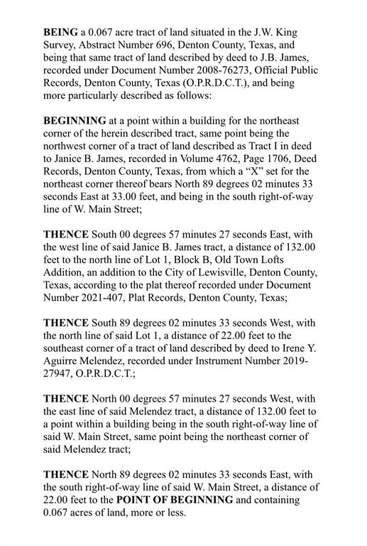 BEST LOCATION in OLD TOWN LEWISVILLE! OLD WORLD CHARM Merges with MODERN MILLENNIAL MAGIC to create Limitless Opportunities to Build Your Dream Business right in the HEART of LEWISVILLE, TEXAS! Perfect for any Retail Business, Grandfathered for Office, Great Location for Restaurant, Convenience Store, Gaming Center, Antique Shop, Comedy Club, Event Center, Winery, Meat Market, Real Estate Office (Owner-Agent currently occupies the whole building, variance has been granted for a Hotel Boutique and so many other possibilities! Upstairs could be turned into living quarters. Building is divided in to 3 Units (2 downstairs and one huge space upstairs with small stage, so easy to rent out part or all. This building has 8 Private Parking Spaces (A Huge Advantage).Grant Money available through the City of Lewisville for exterior facade improvements. With over 1,000 New Apartments (80% leased) within walking distance, this is a Gold Mine for the right investor or owner-operator to grow & flourish right along with the Incredible Economic Development currently in motion! If you are needing additional space, the building adjacent could also be purchased with a package deal! Make Me An Offer!