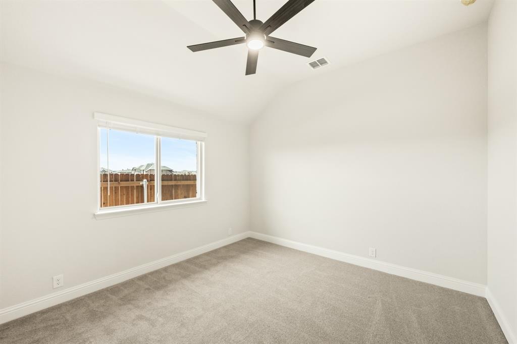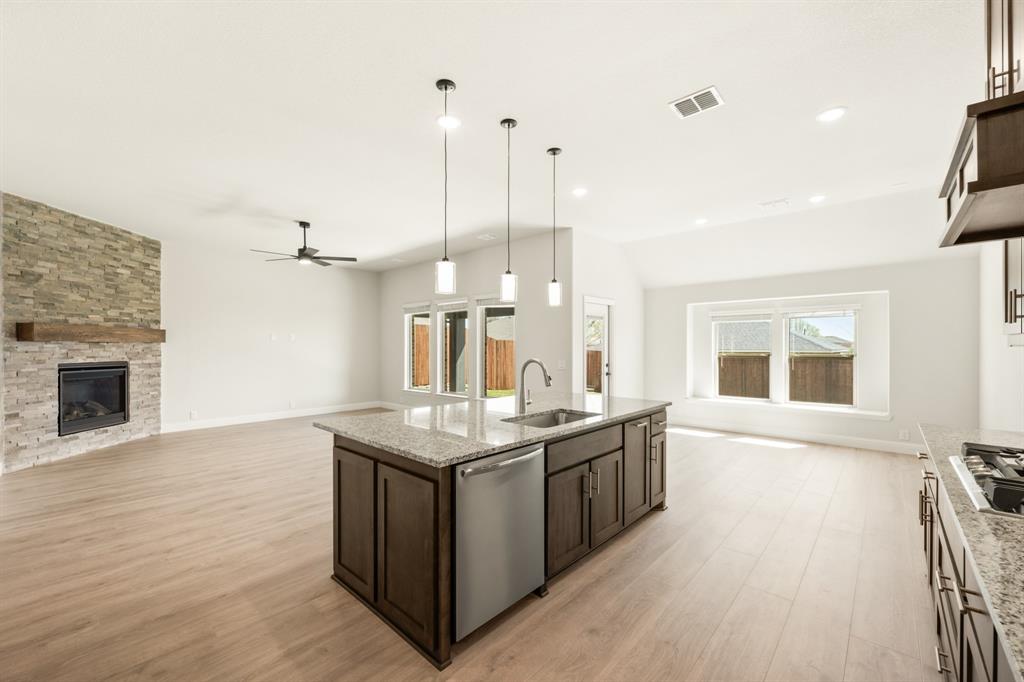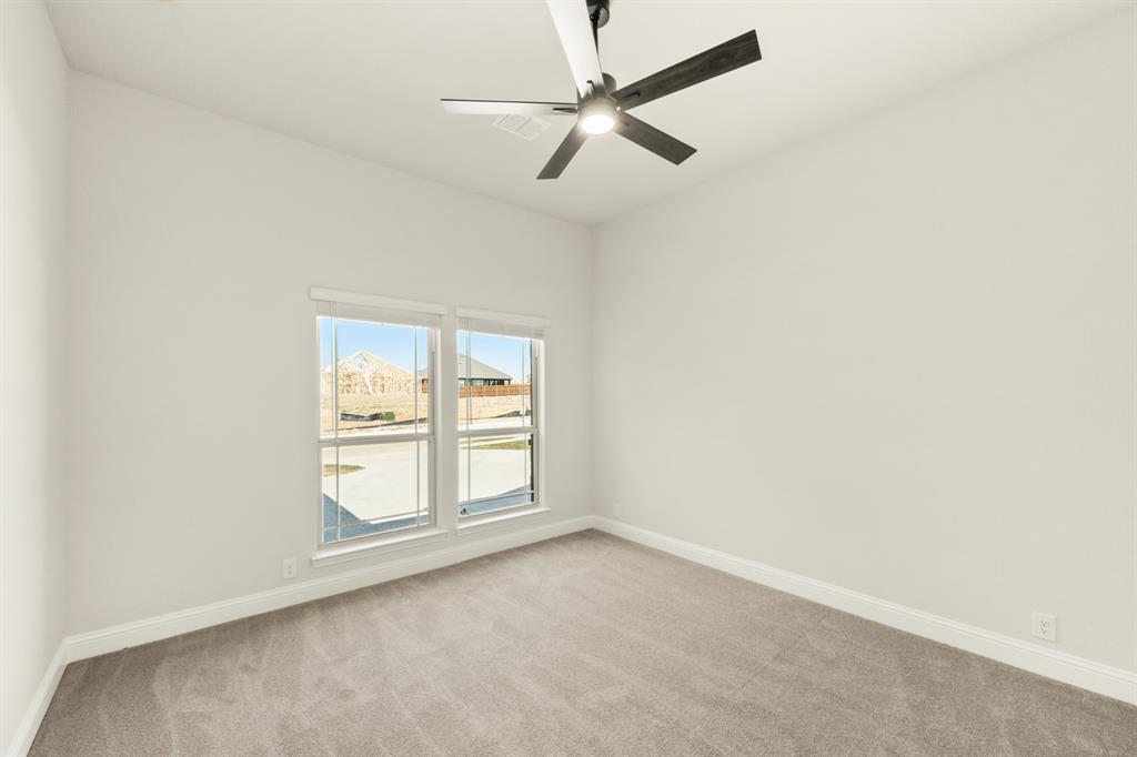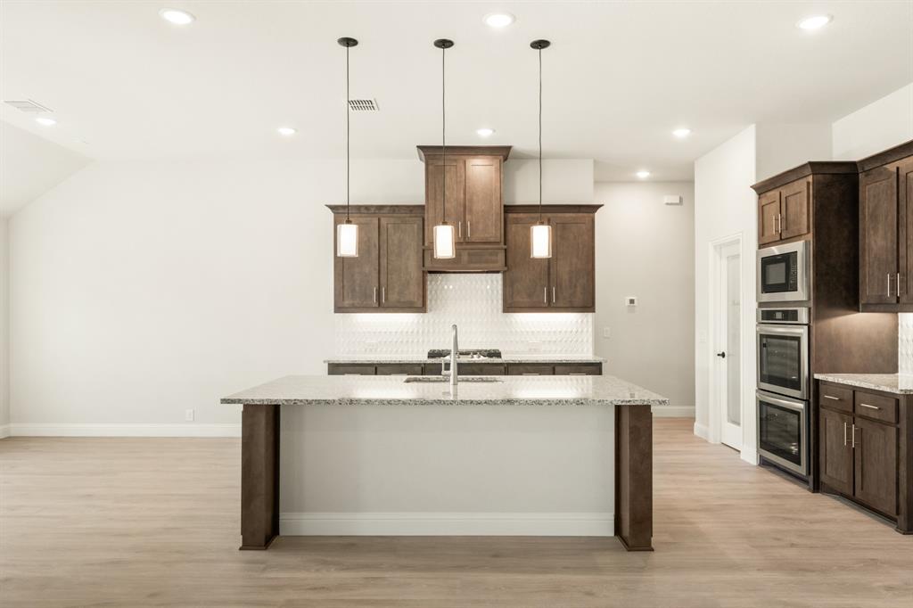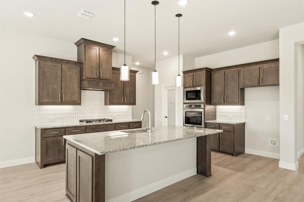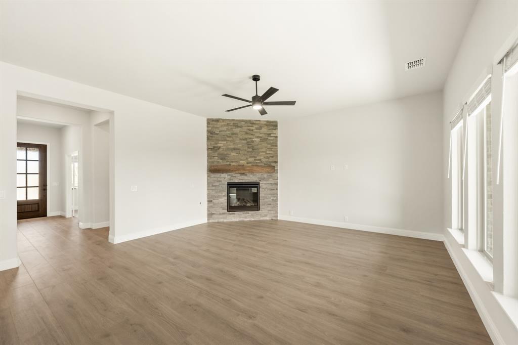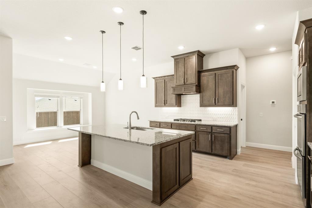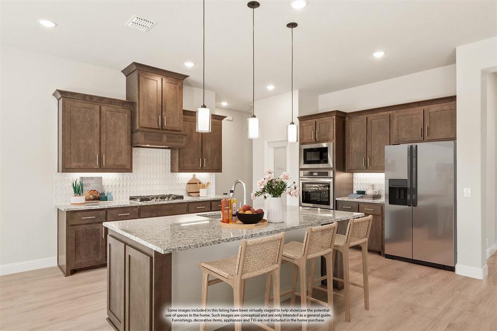 Ready NOW, Bloomfield’s single-story Rockcress is nestled in a master-planned community with amenities galore. This elegant home boasts a brick and stone exterior, a cedar garage door, and an 8' Mahogany front door with glass and iron. Inside, discover 3 spacious bedrooms, a study, 2 full baths, and a guest powder bath all in a soft-contemporary color palette. The Deluxe Kitchen is a culinary dream with shaker cabinets, a double oven, a gas cooktop, and Granite countertops. Gather around the Stone-to-Ceiling Fireplace in the living area with laminate floors flowing through main areas, tiled bath and utility rooms, and plush carpet in bedrooms. The covered back patio is perfect for entertaining, complete with a gas hookup for the grill. Practical touches include a gas tankless water heater, 2in Faux wood blinds, full rain gutters, and a 6’ stained wood fence with metal posts and two gates. Extensive energy features ensure year-round comfort. Plus, enjoy top-rated Joshua schools, a community pool, a playground, trails, and neighborhood activities.