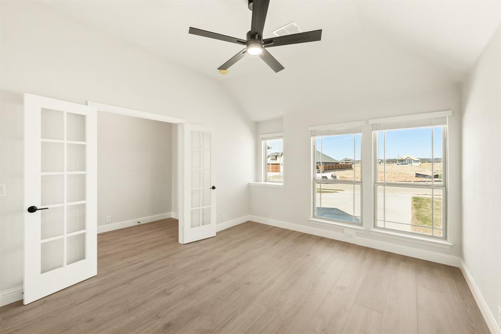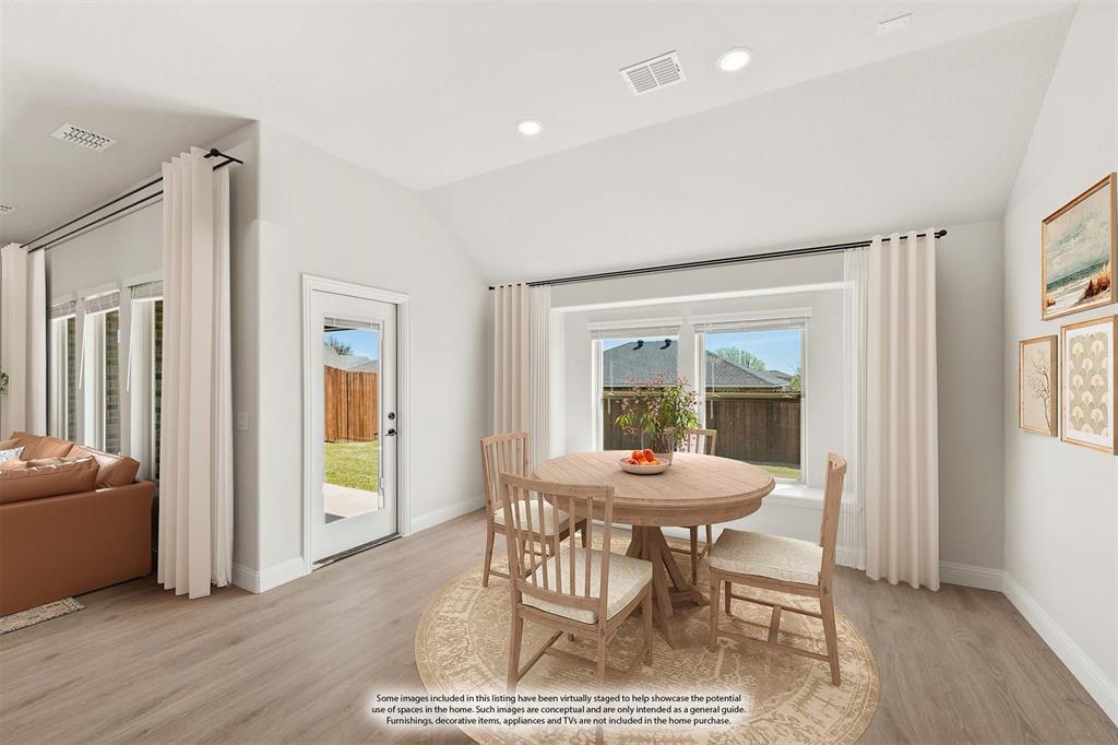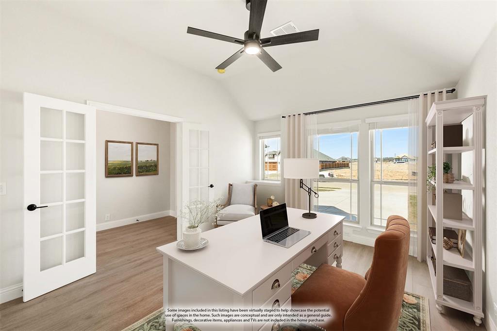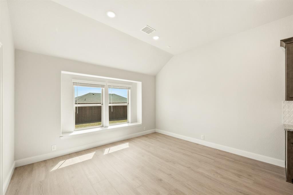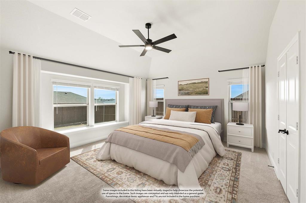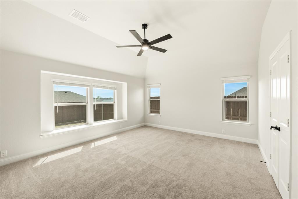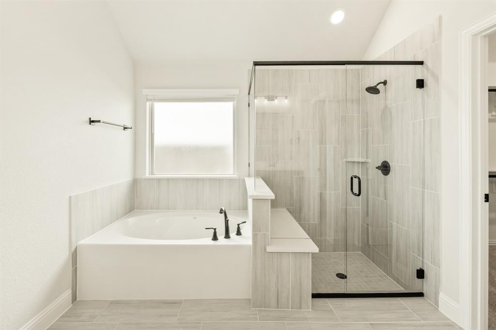 Ready NOW, Bloomfield’s single-story Rockcress is nestled in a master-planned community with amenities galore. This elegant home boasts a brick and stone exterior, a cedar garage door, and an 8' Mahogany front door with glass and iron. Inside, discover 3 spacious bedrooms, a study, 2 full baths, and a guest powder bath all in a soft-contemporary color palette. The Deluxe Kitchen is a culinary dream with shaker cabinets, a double oven, a gas cooktop, and Granite countertops. Gather around the Stone-to-Ceiling Fireplace in the living area with laminate floors flowing through main areas, tiled bath and utility rooms, and plush carpet in bedrooms. The covered back patio is perfect for entertaining, complete with a gas hookup for the grill. Practical touches include a gas tankless water heater, 2in Faux wood blinds, full rain gutters, and a 6’ stained wood fence with metal posts and two gates. Extensive energy features ensure year-round comfort. Plus, enjoy top-rated Joshua schools, a community pool, a playground, trails, and neighborhood activities.