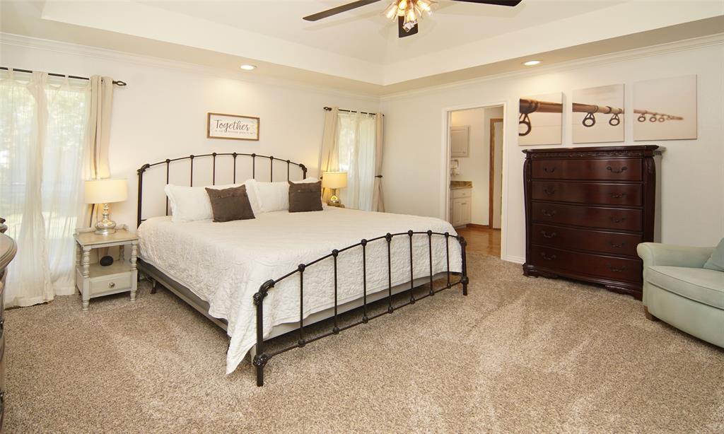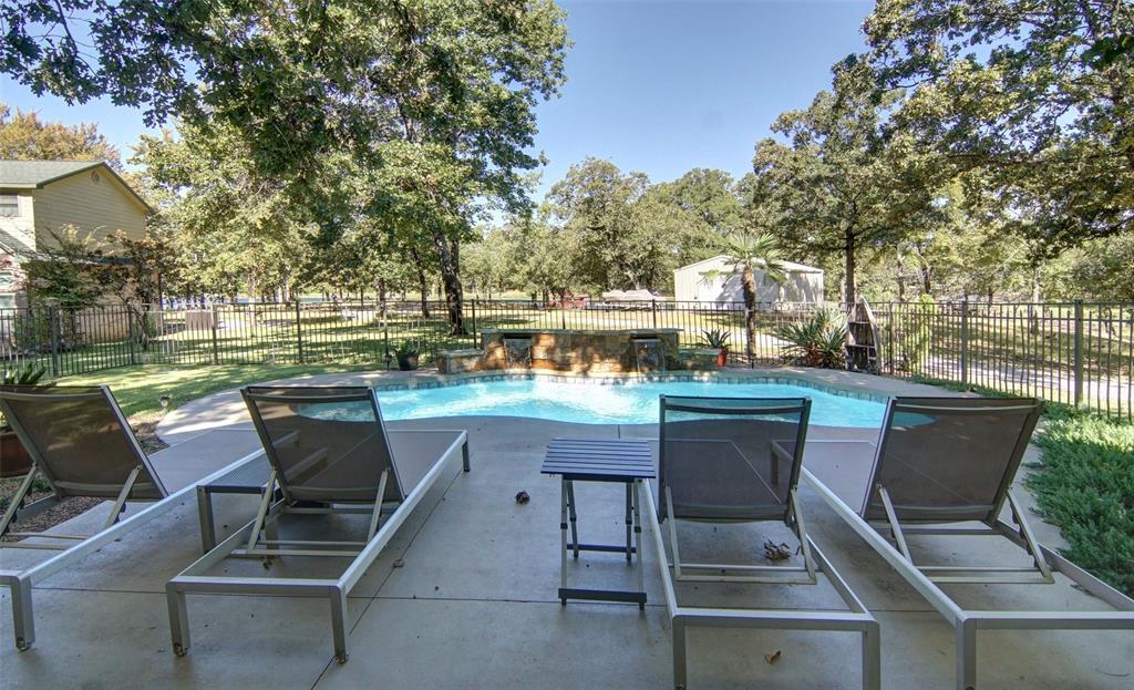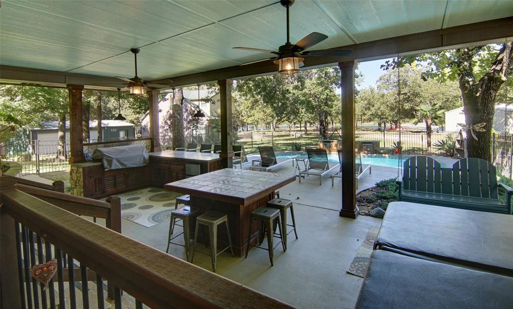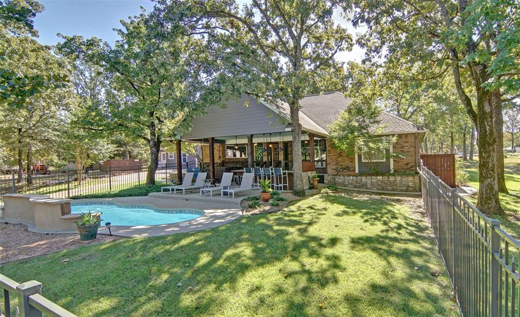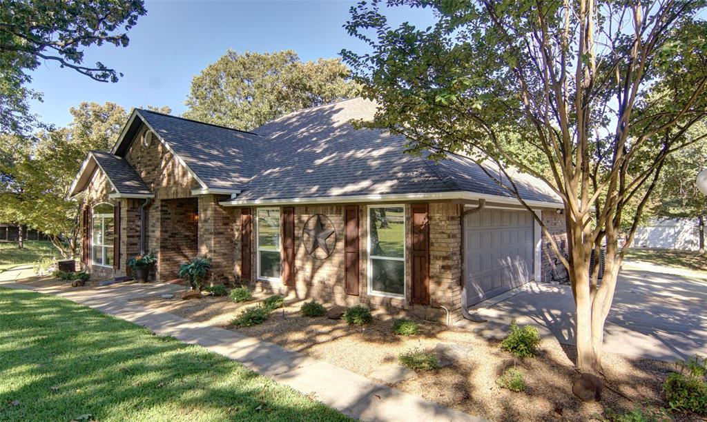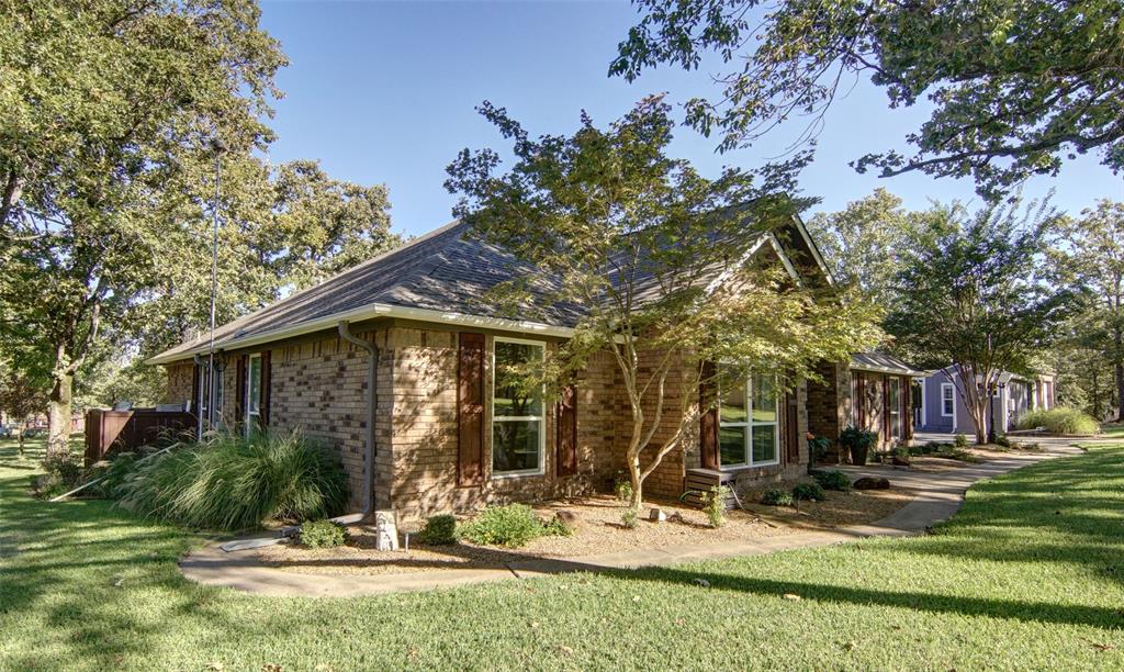 Finding a home like this on Lake Fork is a rare opportunity, and it won’t last long! This beautifully maintained waterfront brick home offers stunning views, good water access, and is move-in ready! The open floor plan features an updated kitchen with granite countertops, a large walk-in pantry, and multimedia connections throughout the house. The living room is a cozy retreat with a ventless gas fireplace and large Pella windows. Engineered birch wood flooring graces the living areas, while the bedrooms offer plush carpeting. The master suite is a luxurious escape, with a step-up ceiling, remodeled bathroom featuring River Forest granite, a large glass shower, a soaking tub, and two spacious walk-in closets. The outdoor amenities make this property truly special! The She-Shed, a 180 SF space with a ¾ bathroom, has been converted into a guest bedroom with its own AC system and tankless hot water heater. Just steps away, the backyard is an outdoor oasis. The enormous covered deck houses a 350-gallon Twilight Master therapeutic spa, an outdoor kitchen with concrete counters, a Bull 48” 6-burner professional-grade LP grill, and an under-counter refrigerator. The deck also includes a large rolling island for all your entertainment needs plus a 7,500-gallon fiberglass pool with a waterfall feature. The 24’ x 28’ drive-thru metal building with two 9’ x 12’ doors is ideal for boat or RV storage. For added fun, there’s a fenced-in playground with treehouse. The 2 (approx.) acres of leaseback from the SRA has 340’ of shoreline including a concrete boat launch, a single slipcovered dock with aluminum cradle, a metal roof, fish cleaning station, storage area, and an open lounging space…water depth at the back of the slip is 9 ½ feet! Located in the highly popular Wolf Creek Bay subdivision just across the road from The Links at Land’s End golf course.