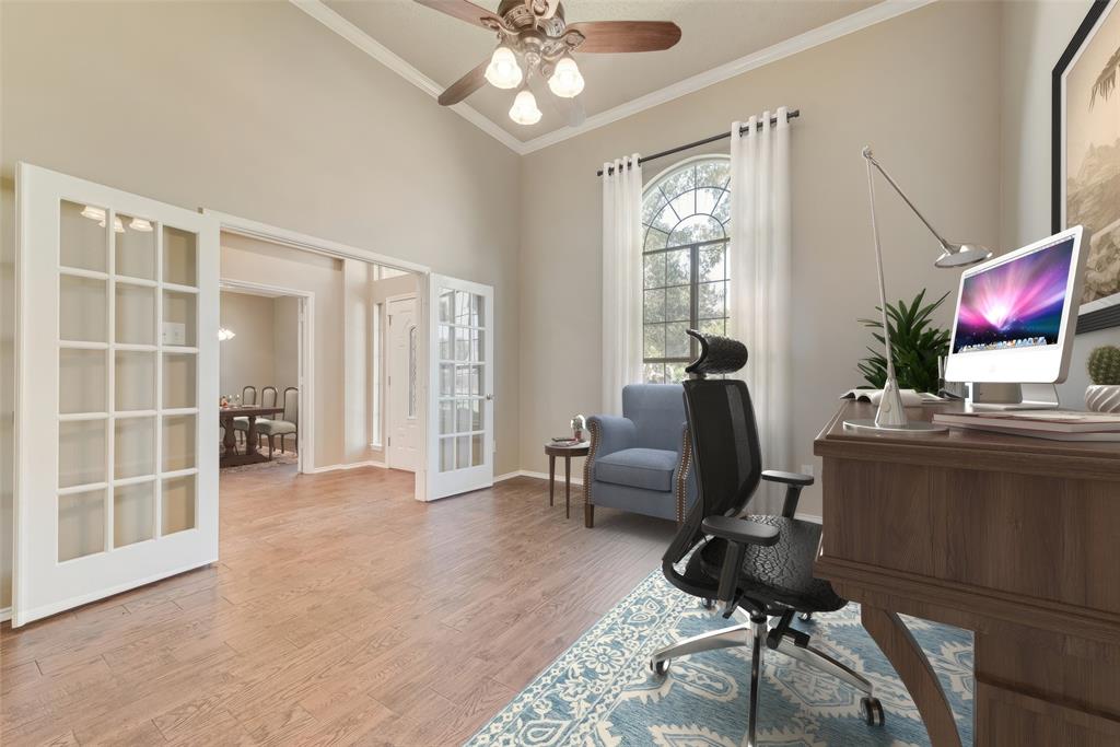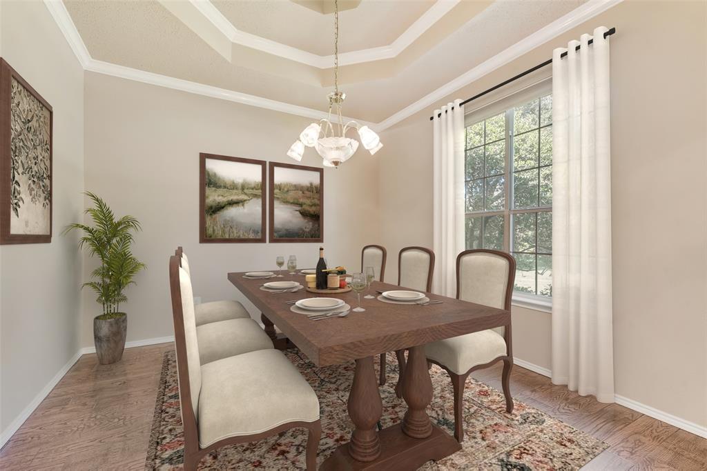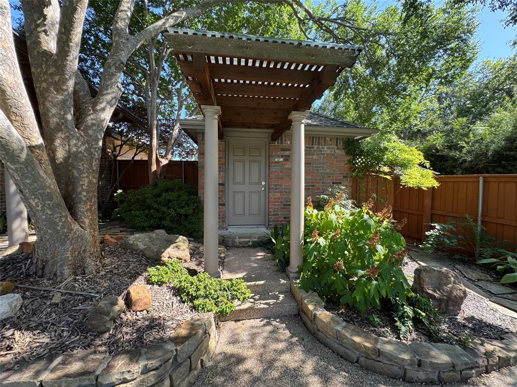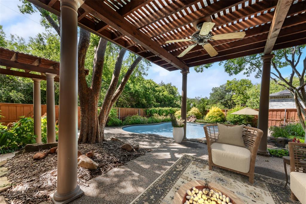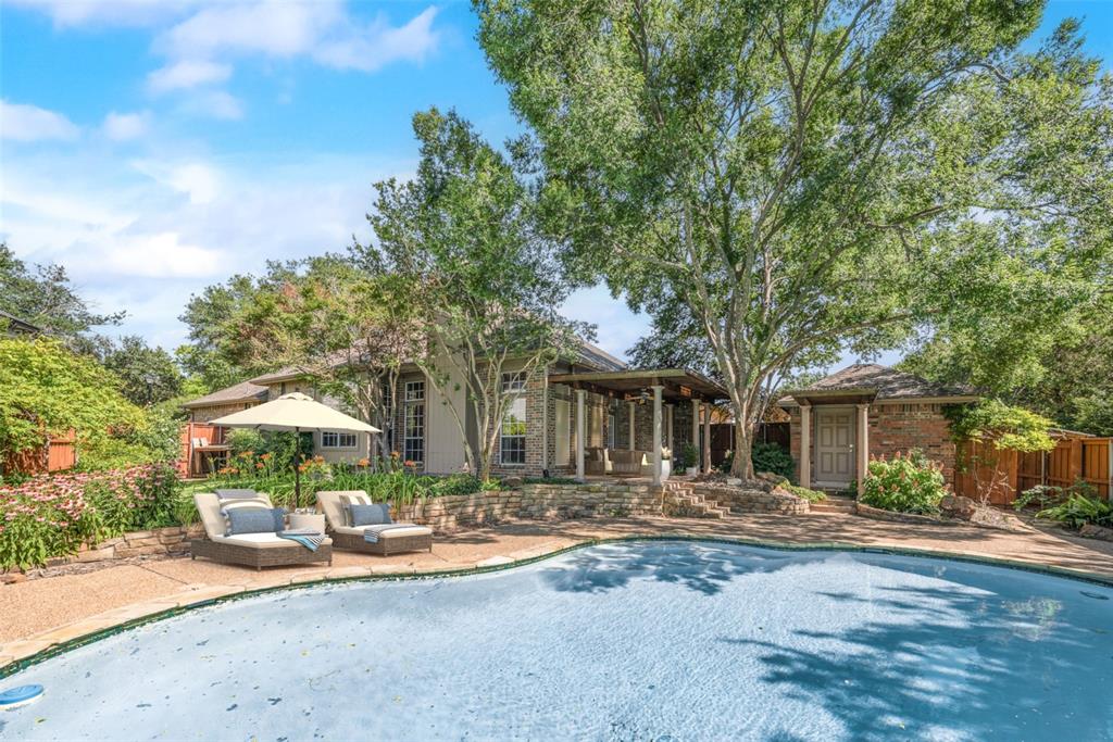 BUILT FOR ENTERTAINING! Wonderfully maintained home nestled among mature trees on a rare lot that backs up to Samuel Farms! The lush landscaping and pristine grounds offer a beautiful setting to host and entertain while enjoying the sparkling pool! The wooded area behind this lot provides a great sense of privacy! The spacious floor plan offers a nice formal dining room and private study! The kitchen is the heart of the home and has granite countertops, abundant cabinetry, casual dining space, and large windows! Inviting family room has wonderful views of the rear yard, a fireplace, and a raised hearth. The expansive primary retreat has a trayed ceiling, dual closets, room for a sitting area, and the bath features a jetted tub, a separate shower, and dual sinks! There are three additional bedrooms and two full baths! Nice utility room with additional storage, washer and dryer can be configured either side by side or stacked. Updated carpets, wood-look tile! Board-on-board fencing, sprinkler system, rear entry garage! Brick and shingled shed with electricity! Walkable to neighborhood lake with fountain! Washer, Dryer, and Refrigerator are included! Convenient to Highway 80!