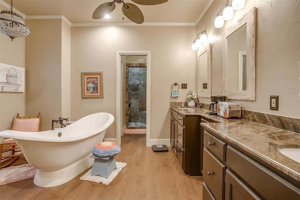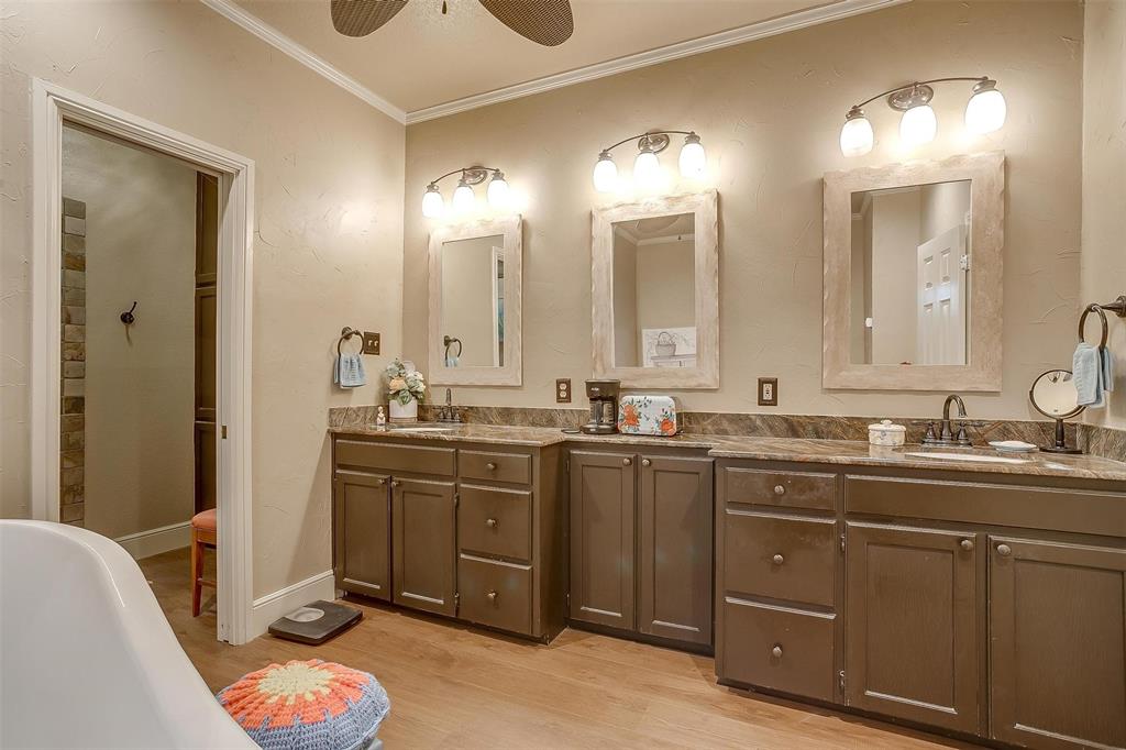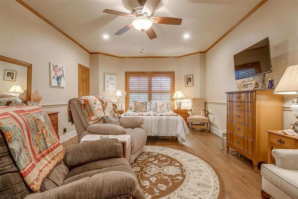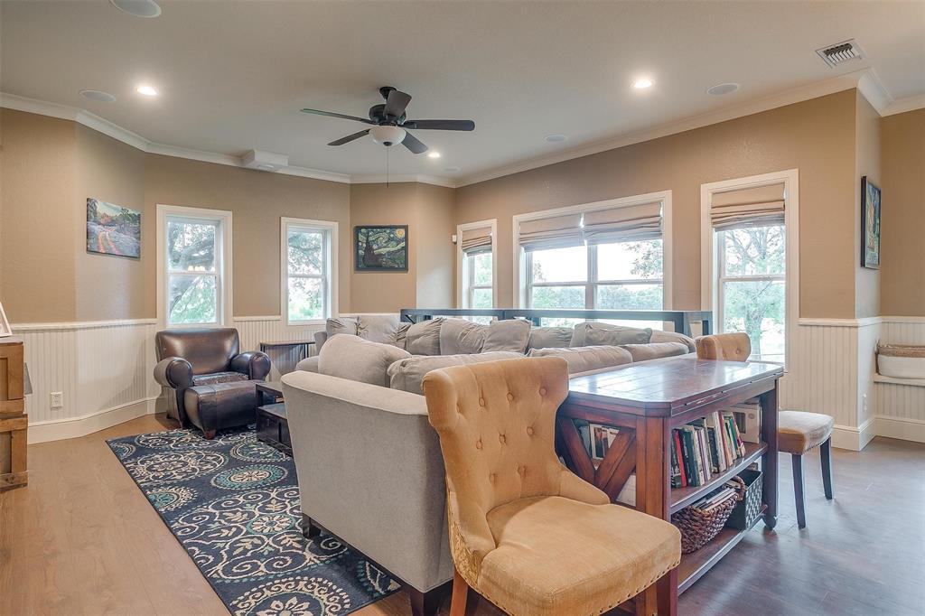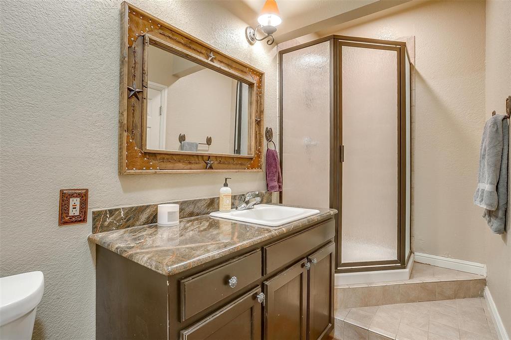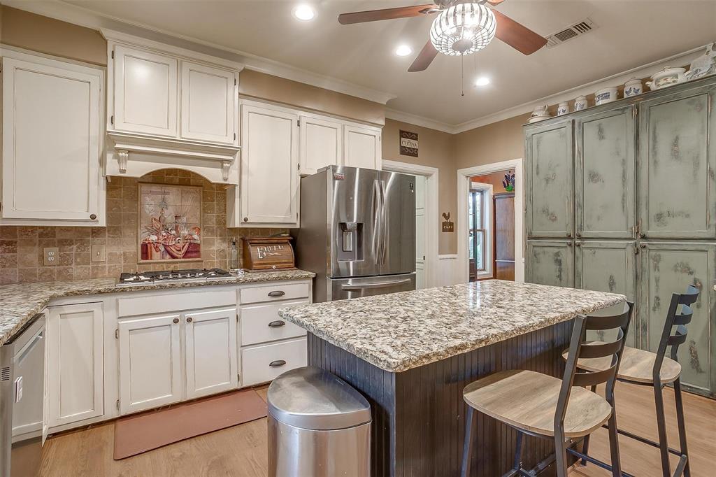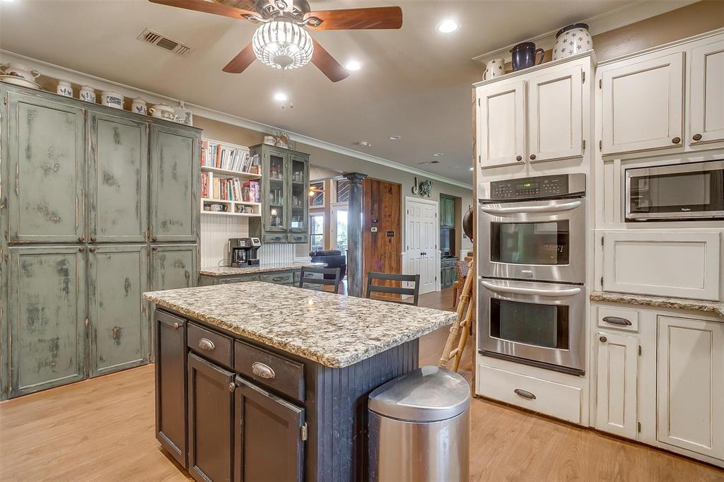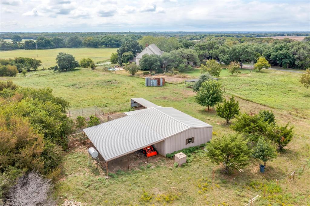 Seller is offering buyer concessions to buy rate down on an offer accepted by August 31! VA assumable loan with interest rate of 2.75%! AG EXEMPTION included! Picturesque views of the Texas sky await you! Looking for that rare property offering a Homestead feel? Look no further! Gorgeous acres with horse barn, corral, tack room and chicken coop. The modernized farmhouse offers spacious rooms throughout with walk in closets, cedar closet for protecting your heirlooms, 2 master suites, 2 storm shelters with 1 doubling as a gun safe, tons of built-in custom cabinetry for ample storage. The family room features vaulted and beamed ceiling with a towering stone fireplace alludes a lodge-like experience. Looking out massive, picturesque windows to the tantalizing back oasis, you know you are home. A gunite, salt-water play pool, outdoor shower, firepit, fountain, vegetable gardens, blackberry bushes, orchard with plumb, peach, apple and pecan trees, fully stocked pond with Sm Mouth Bass, Catfish, Blue Gill, Sunfish and this is just the beginning! 2 bonus rooms with access from separate staircases, surround sound, updated flooring, separate workshop, full 50 AMP RV hook ups, 22 KW propane generator, 3 500-gal propane tanks, 200 ft deep well to water livestock and gardens, internal vac system, paid for and producing solar panels; the list goes on. What more could you want nestled away in your own piece of the world..This place has it ALL and now at the perfect price!