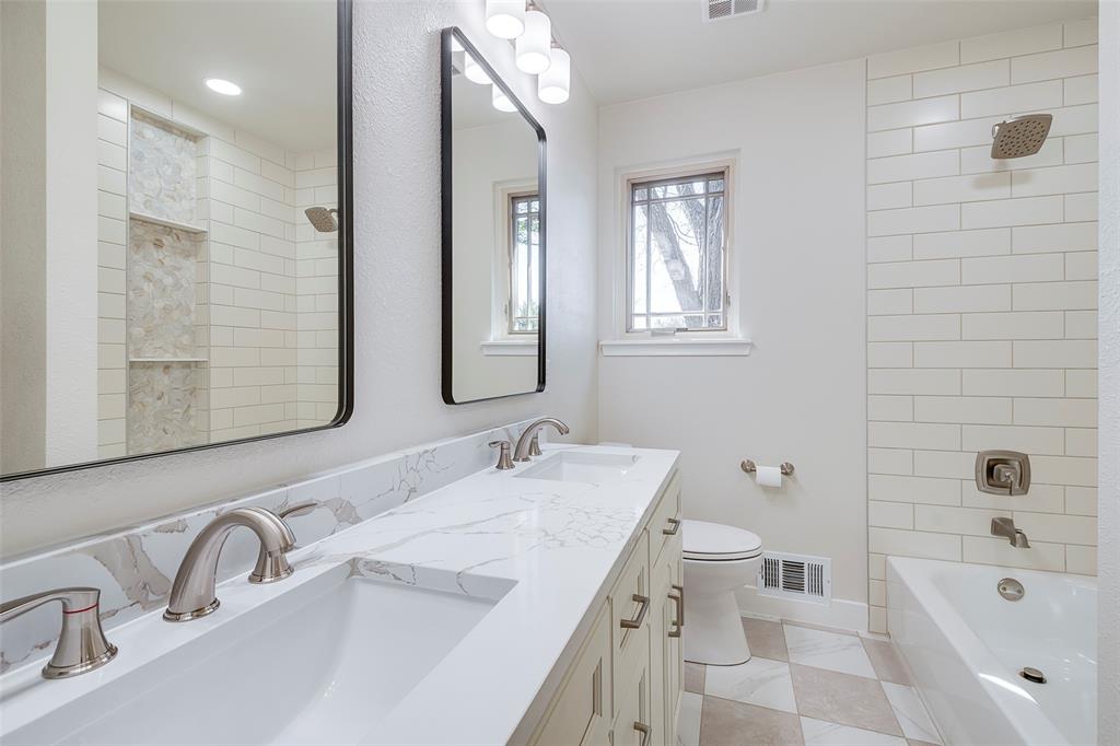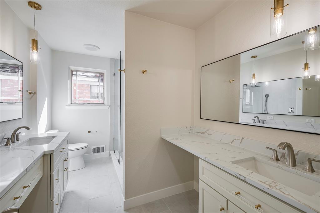 This elegant, East Dallas gem has been meticulously remodeled for any discerning buyer! This home has been reimagined from top to bottom! No expense was spared on the transformation of this 3 bedroom, 2.5 bath sophisticated beauty! This home is pristine and the many designer touches are highlighted by all the natural light. Whether you have a growing family or love to entertain, this home is perfect for you! As you enter the home you are greeted with beautiful arches, custom features and hand selected designer lighting and fixtures. A custom designed kitchen and a light and airy office-sunroom are just some of the additional touches that make this home unlike any other. The wide plank white oak flooring throughout the home is not only beautiful but easily maintained. The chef's kitchen has been completely remodeled with all new custom cabinets, beautiful quartz counter tops, a hand-picked quartz backsplash, an island with seating, and stainless-steel appliances including a convection oven microwave combination. The primary bathroom is a spa like Zen retreat with new double vanities, beautiful fixtures, quartz counter tops and a custom tiled shower. The Jack & Jill bathroom follows suit with a new vanity, double sinks, and beautiful fixtures, and a custom tiled shower bath combo with a large shampoo niche. The half bath is a new addition and a must see with custom paint and beautiful fixtures. The primary bedroom has a large walk-in closet. All bedrooms are good sized with ample closet space and boast the same wide plank flooring as the rest of the home. The backyard features new and mature landscaping, and a large grass area! All of this as well as energy efficient Pella windows, all new plumbing, electrical, HVAC, hot water heater and roof. Great location near the Dallas Arboretum, major highways, and the neighborhood elementary school. Don’t miss this beautiful home!