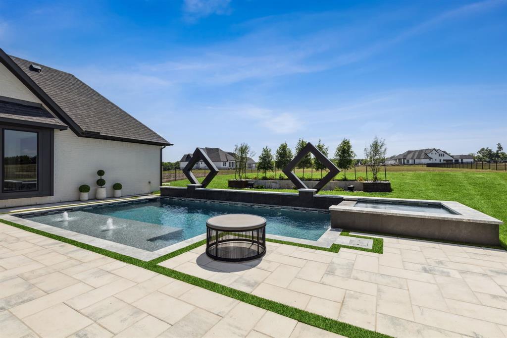 This stunning completed home in Redbud Gardens is the perfect blend of luxury, customization, and craftsmanship—another exceptional creation by Homes by J. Anthony. Set on a spacious lot, this home offers privacy and tranquility within a beautifully designed, upscale community. The unique custom pool creates a showstopping centerpiece, ideal for entertaining and unwinding in style. Inside, the home impresses with thoughtful design and elegant details. A chef’s dream kitchen is paired with a dedicated prep kitchen, perfect for entertaining or everyday functionality. The open layout features expansive slider doors from the family room to the backyard, seamlessly connecting indoor and outdoor living. The primary suite is a true retreat, featuring spa-inspired finishes in the bathroom and a thoughtfully designed closet with direct access to the laundry room. Enjoy year-round outdoor living on the covered patio with a cozy fireplace, overlooking the sparkling pool and fenced backyard. This home embodies comfort, luxury, and elevated living — all within one of Celina’s most desirable new neighborhoods. One of the fastest growing cities, Celina offers a promising investment opportunity by becoming part of a dynamic and expanding community that provides a rural feel with nearby conveniences, top-rated schools, shopping, dining options, & entertainment venues! Accolades from the Texas Association of Builders Star Awards, Dallas Builders Association ARC Awards, and McSam Awards further underscore Homes by J Anthony’s reputation for excellence.