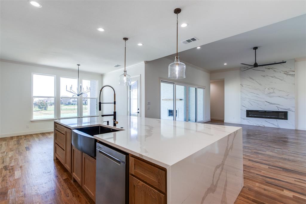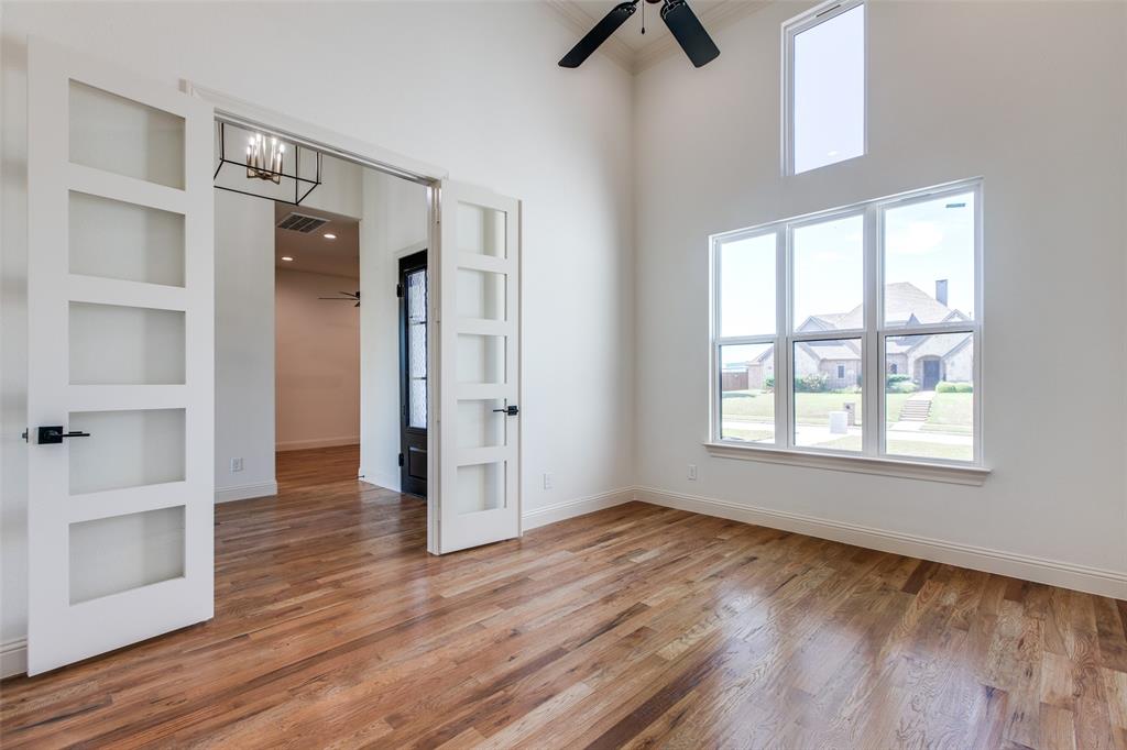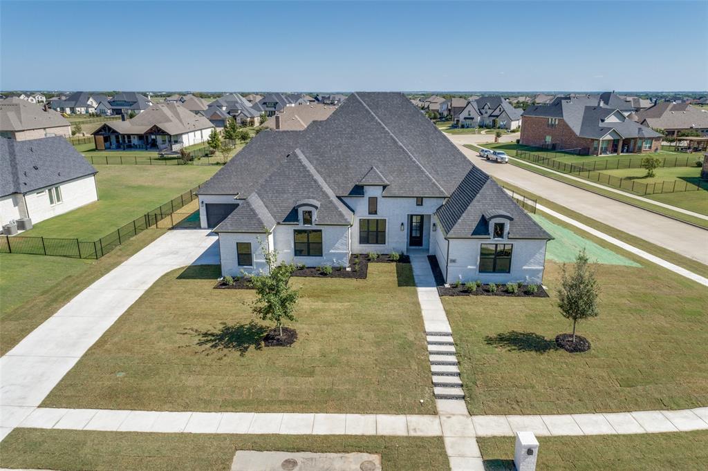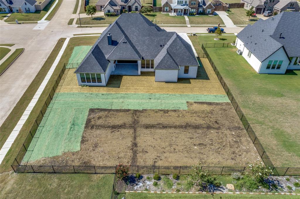 CUSTOM SINGLE STORY ON CORNER LOT in Golf Course Community with 4 bedrooms and 4 bathrooms, media room, study, exercise room, covered patio with wood burning fireplace, corner lot, hardwood flooring throughout. Spray foam insulation throughout, all LED lighting, Energy Star construction, pot filler in the kitchen over electric induction cooktop, living room fireplace is electric wall mounted with floor to ceiling decorative marble, all quartz countertops, custom cabinets, fully sprinklered landscaping. WALK TO THE NEW GUNTER ELEMENTARY SCHOOL ONE HALF BLOCK AWAY. MUST SEE SINGLE STORY IN GOLF COURSE COMMUNITY. FLOOR PLAN AND SURVEY IN DOCUMENTS
