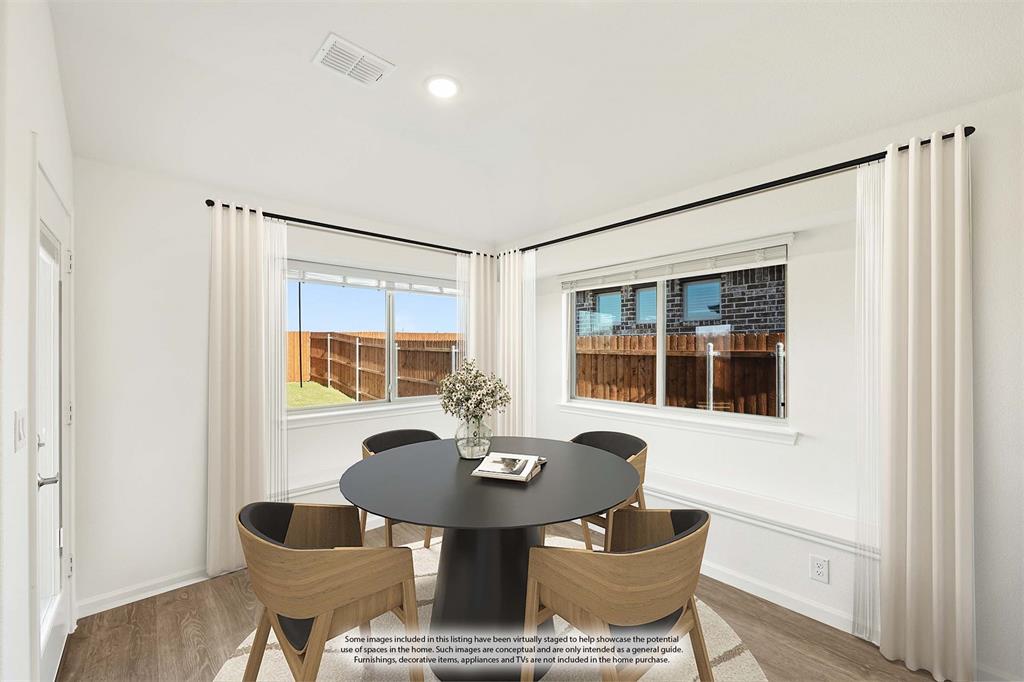NEW NEVER LIVED IN HOME! Ready NOW! Explore the sought-after Camellia floor plan by Bloomfield, a highlight of the Elements series. This welcoming residence features sleek modern finishes, wide hallways, and generous windows that flood every room with natural light. With 3 bedrooms and 2 bathrooms, the home is elegantly finished with a brick exterior and an 8' front door. Inside, you'll find gorgeous granite countertops in the kitchen and bathrooms, upgraded laminate flooring throughout common areas, and upgraded tile in baths. The contemporary kitchen showcases a wall of flat-panel cabinets, a spacious pantry, an upgraded backsplash, and an island ideal for barstools. Nearby, a charming dining nook with window seating enhances your dining experience. The Primary Suite offers a touch of luxury with a bathroom featuring a separate shower, garden tub, and walk-in closet. Additional features include blinds, gutters, and more. Visit Bloomfield at Eagle Glen today to see it for yourself!