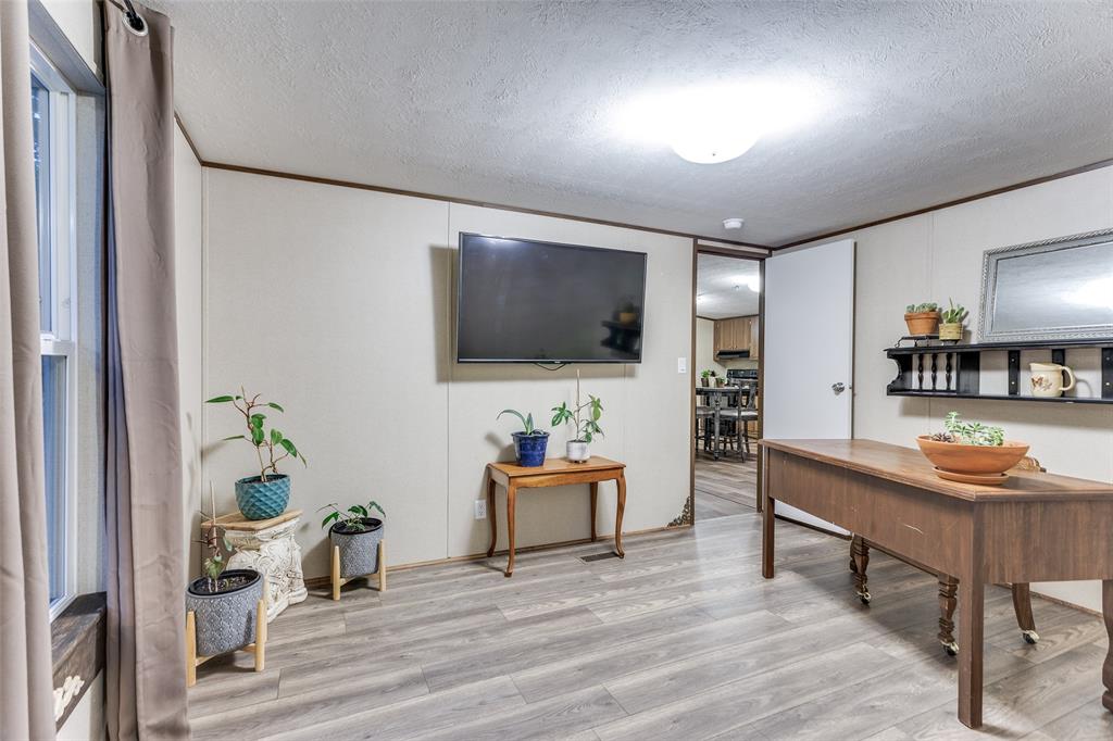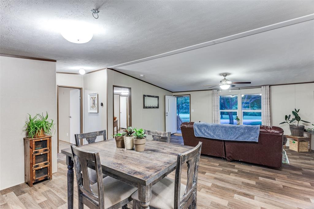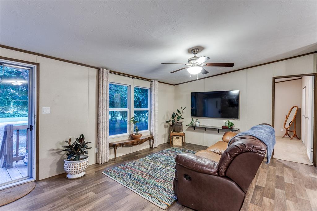 Nestled on a picturesque 5 acre lot on the north side of Cleburne, this charming 3 bedroom, 2 bath home offers a tranquil escape in a serene, park-like setting. Only 3 years old, the home features an open living and kitchen area, split bedrooms for added privacy, a designated laundry space, and room for an extra freezer. Bedrooms have been updated with new flooring, no carpet throughout the home. The property boasts mature tree groves and open spaces, providing the perfect balance of natural beauty and seclusion. Conveniently located near Keene and Cleburne, with a quick commute to Fort Worth, this peaceful retreat offers endless possibilities. An additional 800 sq. ft. structure at the front of the property, equipped with water and electricity, can be transformed into a barn, secondary residence, or workspace. Enjoy privacy, tranquility, and versatile usage options, all within reach of city conveniences.