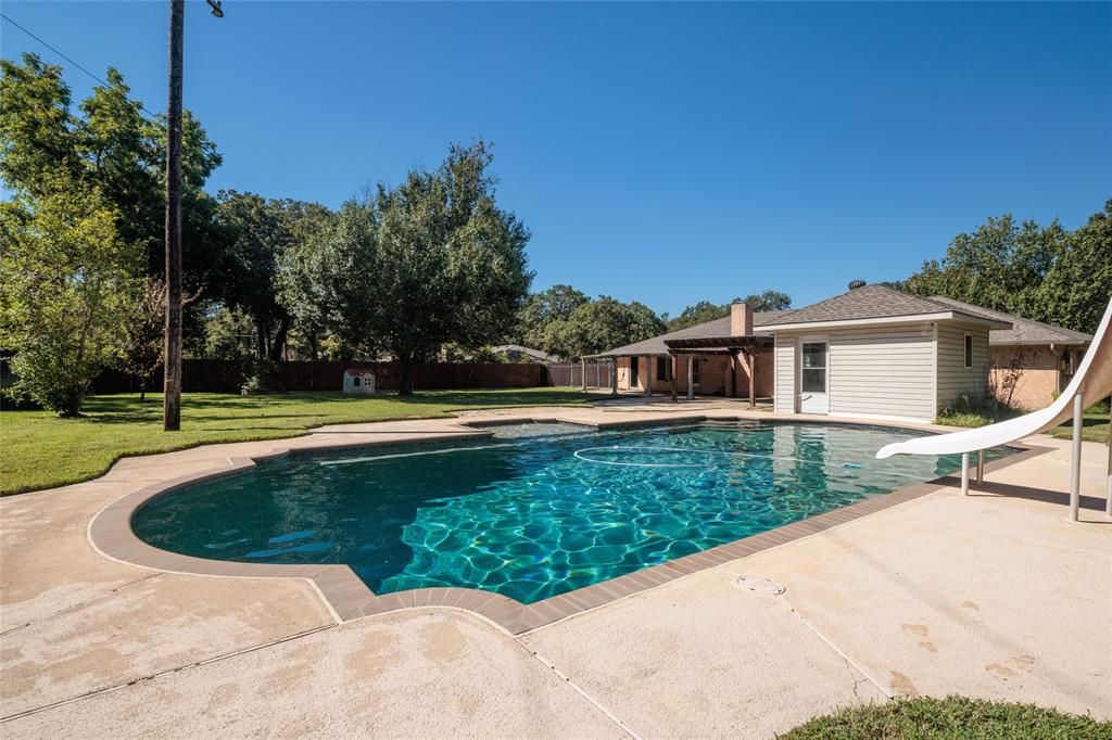 The best of both worlds- May qualify for open enrollment with Carroll schools, without the Southlake price! Charming updated home nestled on a half acre with a sparkling pool. So many extras including an updated kitchen & baths, vinyl windows, plantation shutters, LED lighting, vinyl exterior siding, & more! Very open concept great for entertaining. Recent roof & water heater, updated electrical panel & aluminum wiring removed. 4 large & accomodating bedrooms. HUGE covered patio + a cedar pergola overlooking a big private yard. Every day is a vacation with the recently renovated pebble-tech pool complete with saltwater system and a slide for the kids! Water well feeds the sprinkler system for a lush yard. Lots of driveway & easy access to add boat or RV parking past the wrought-iron fence, and NO HOA to give you trouble. The garage has a workshop area, & there's a storage shed for your yard equipment. Over 30K in upgrades in the last two years. Samsung Elite smart refrigerator and high-end LG washer & dryer are inlcuded. So are the security cameras and video doorbell.