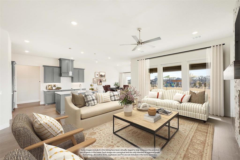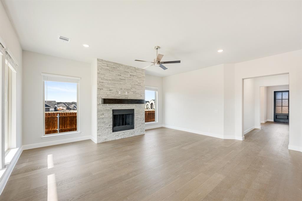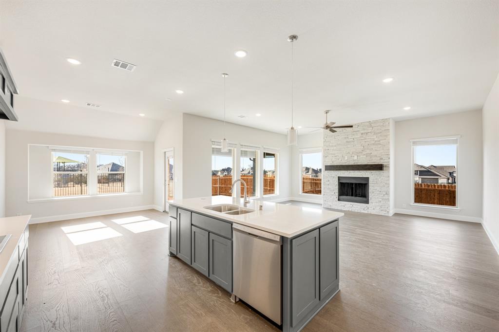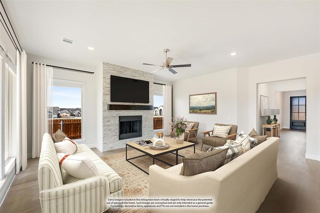 *Contact Community Manager for incentives!* NEW! NEVER LIVED IN. READY NOW! Bloomfield's Caraway offers an ideal single-story layout on a premium lot backing up to a green space, featuring 4 spacious bedrooms, 3 baths. Durable Wood floors adorn the common areas and with 10' ceilings amplifying open-concept design, the Family Room is filled with natural light through picture windows, complemented by a Stone-to-Ceiling Fireplace and with cedar mantel. The heart of the home is the Deluxe Kitchen boasting built-in SS appliances, a huge center island with pendant lighting, Quartz tops, Designer backsplash, contemporary hardware, trash roll out, and upgraded cabinets. The Primary Suite, with backyard views, includes an incredible bath with a separate tub and shower, a large walk-in closet with secondary access to the utility room. Cedar Garage Doors, Blinds, Gutters, Uplighting, and striking Stone & Brick exterior...the list goes on & on! Call or visit Hayes Crossing today!