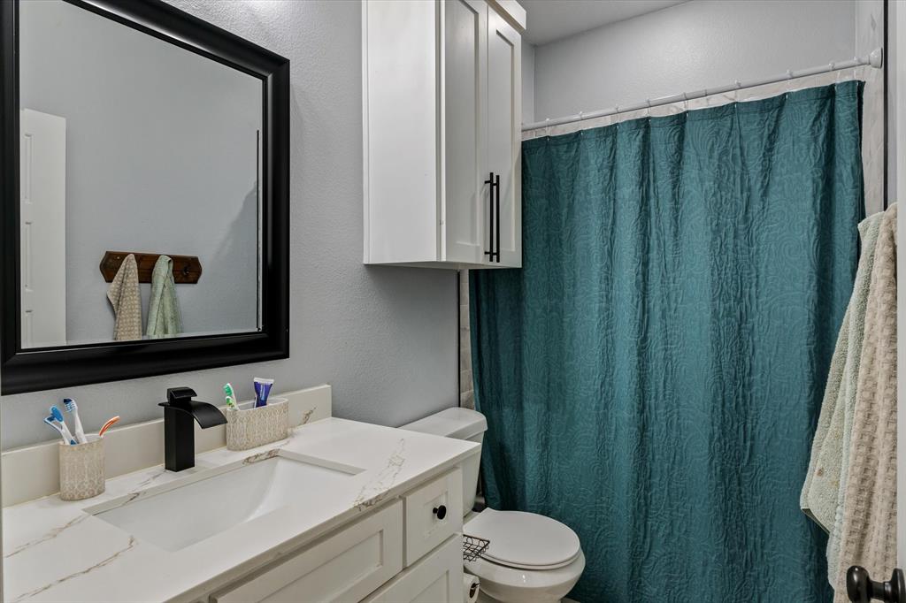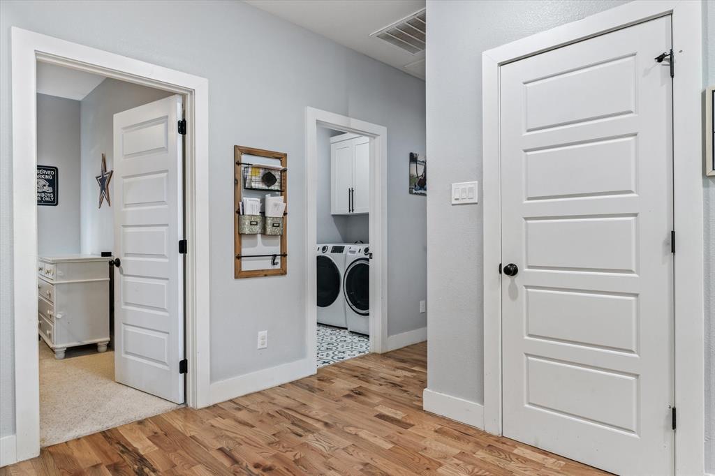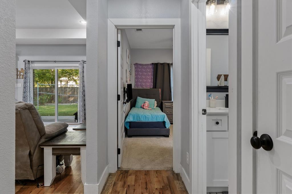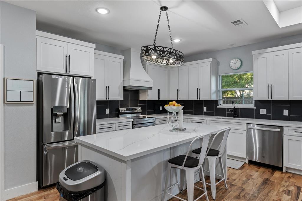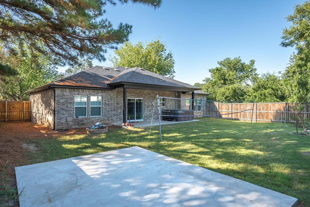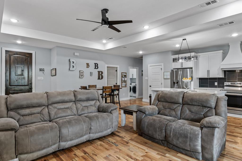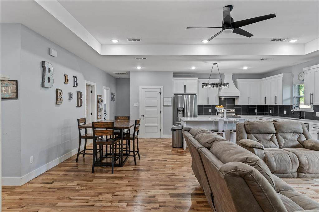Charming 4 bed 2 bath on .3 acre corner lot. Located in highly desired Paradise Bay subdivision. Entering the home you are greeted with an open kitchen & living area perfect for entertaining. Kitchen boasts a large island, granite counters, tile backsplash, deep sink, abundant cabinet space & modern elegance. Kitchen seamlessly opens into the living & dining area featuring tray ceiling, recessed lighting, TV wiring, & sliding glass door leading to the backyard. Real stained hardwood flooring throughout the kitchen, living area & hallways. Master suite features a connected bathroom, walk in closet, tray ceiling & ambient lighting. Master bath features tile flooring, double vanity, walk in shower & separate soaking tub. Garage features rubberized epoxy floor & motorized door. Backyard is complete with a covered patio & wood privacy fence. Concrete pad in the backyard is ready for building. High speed internet tower installed. POA offers two public boat ramps, fishing docks & swim area.