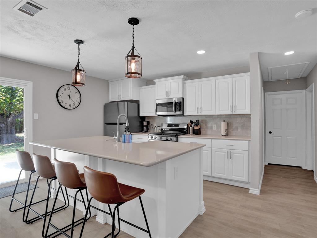 **Charming Turn-Key Retreat in Little Elm's Premier Lakefront District** Motivated seller and a keenly competitive market make this home a must-see—additional land development ensures its value will only grow. This could be your next home!! The beautifully renovated 3 bedroom, 2 bath sanctuary, perfectly nestled on a spacious 0.24-acre lot. With new construction blossoming around, this legacy single-family home offers a distinctive chance to become part of a vibrant community evolution. **Amazing Renovation** Inside, the home is a testament to modern elegance and thoughtful design. The 2024 renovation showcases a sophisticated primary ensuite with an oversized shower, dual sinks, and sleek quartz countertops. The kitchen, a centerpiece of culinary delight, boasts an expansive island, farmhouse sink, and all-new cabinets crafted for functionality and style. Commercial-grade LVP flooring runs throughout, providing durability and an elegant finish. Additionally, a state-of-the-art tankless water heater and a new 3.5 ton HVAC ensures comfort. Enjoy the serenity of your expansive lot, surrounded by mature trees, providing shade and privacy. The large patio invites leisurely afternoons and evening gatherings, while the absence of an HOA offers freedom to personalize your outdoor space. NOW IS THE TIME TO BUY in Little Elm as development gears up to grow its Lakefront District. Revel in easy access to local amenities, including walking to Little Elm Beach on Lake Lewisville, The Rec Center, The Lawn's Farmers Market, and a diverse array of dining and recreational venues right at your doorstep. **Currently a profitable Airbnb and great location to book for the 2026 Fifa World Cup, the 2026 Ironman and Universal Studios opening in 2026**