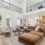 bedrooms (2 downstairs and 3 upstairs), five full and one half bath, a large game room and media room, and multiple laundry rooms (one on each level). A living room with soaring ceilings and large windows bathe the home in natural light while high-end appliances, custom cabinetry, a