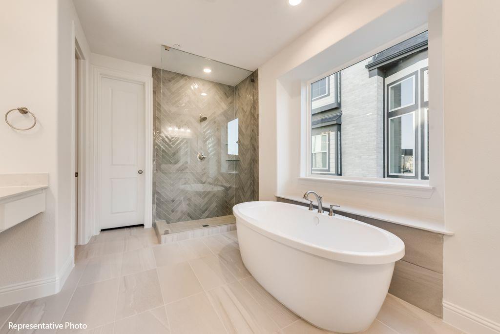 New Grand Home PROPOSED Home on extra deep .23 acre north facing homesite backed to creek in Buffalo Ridge with no MUD, PID, PUD. Neighborhood Creek. Stunning Modern open concept home with vaulted family room. Downstairs Media Room & Home Office. Custom features include wood floors, 8-foot doors downstairs, full oak staircase w wrought iron balusters, rocker switches & flat screen tv wiring. Entertainers' kitchen has granite slab tops, Shaker cabinets, 5 burner gas cooktop, stainless steel appliances & island. Primary Bath has a free-standing tub & separate Marlana vanities & glass shower w deco tile. Upstairs Gameroom, Media Room & Children's Retreat or Bonus Room for the kids to have space. Energy Star partner w R38 & tankless water heater.