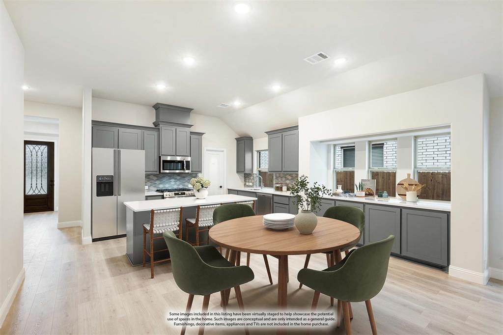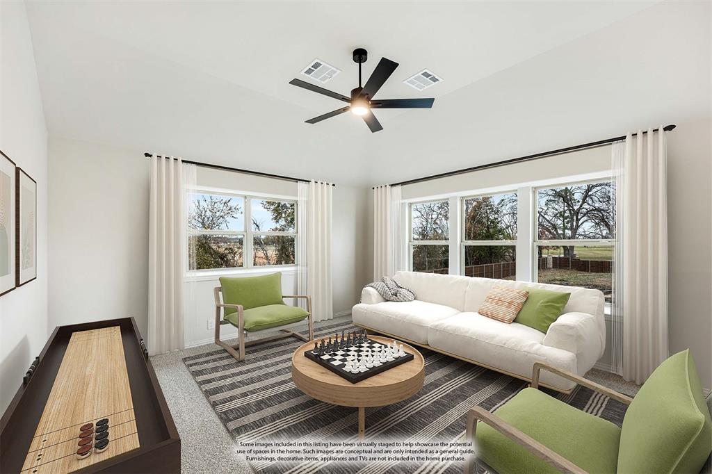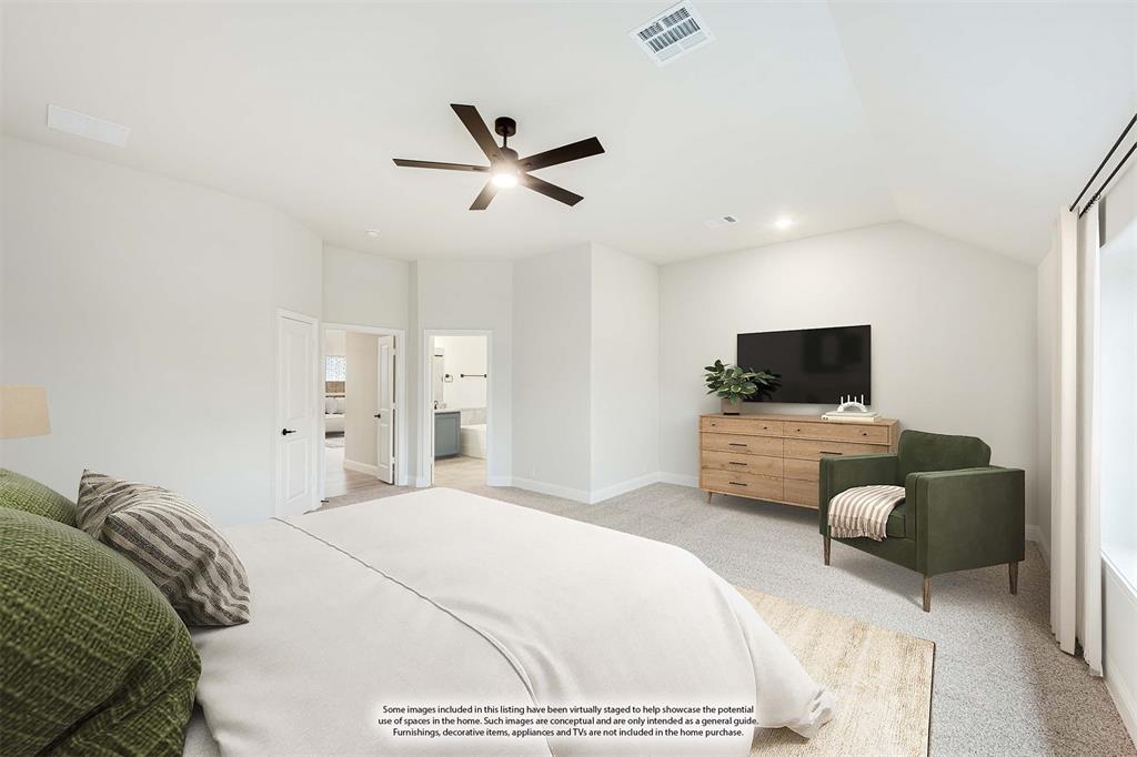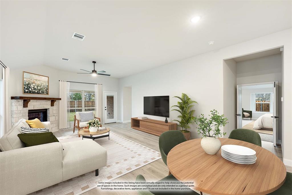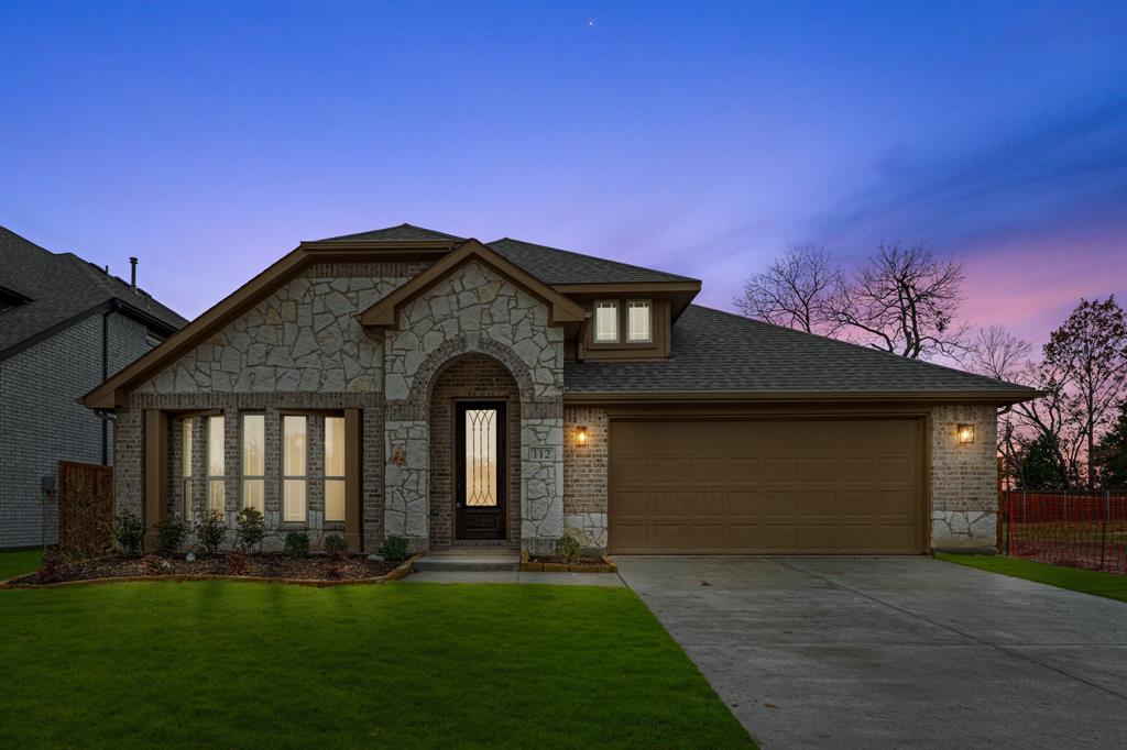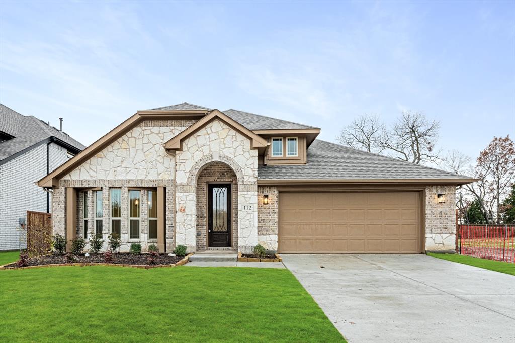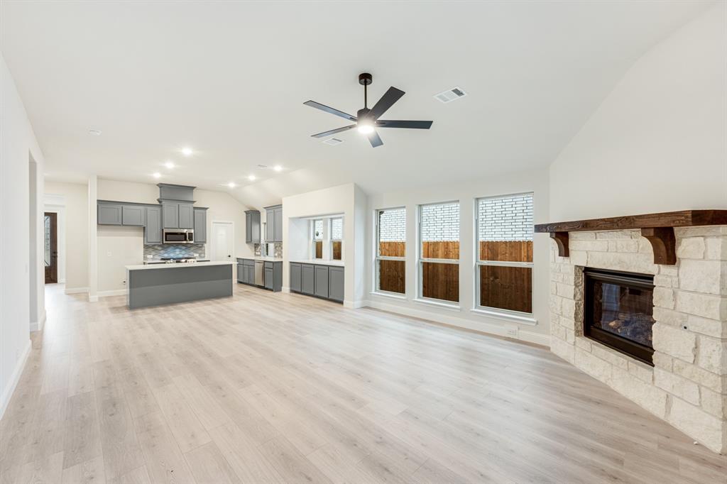 *Contact Community Manager for incentives!* NEW! NEVER LIVED IN. Pull up to find a charming brick and stone façade complemented by an elegant 8' front door. This open-concept home boasts 4 bedrooms, 3 baths, lots of windows, and a Study with Glass Doors. Upon entry, you are greeted by a covered porch leading to an expansive family room with an eye-catching stone fireplace, a gas starter, and beautiful laminate floors throughout. The heart of the home, the Kitchen is equipped with a Gas cooktop, exotic granite countertops, a large island, ample storage with pot and pan drawers below the cooktop, a sizable walk-in pantry, and a buffet at the Breakfast Nook. Downstairs, discover a luxurious Primary Suite featuring a walk-in closet, shower, and a garden tub. Upstairs, enjoy a versatile Game Room and Guest Suite, adding to the home's flexibility and functionality. Nestled on an interior lot, this home also boasts a Covered Patio with a Gas Stub for grilling and enjoying those Texas nights! This home is a statement of style and comfort—contact Bloomfield at East Oak Creek!