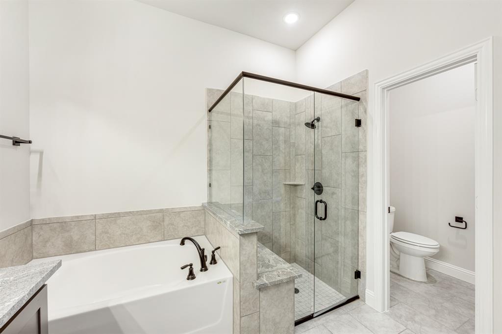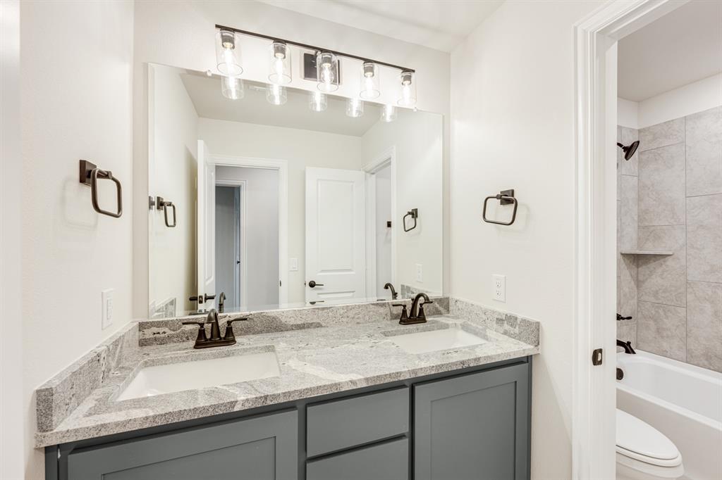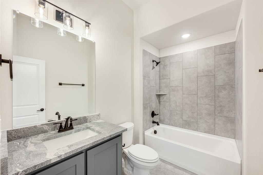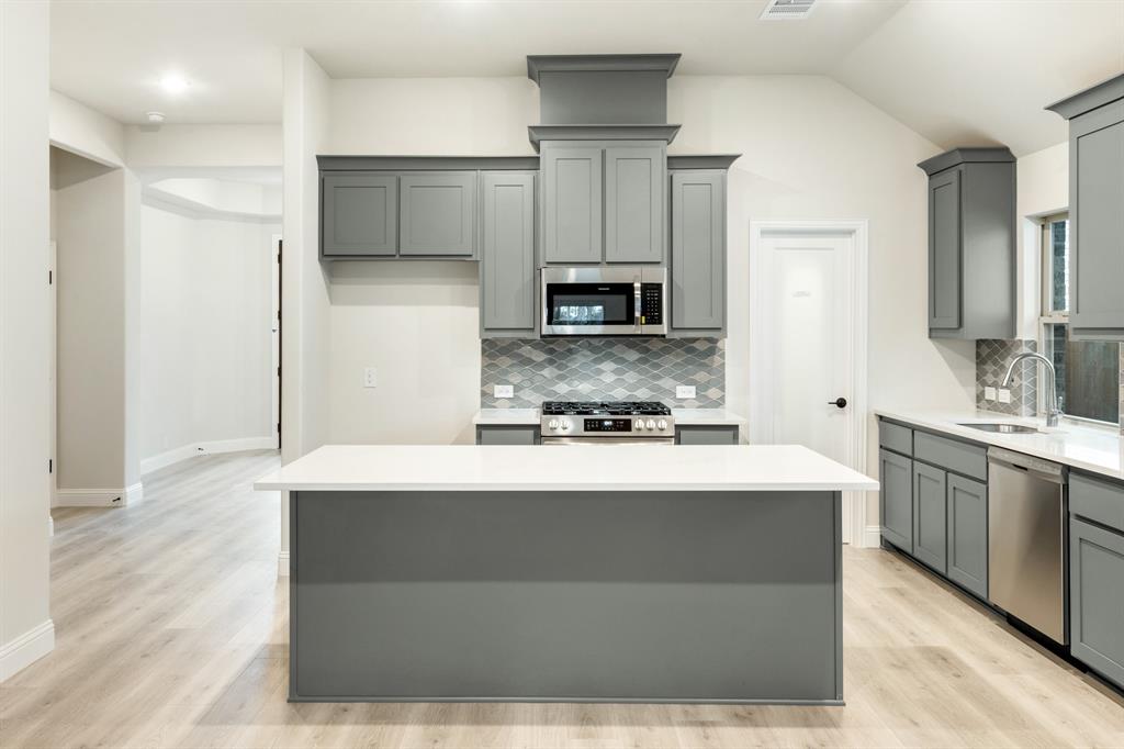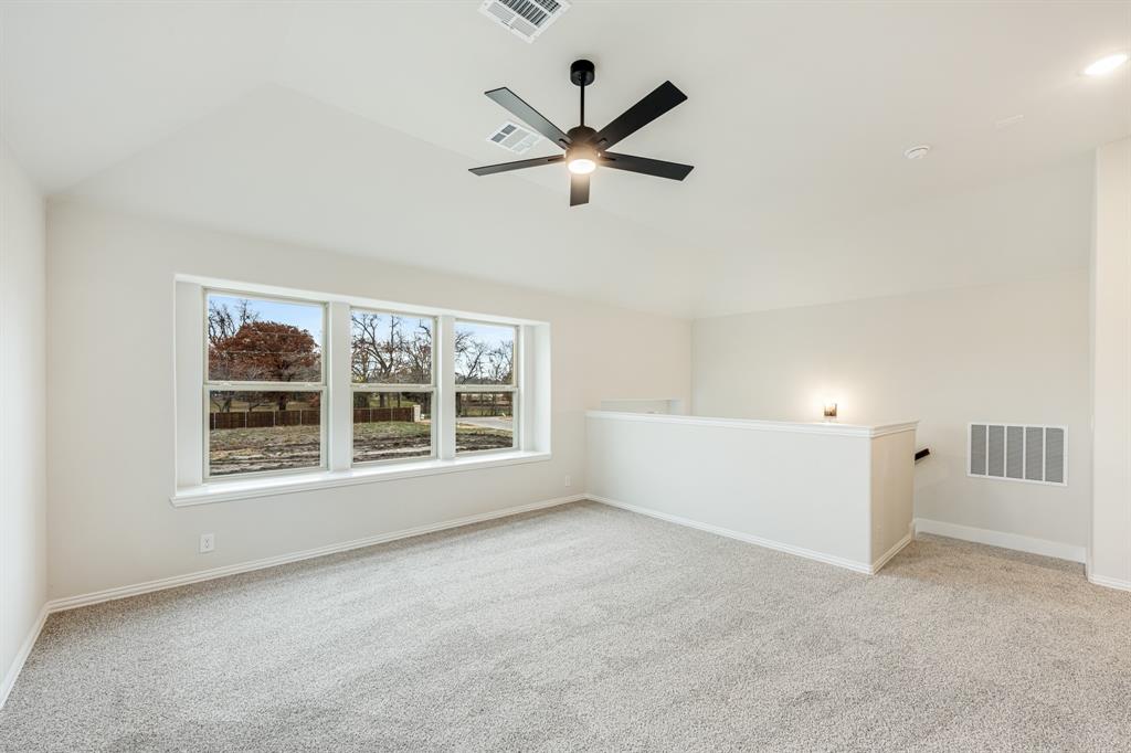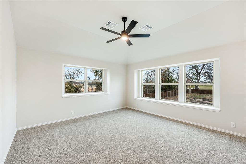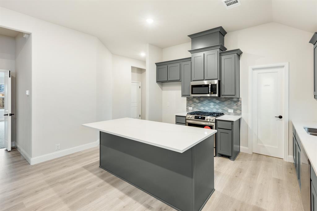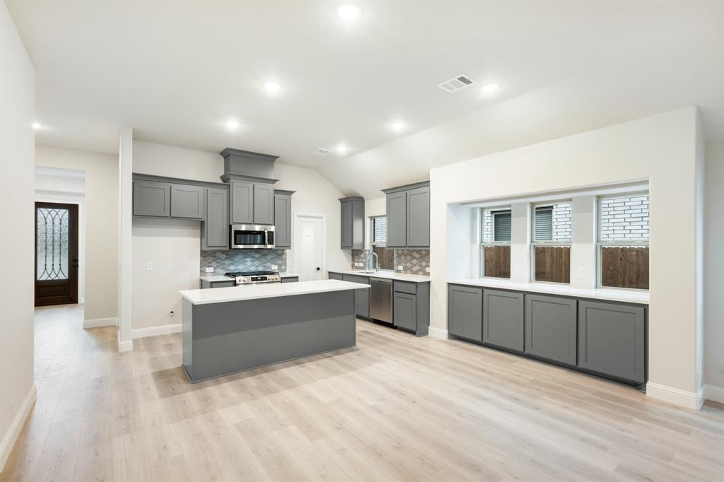 *Contact Community Manager for incentives!* NEW! NEVER LIVED IN. Pull up to find a charming brick and stone façade complemented by an elegant 8' front door. This open-concept home boasts 4 bedrooms, 3 baths, lots of windows, and a Study with Glass Doors. Upon entry, you are greeted by a covered porch leading to an expansive family room with an eye-catching stone fireplace, a gas starter, and beautiful laminate floors throughout. The heart of the home, the Kitchen is equipped with a Gas cooktop, exotic granite countertops, a large island, ample storage with pot and pan drawers below the cooktop, a sizable walk-in pantry, and a buffet at the Breakfast Nook. Downstairs, discover a luxurious Primary Suite featuring a walk-in closet, shower, and a garden tub. Upstairs, enjoy a versatile Game Room and Guest Suite, adding to the home's flexibility and functionality. Nestled on an interior lot, this home also boasts a Covered Patio with a Gas Stub for grilling and enjoying those Texas nights! This home is a statement of style and comfort—contact Bloomfield at East Oak Creek!