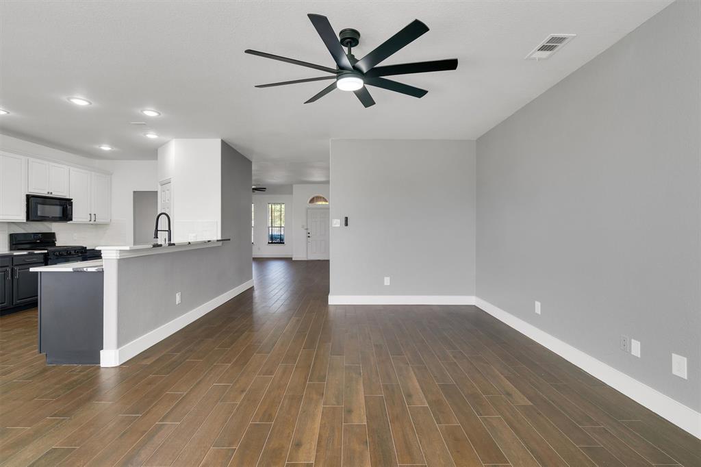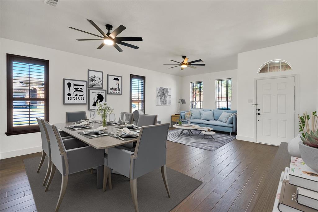 This beautifully upgraded, one story home offers a mix of luxury, warmth and practicality, perfect for creating lifelong memories. Step into a welcoming space with elegant, wood-style tile floors and custom plantation shutters, all complemented by sleek, modern ceiling fans. The oversized living room can effortlessly transition into a formal dining and living area, making it ideal for family gatherings and holiday celebrations.