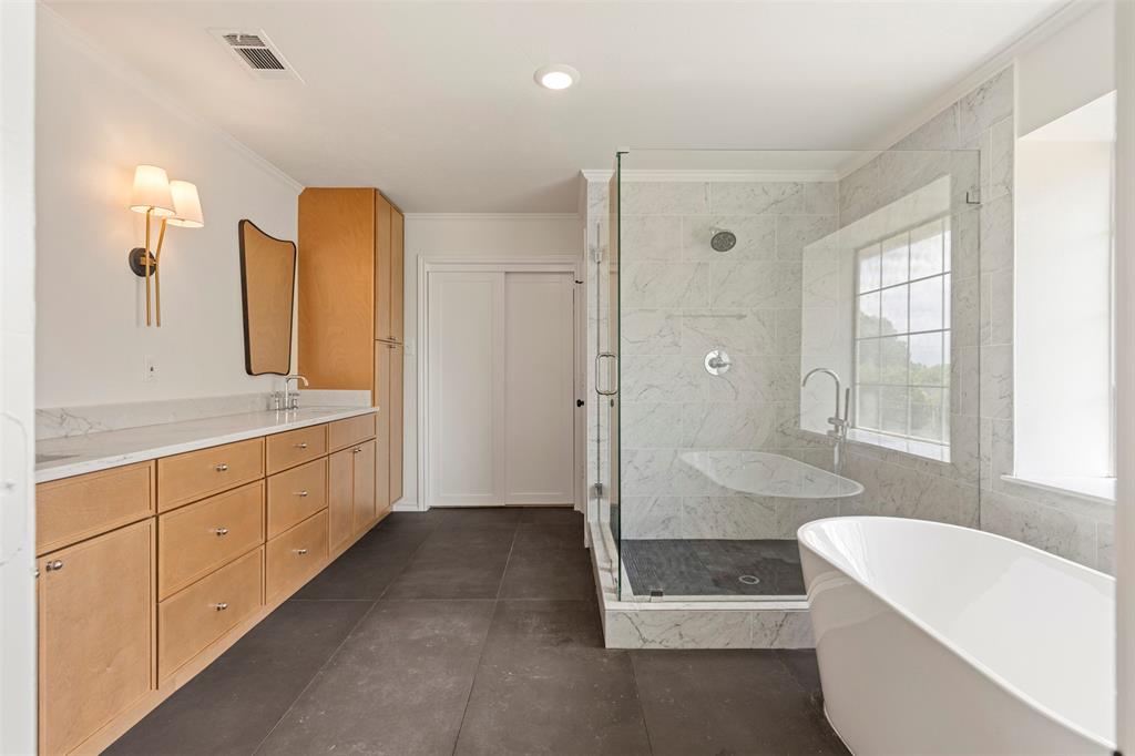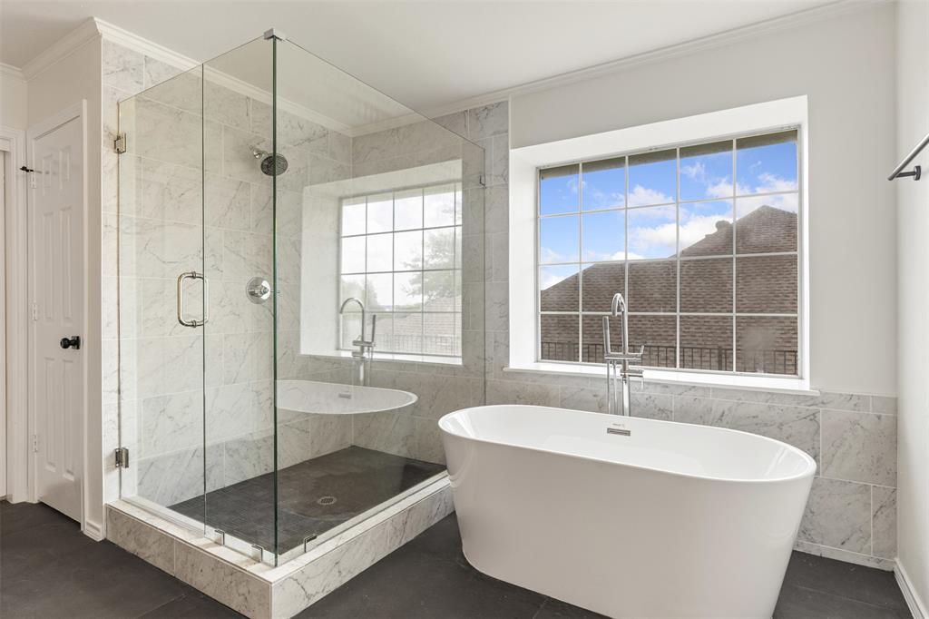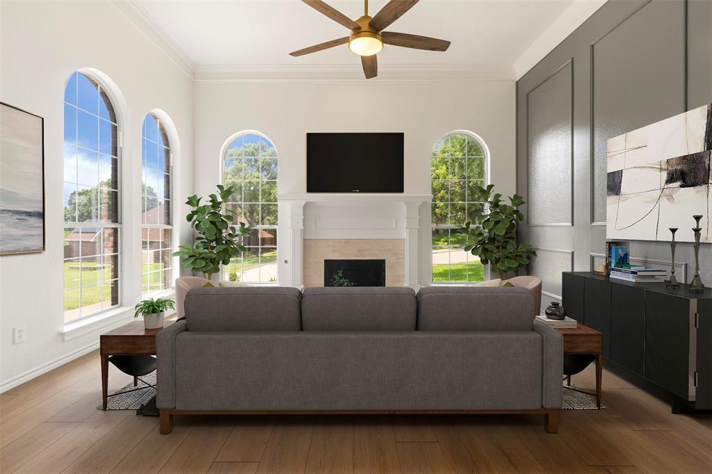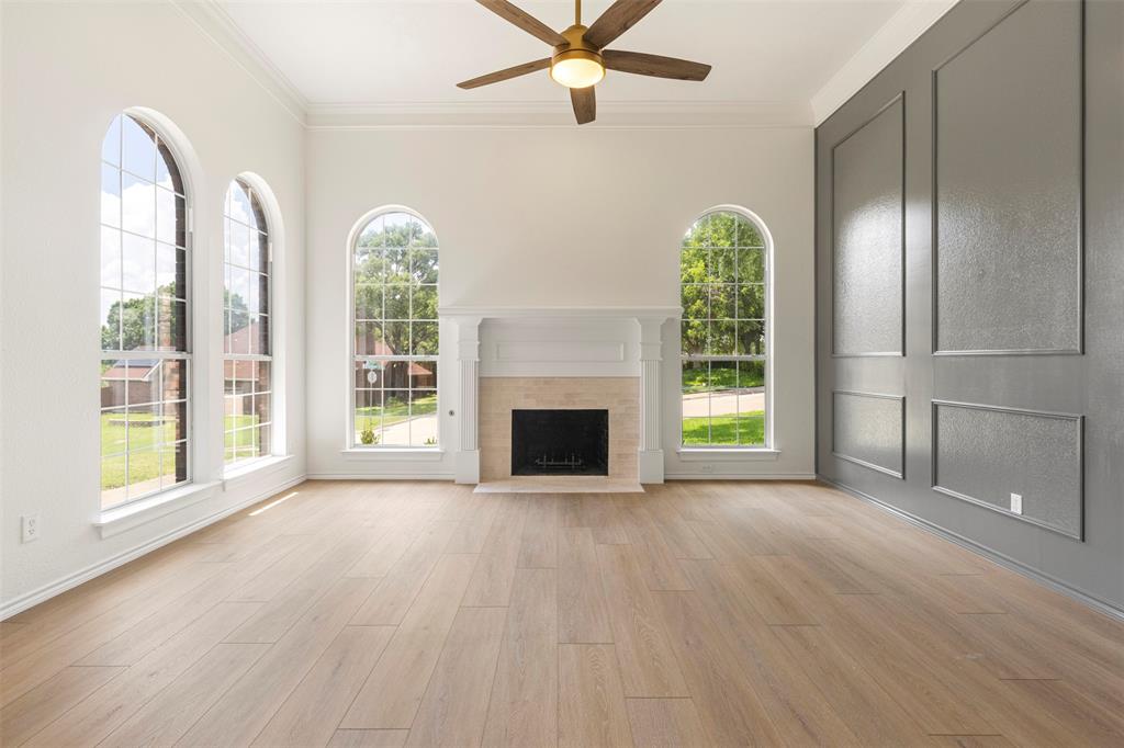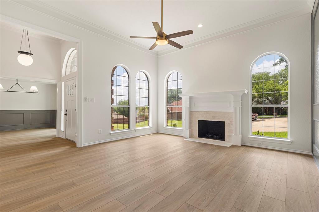 ***OPEN HOUSE August 23rd 12-3pm*** Welcome to 1603 Stoneybrook Dr — a fully renovated, professionally designed home located just minutes from Lake Ray Hubbard in the desirable Northshore neighborhood of Rockwall. This stunning 4-bedroom, 2-bathroom home offers the perfect blend of modern luxury and timeless charm, with every inch thoughtfully upgraded by Maverick Design. Enjoy new wood-look vinyl flooring, plush carpet, and oversized designer tile throughout. The kitchen is a showstopper featuring custom cabinetry, quartz countertops, designer tile backsplash, and brand-new stainless steel appliances including oven, microwave, range, dishwasher, and vent hood. The home showcases new designer-selected two-tone interior and exterior paint, sleek fixtures, and framed mirrors in both bathrooms. The spacious living area is bright and inviting, highlighted by arched windows, a feature wall, and a beautifully updated fireplace. The primary suite offers a spa-like retreat with a freestanding soaking tub, frameless glass shower, dual vanity with marble counters, and updated hardware. Additional upgrades include a brand-new HVAC system (inside and out), plumbing fixtures, electrical updates, roofing repairs, various new windows and doors, and garage door servicing. The exterior features fresh landscaping, trimmed greenery, and great curb appeal. Located in Rockwall ISD, this home offers convenient access to lakefront recreation, dining, and shopping. Whether you're entertaining or relaxing, 1603 Stoneybrook Dr provides a refined, move-in ready experience with every upgrade already complete. Don’t miss your chance to own this beautifully reimagined home near the lake!