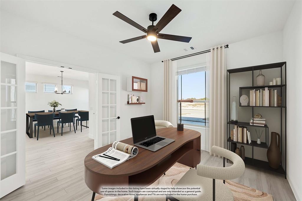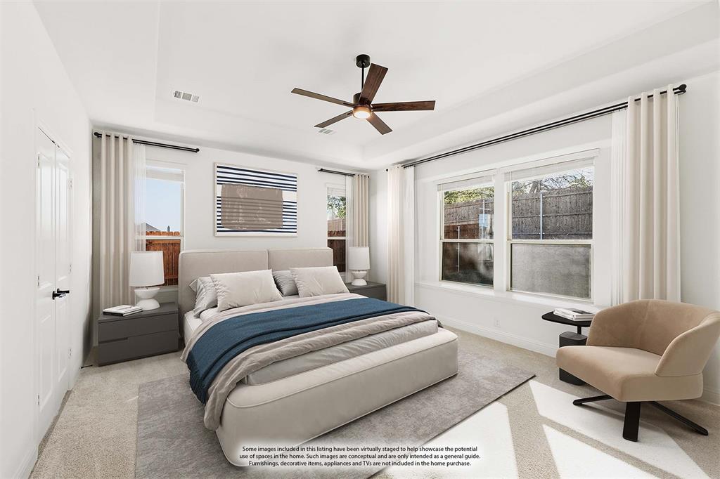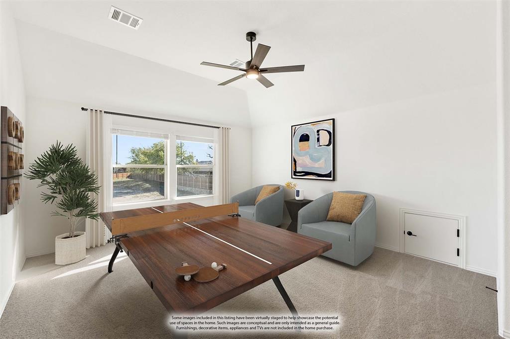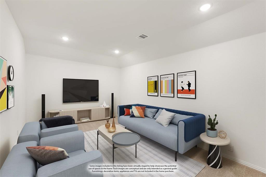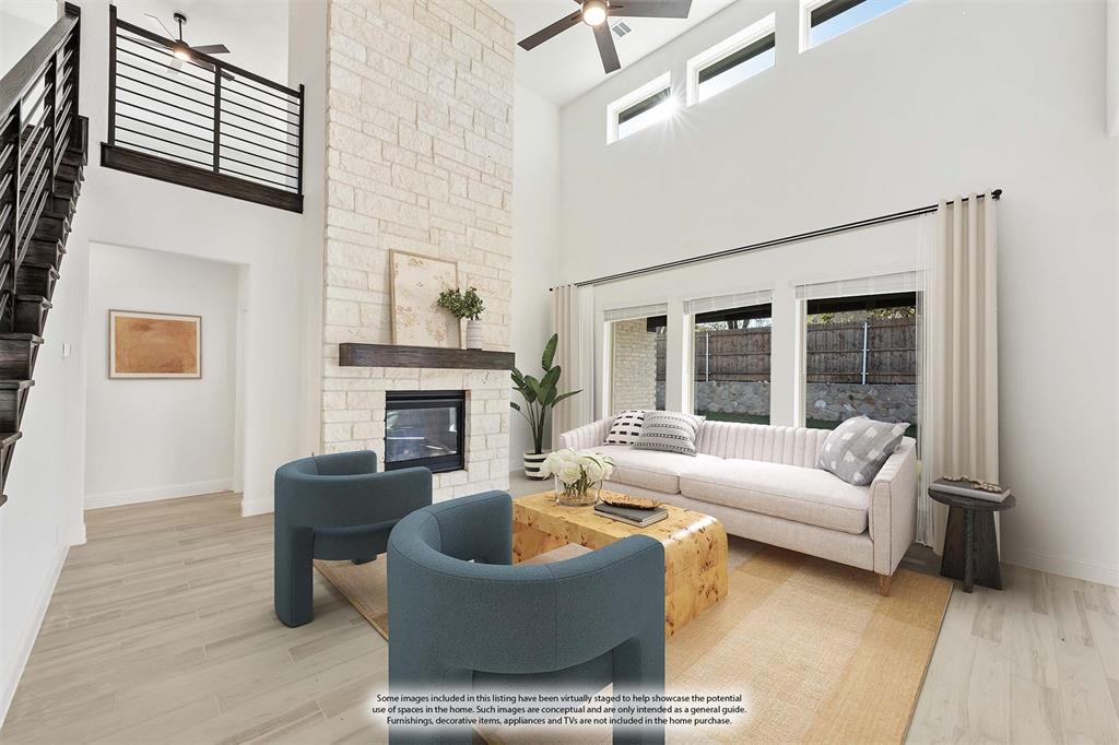*Contact Community Manager for incentives!* NEW! NEVER LIVED IN. Move-In Ready! Look forward to exploring 4 spacious bedrooms and 4 baths throughout this breathtaking two-story home! The main level includes a Study through elegant Glass French Doors and an open Formal Dining Room connected to the kitchen by a Butler's Pantry. The ideal Deluxe Kitchen features Quartz countertops, custom cabinetry, a Double Oven, built-in SS appliances, a walk-in pantry, a trash can pullout, and lovely under-cabinet lighting. The Family Room has a soaring Stone-to-Ceiling Fireplace, while the Game Room overlooks from above beautifully. Media Room off Game Room for all your entertainment needs. In the Primary Suite, a relaxing garden tub, glass-enclosed shower, L-shaped dual vanity, and spacious walk-in closet make up the retreat of your dreams. Additional features include an 8' Glass Front Door, cedar garage doors, blinds, gutters, and uplighting. Visit our model home at Mockingbird Heights to learn more!