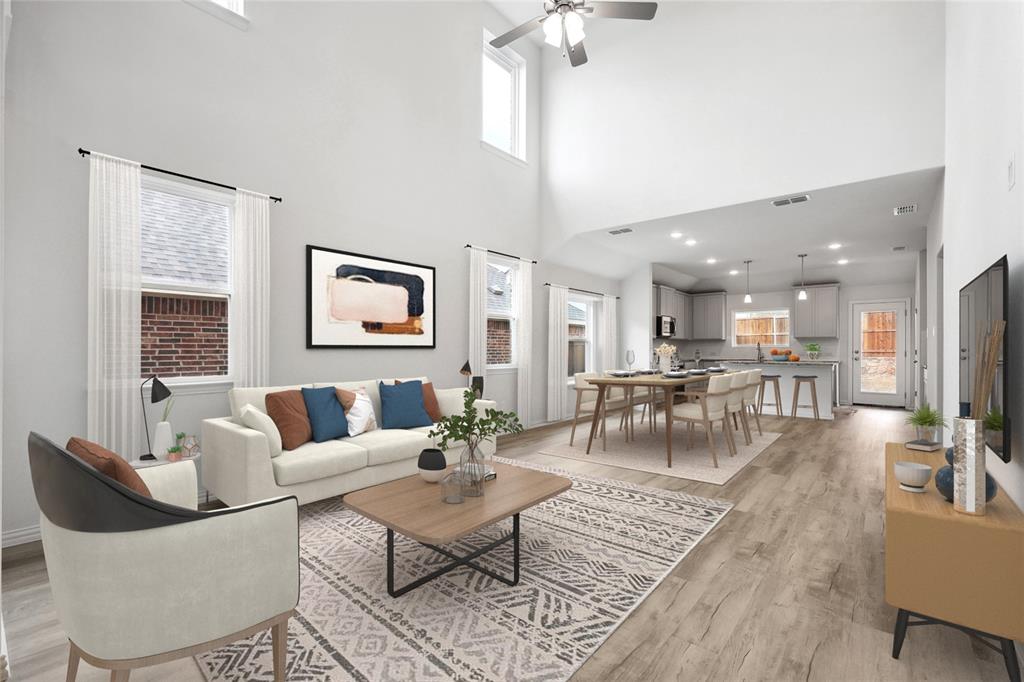 A stunning two-story with soaring ceilings, designer kitchen finishes, and a large backyard, offering open-concept luxury and flexible living in Sherman’s most dynamic community, Bel-Air Village. Plus, the home is just moments away to the future beach club! This stunning two-story Meridian Plan offers 2,139 square feet of luxurious living. From the moment you enter, you're greeted by soaring ceilings in the great room and natural light pouring in through a wall of windows, creating a sense of openness and warmth with durable wood-looking flooring flowing throughout. The open-concept kitchen features stainless steel appliances, subway tile backsplash, soft gray cabinets, ample storage and counter space, a large island, a spacious pantry, and granite countertops. The exclusive owner's suite is located away from the great room, providing a peaceful retreat complete with a large shower and a spacious closet. Upstairs, the opening railing adds architectural flair while keeping the space visually connected. You'll find three cozy bedrooms, perfect for hosting guests or accommodating your growing family. Outside, a covered patio overlooks a spacious backyard perfect for pets, playtime, or your dream garden setup. Imagine going outside your door to find nearby planned green spaces and walking trails, perfect for morning jogs, evening strolls, or simply enjoying the tranquility of nature. The planned playground and picnic area will become a favorite spot for family outings and neighborhood gatherings, fostering community and connection among residents. Beyond Bel Air Village, Sherman offers a variety of attractions and recreational opportunities. Bel Air Village also offers excellent connectivity, with easy access to US 75, ensuring smooth commutes and convenient travel to surrounding areas. Whether you're heading to work, exploring the local dining and shopping scenes, or venturing further afield, this community's strategic location makes it all effortlessly accessible.