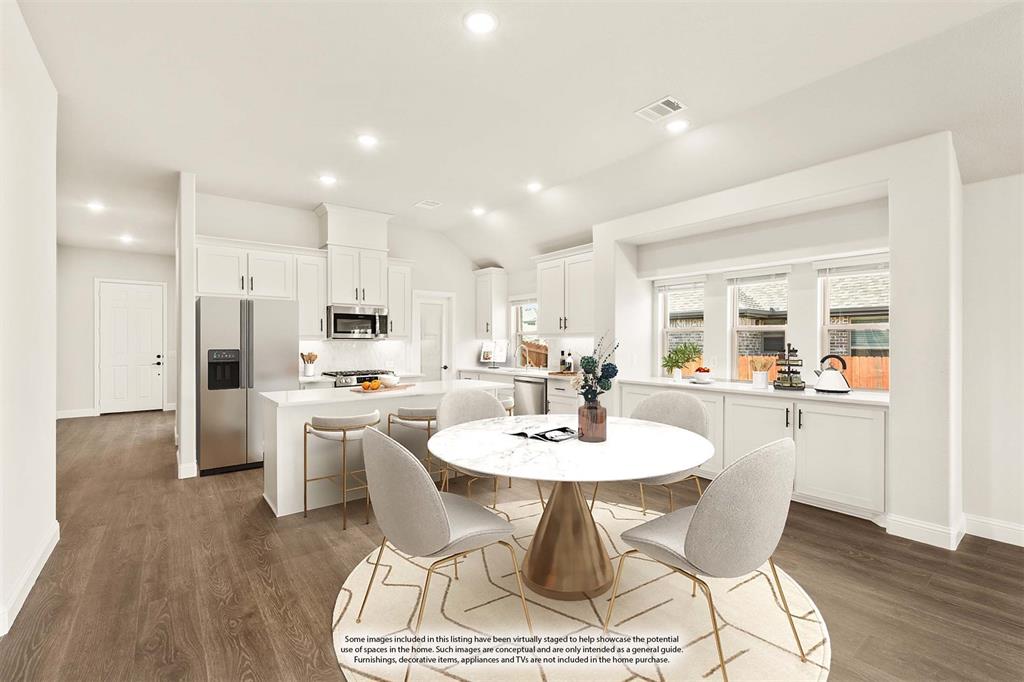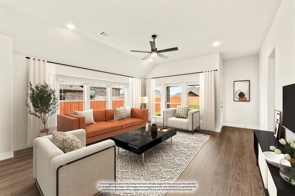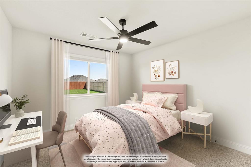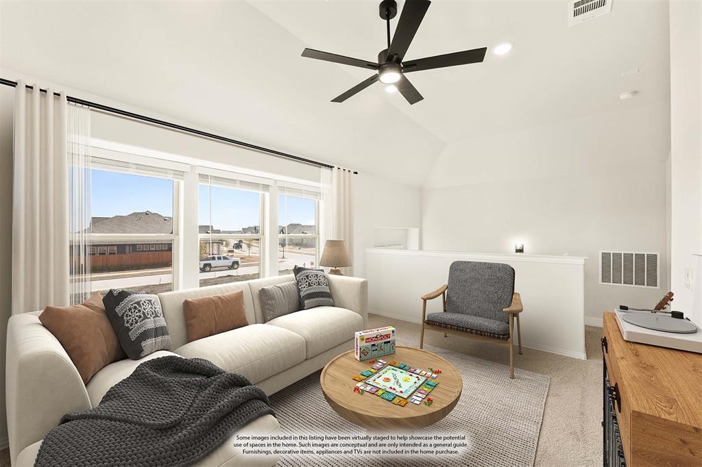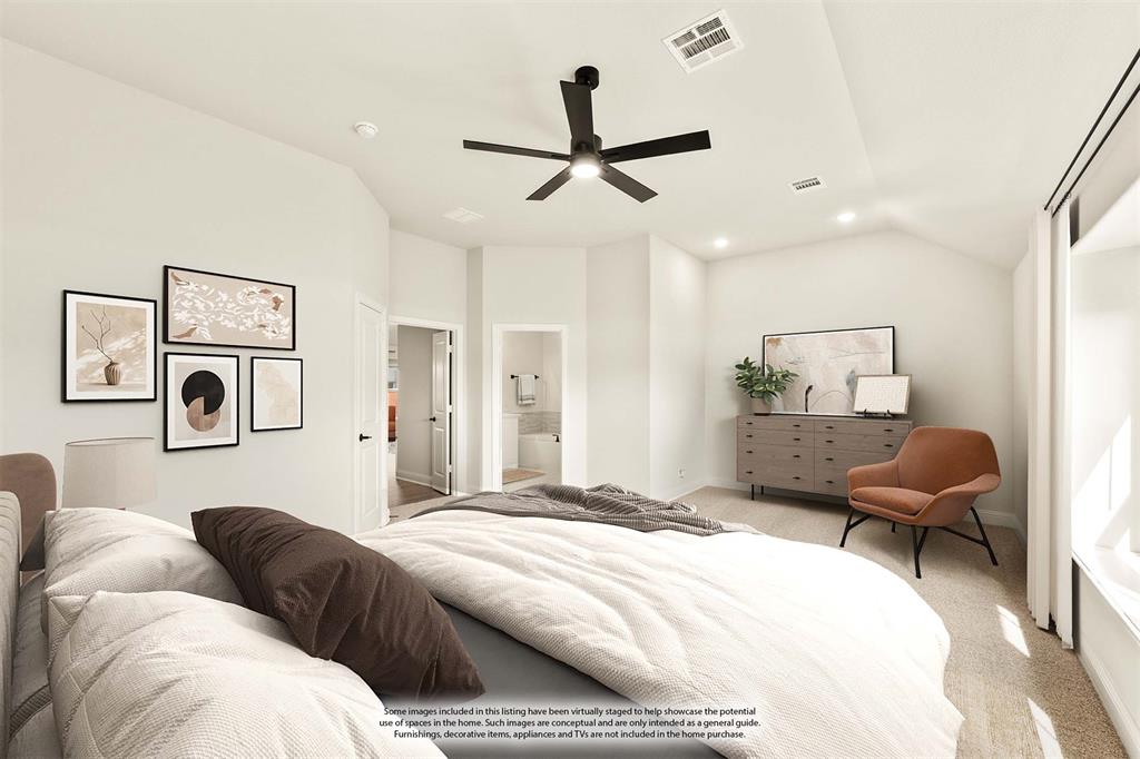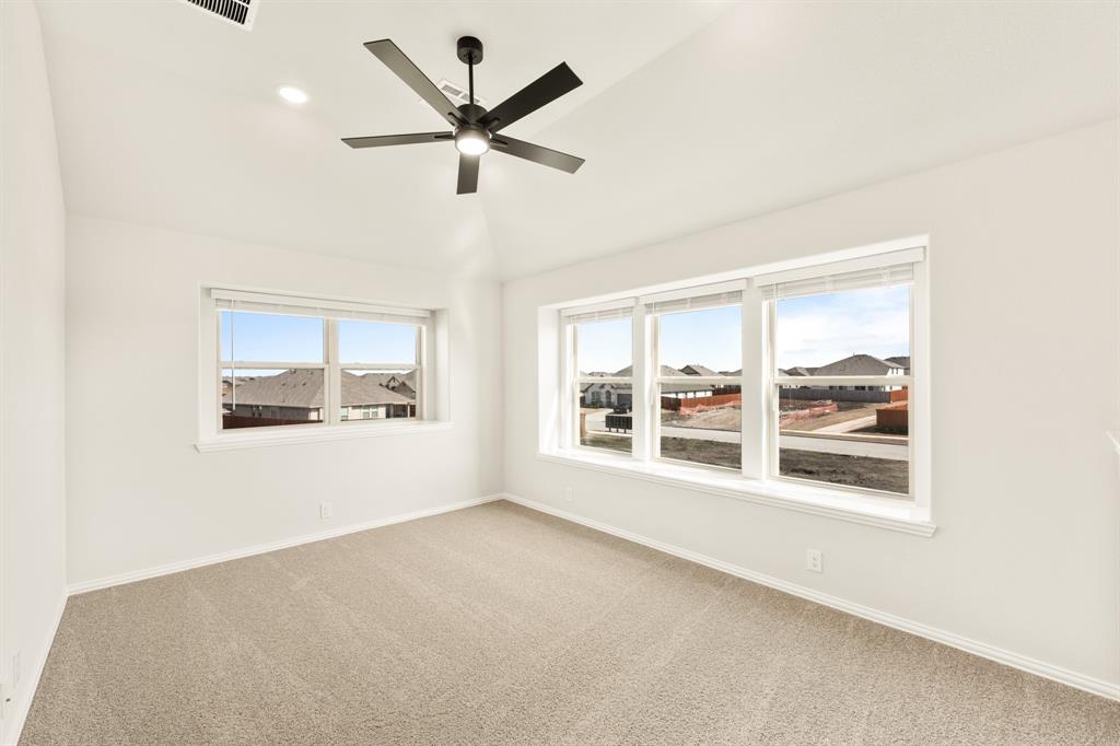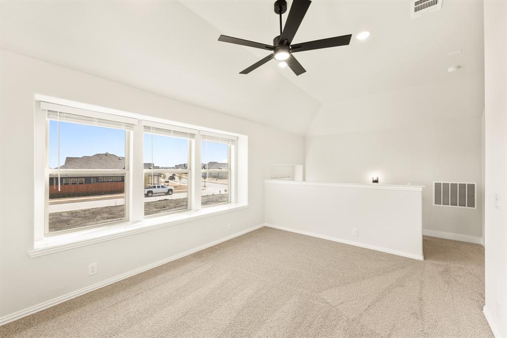 NEW! NEVER LIVED IN. Quick Move In Ready! Bloomfield's Cypress II is a luxurious 1.5-story home with 4 bedrooms, 3 baths, and elegant craftsmanship. Set on an oversized homesite, this home boasts a beautiful brick and stone facade and an 8' custom front door, welcoming you inside to a thoughtfully designed interior. Laminate floors adorn the common areas with plush carpet in bedrooms. The Family Room flows into the Kitchen adorned with quartz countertops and a large island workspace ideal for barstools. Thoughtfully designed for convenience, it offers ample storage with a walk-in pantry, large closets, and a buffet at Breakfast Nook. Sitting area in luxury Primary Suite. Upstairs discover a versatile Game Room, private bedroom, and full bath making it perfect for guests or growing families. Residents in Heartland can enjoy a pool with resort slides in the summer, a fitness gym, trails, and more! Come visit to tour this popular Bloomfield single-story plan and explore the amazing community.
