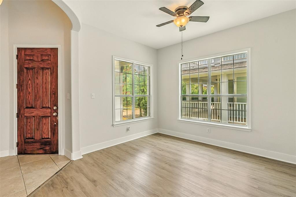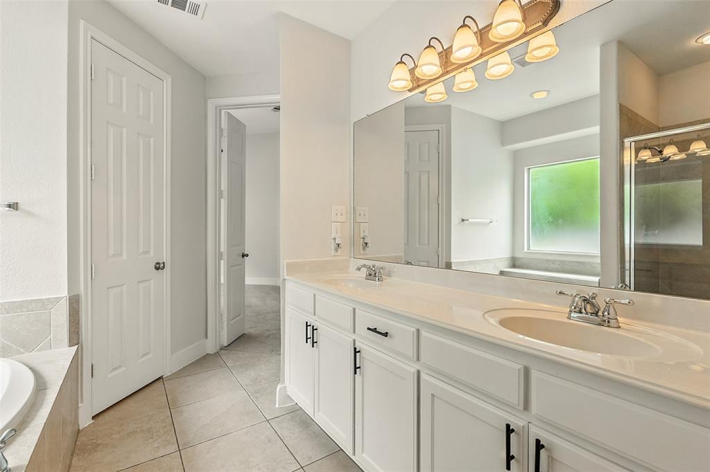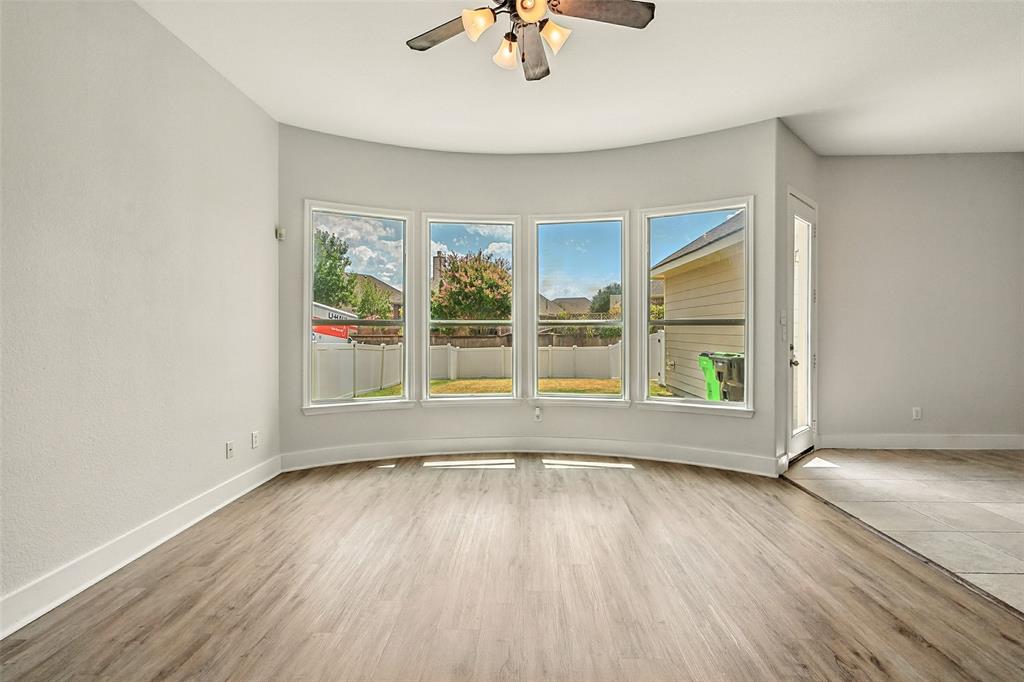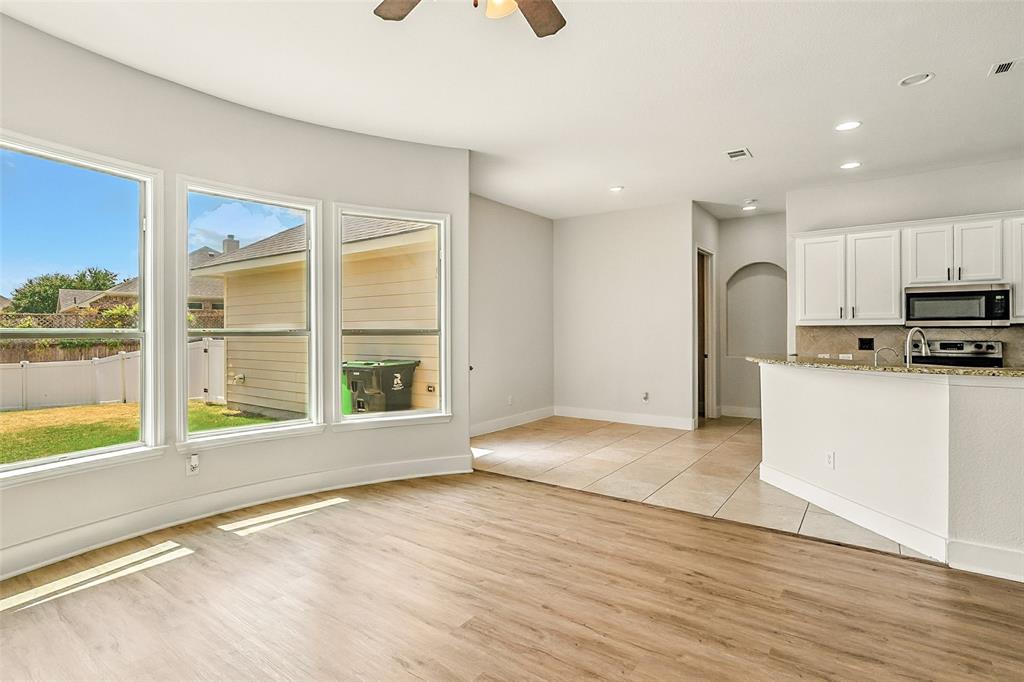 NEW ROOF! Imagine a beautifully refreshed home, brightened by freshly painted walls that radiate warmth and charm. As you step inside, you’re welcomed by a stunning rotunda with a high ceiling, setting an elegant tone for the space. To the left, a hallway leads you to a formal dining room, ideal for hosting dinners. Down the opposite hall, the secondary bedrooms provide comfort and privacy, each softened by new, plush carpeting. The heart of the home is a spacious living area, grounded by new sleek, wood-look luxury vinyl plank flooring and filled with natural light streaming in from a wall of windows. These windows frame a serene view of the backyard, perfect for outdoor entertaining or relaxation. Centered in the living room is a cozy fireplace, creating an inviting atmosphere for gatherings or quiet evenings. The kitchen is both stylish and functional, with ample cabinet space, stainless steel appliances (new stainless steel microwave), and a gleaming granite countertop. A breakfast nook provides a sunny spot for casual meals, completing this well-designed kitchen. The master suite is tucked away from the other bedrooms, offering a peaceful retreat. Its spacious layout provides plenty of wall space for furniture and decor. The ensuite bathroom has a walk in closet, soaking tub, separate shower, and double sinks. Good size backyard, and neighborhood activities galore! NEW ROOF PENDING PERMITS!