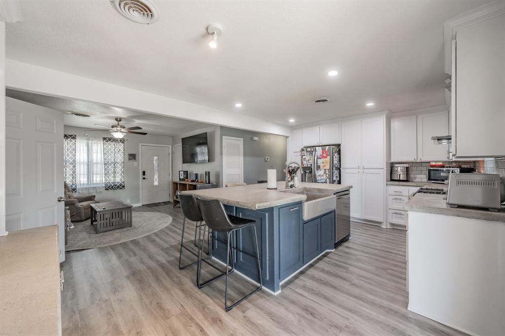 Highly sought after Grandview ISD... HOLD UP for real... STOCK POND FISHING right in your back yard... Home has been remodeled inside & out with great open concepts. Home has luxury plank floors & new carpet, breakfast bar, new stove, fridge, pantry, covered patio off of dining area for entertainment... With the remodel all plumbing is new both water & sewer. Tankless hot water tank, etc... Plenty of room to build on if you need more space... HUGE CLEAN SHOP to produce all your IDEAS & or HOBBIES in a 24 x 28 insulated metal building on slab flooring. Your new CREATIVE CENTER SHOP has water, electric, sink, a heating-cooling window unit... Next to your Shop is COVERED RV SPACE with electric hook ups... Also, an exclusive outdoor well with a 16 x 15 well house just to keep the Trophy Bass & Succulent Catfish FAT & ready for your pleasure or to water your gardens... Nearly 2 acres in city limits but wide-open pasture out back to give the feel of The Ponderosa Country Life but close to everything in town... See the amazing drone pictures of the total features awaiting a lifetime of pleasures...