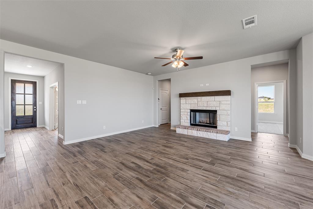 We are excited to introduce a brand new floor plan called the Salado! The entry is open to a bright flex Room on the right. The private owner's suite is separate from bedrooms 2 through 4. The owner's suite is complete by including a garden tub, separate shower, private commode, walk in closet, and dual, separate vanities. Adjacent to the owner's suite is the large living room with a fireplace option and open to the spacious island kitchen.