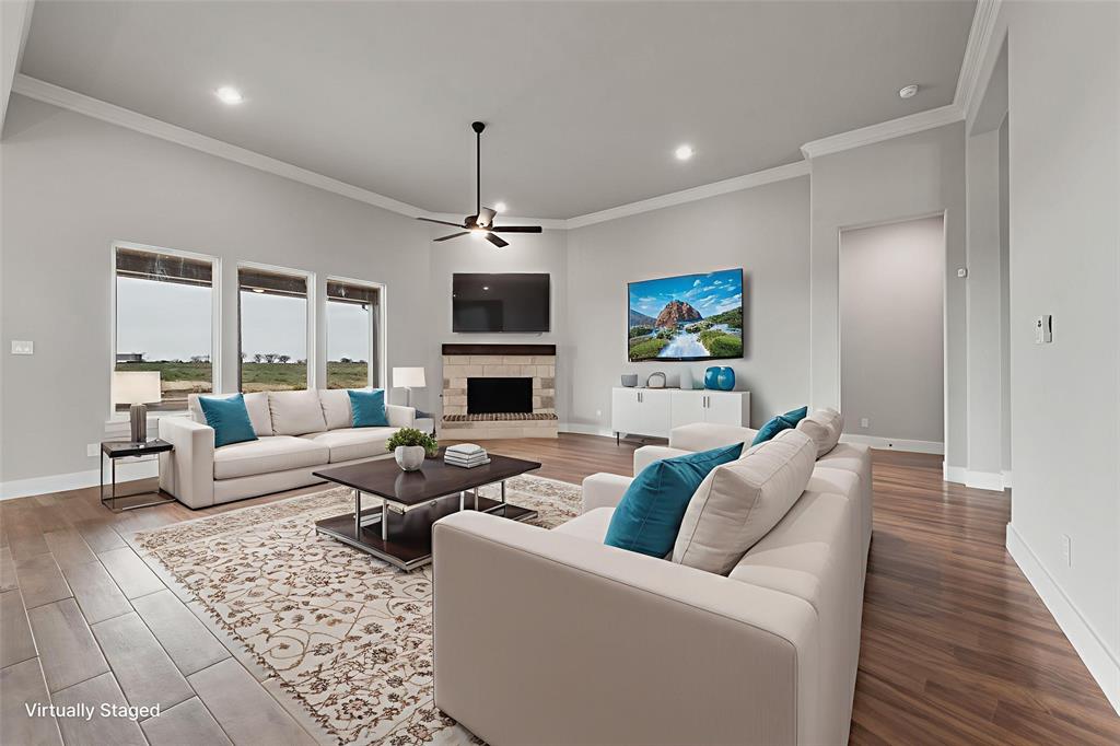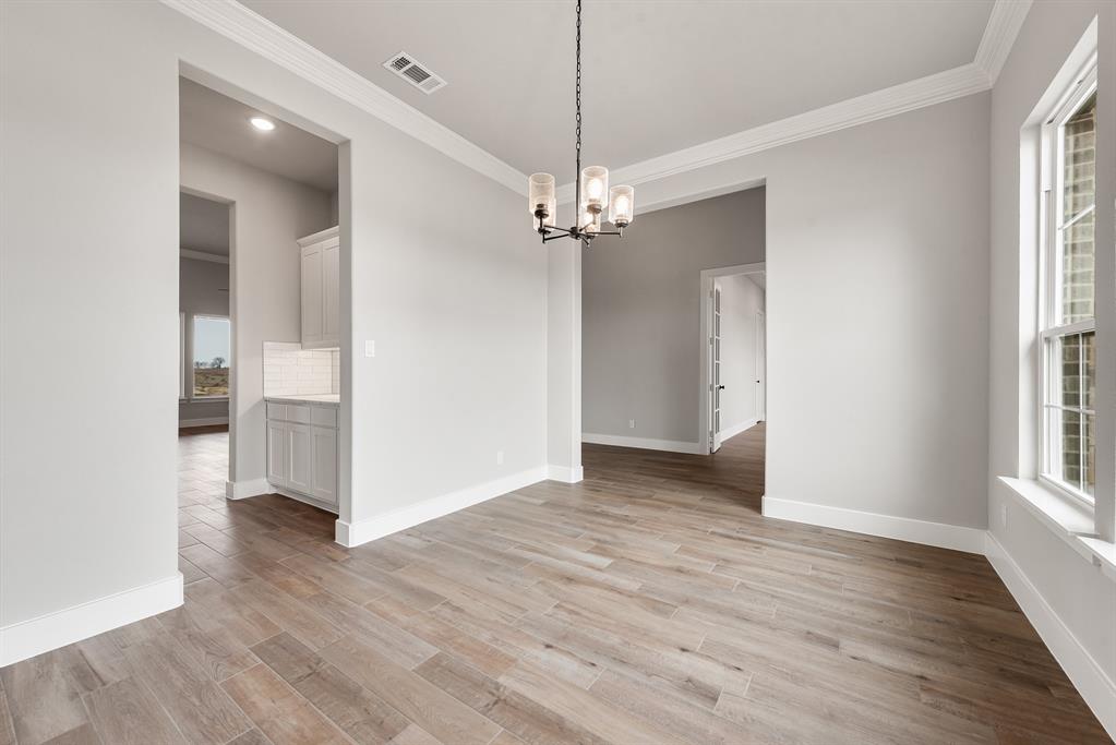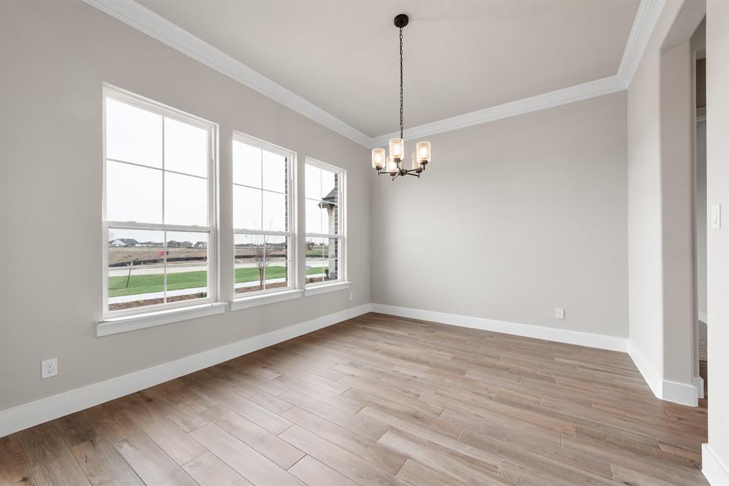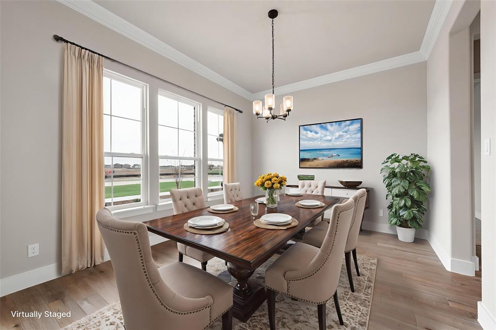You're greeted by an open foyer, setting the tone for the home's inviting atmosphere. A luminous dining room awaits, perfect for hostinng gatherings with friends and family. Adjacent to the foyer, discover two versatile flex rooms, adaptable to your every need. Continue through to the heart of the home, a sprawling family room adorned with a cozy fireplace, nestled near a charming nook and kitchen boasting ample counter space and storage areas. On the right side of the home, three traditional bedrooms each feature a walk-in closet and are accompanied by two bathrooms.The laundry room further enhances functionality. For added entertainment, the media room, ensuring every member of the family has a space to fulfill their passions. On the opposite side, the owner's suite awaits, offering a sanctuary of luxury and a stunning owner's bath and an incredible walk-in closet Step outside to the covered back patio, where you can bask in the gorgeous DFW weather and embrace outdoors.