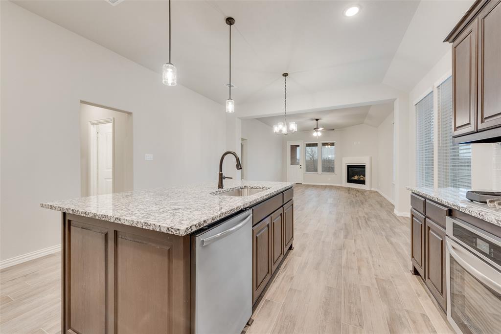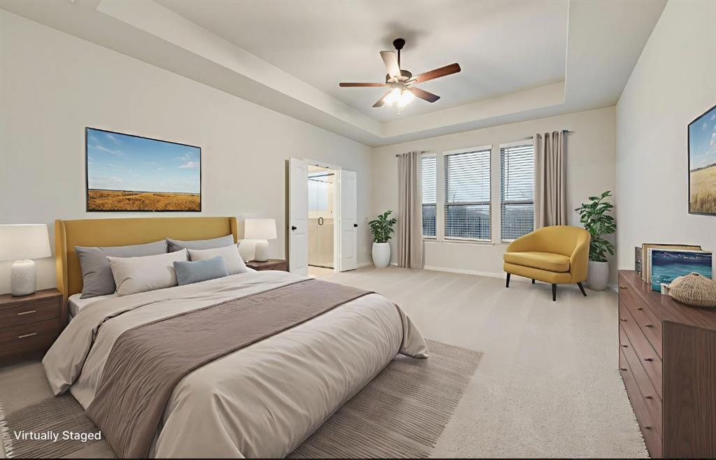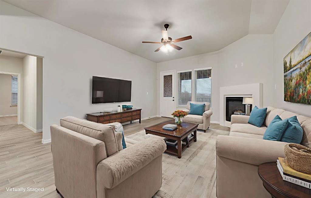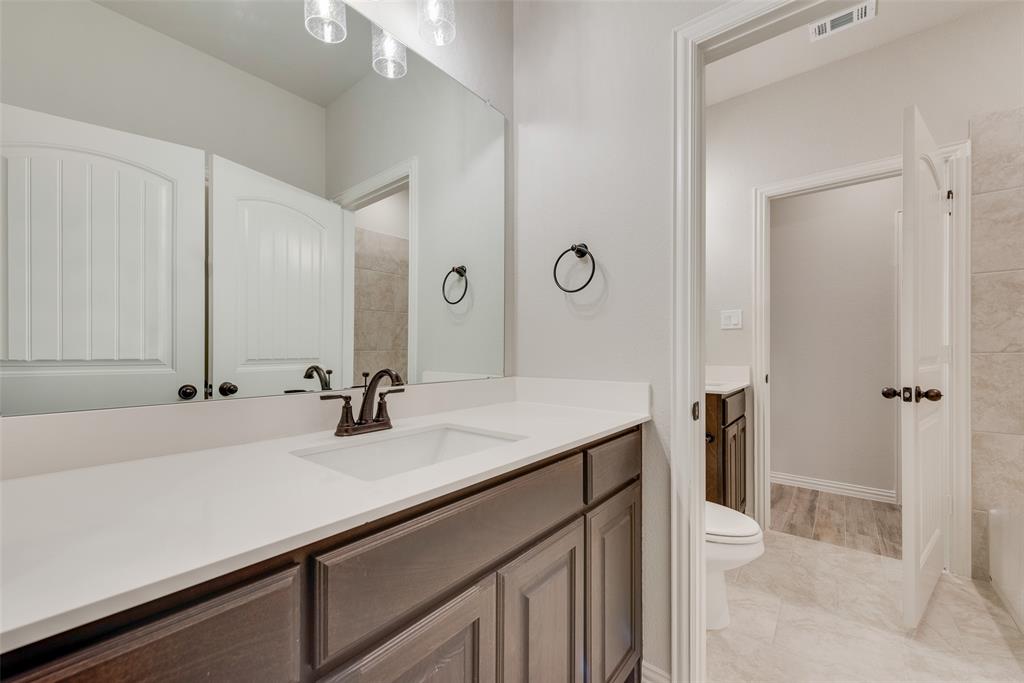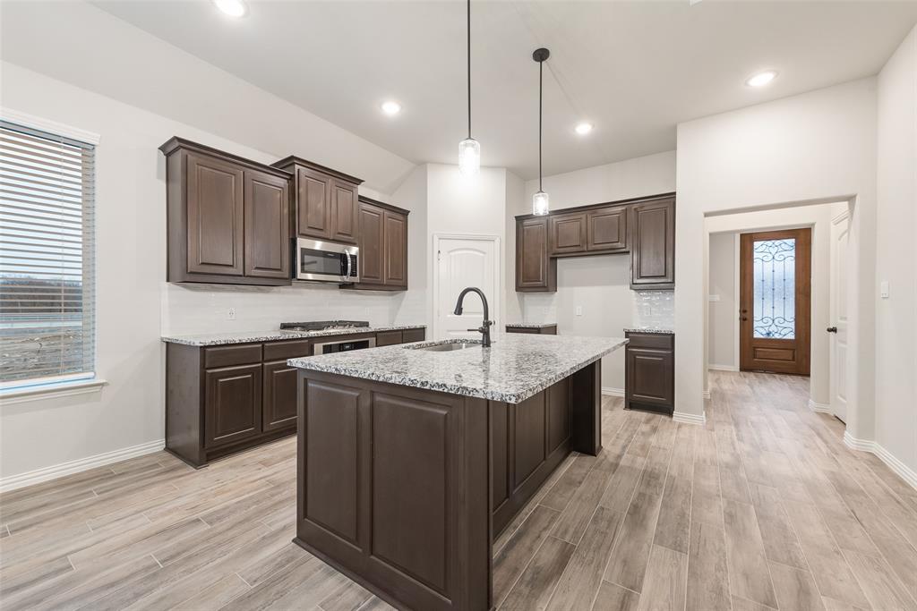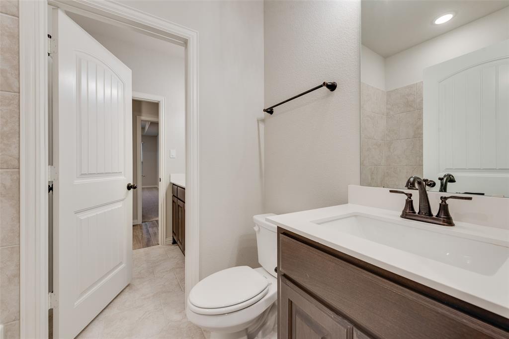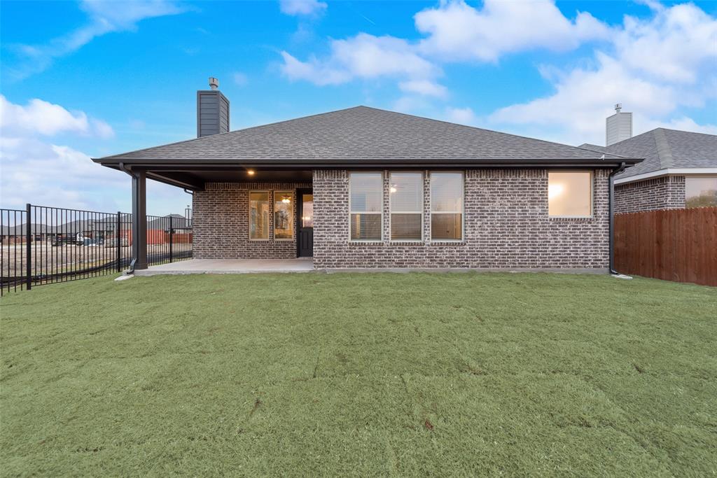 A clearly defined foyer and flex room gives definition to this entryway. The kitchen and dining room are one unified area open to an oversized living room. With three secondary bedrooms, the possibilities to personalize are endless. The smallest room is right around the corner from the owner’s suite, making it the ideal nursery or toddler’s bedroom. In the center of the home lies the third bedroom and a jack-and-jill bathroom with easy access to both hallways off the dining and living space. Toward the front of the home, the fourth bedroom is a great retreat for your guests to feel they have their own space when they come to visit. The laundry room is right off the kitchen and has an entrance to the 2-car garage, allowing it to double as a mudroom. You can also enjoy beautiful Texas days on the patio right off the living room. Perfect your barbequing or spend time with your kids in the backyard.