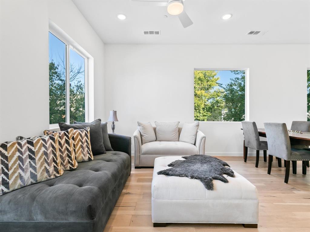 Modern Industrial Townhome in Prime Dallas Location!  End unit with private rooftop terrace offering skyline views—perfect for relaxing or entertaining. Located just minutes from Downtown Dallas, White Rock Lake, Lakewood, the Katy Trail, and SMU. Easy access to Deep Ellum, Kessler Park, and Bishop Arts for dining, shopping, and nightlife. Less than 5.5 miles to Love Field for quick travel.  Oversized garage + guest parking. Inside, enjoy tall ceilings, wide plank floors, and an open-concept layout with high-end finishes. Spacious kitchen, living, and dining areas with a convenient half bath on the main level. The expansive primary suite features a large walk-in closet, dual sinks, and an oversized shower.  Industrial modern design throughout. Shared dog run on-site. Over 7 gyms within 5 miles and multiple grocery options including Whole Foods nearby. A perfect blend of style, space, and convenience—ideal for professionals, students, or anyone looking for upscale urban living.