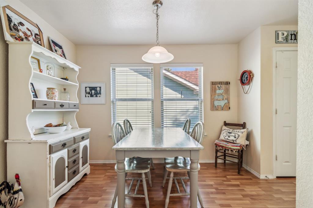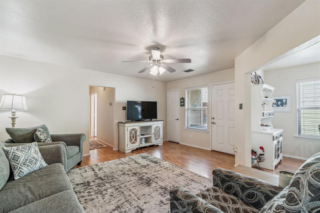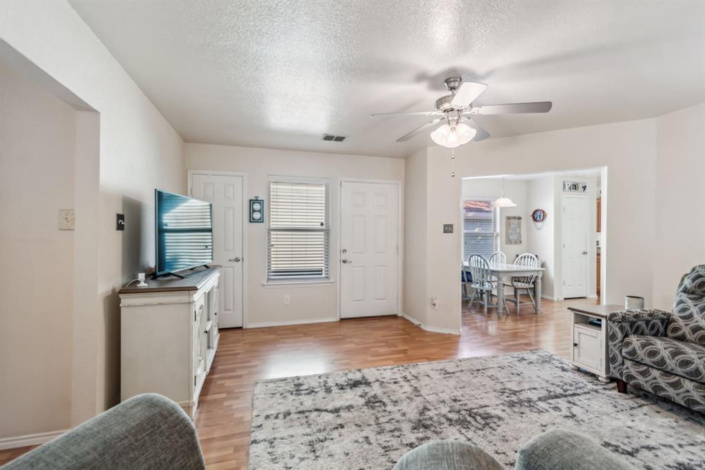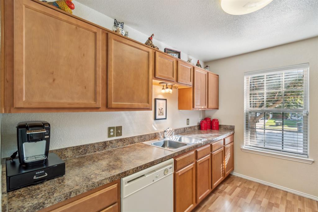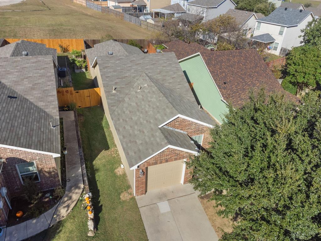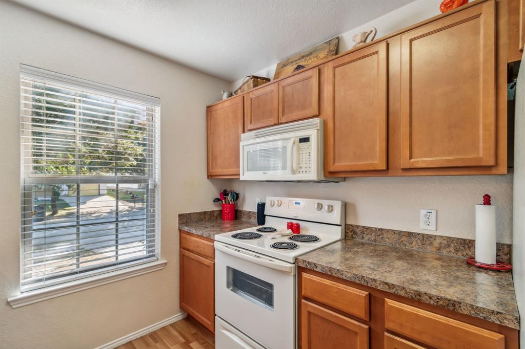 Here's your low-maintenance living at an affordable cost! This fantastic home is priced to sell and has been wonderfully maintained—ready for new owners. With a small footprint, every inch has been well utilized, making the home feel larger than it appears on paper. The large primary bedroom easily accommodates a king bed and features a vanity nook, deep walk-in closet, and access to the covered patio. The kitchen boasts ample cabinetry, white appliances, an over-the-stove microwave, and a pantry. Interior paint, wood-look laminate flooring, and tile in the bathrooms all appear in fantastic condition. The single-car garage fits a vehicle with room for storage and provides access to the attic for even more space. The foundation was repaired in 2024 with a transferable warranty, and the home passed the post-repair hydrostatic plumbing test. Other notable recent upgrades include fresh exterior paint, replaced french door in the primary bedroom, and exterior siding repaired from minor damage. Enjoy a low-maintenance backyard with sturdy fencing that backs up to a church field—offering privacy and great views of the big Texas sky. A savvy homebuyer could buy as a primary with long-term prospects of converting it to an investment property when ready to move up. Plus, it's very easy to make small cosmetic tweaks that will really make this home pop! Situated just minutes from I-30 and 820, you'll have quick access to anywhere in the Metroplex.
