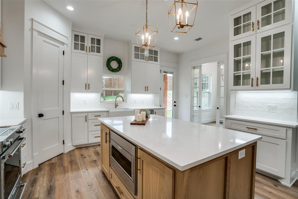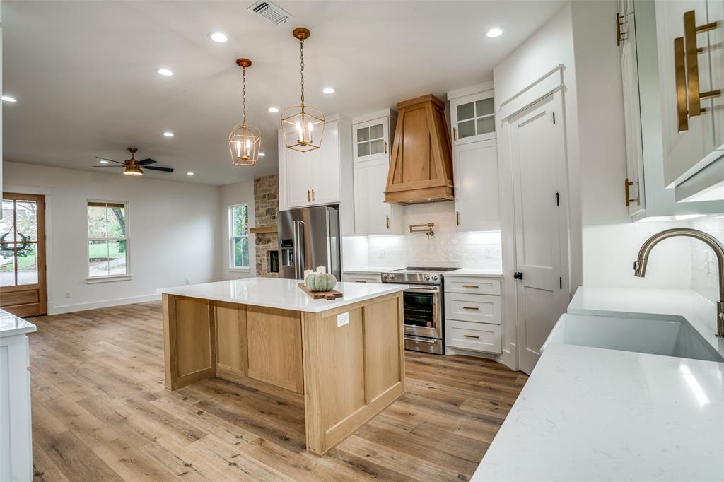 *Solid wood shaker style cabinets throughout home. *Kitchen includes white oak Island and shaker style wood ventahood.