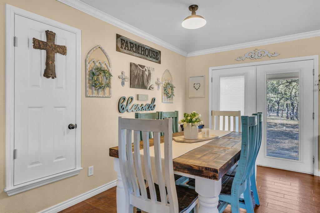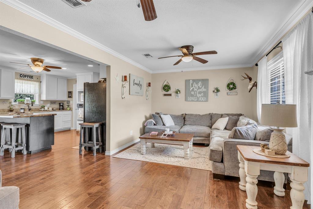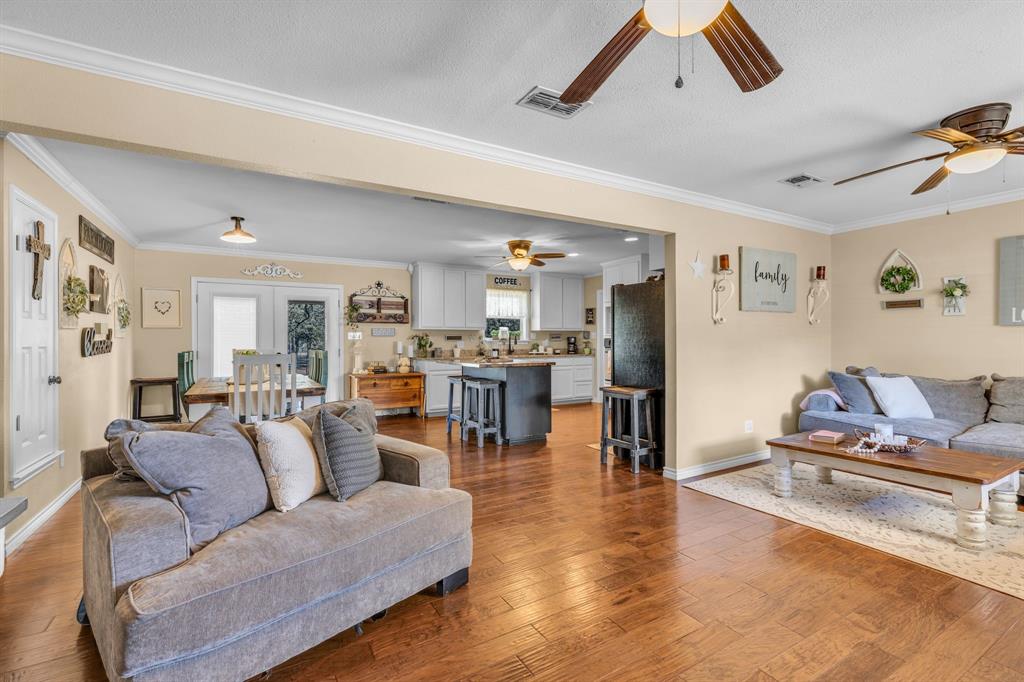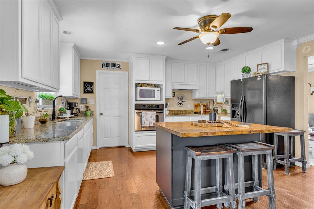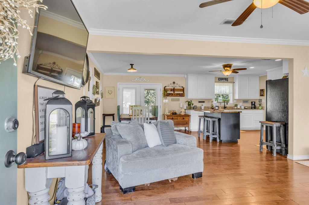 This charming 4 bedroom, 2 bath home offers a peaceful country setting and sits on over 2 acres with tons of trees, with access to Hwy. 281 providing the perfect balance of rural tranquility and convenience. Featuring an open floor plan, hardwood floors, a great living area. The kitchen has granite counter tops, an island with storage and a laundry-utility room off of the kitchen and a pantry! New roof in 2020, 50-amp RV hookup available, septic pumped in 2023 city water is used by the current owner, but there is a well. The large back yard has fenced sections, so bring your animals. There are some chicken coops already there for you. There is a 30X40 shop that needs some love. Come see this home today and make it yours, just in time for Christmas.