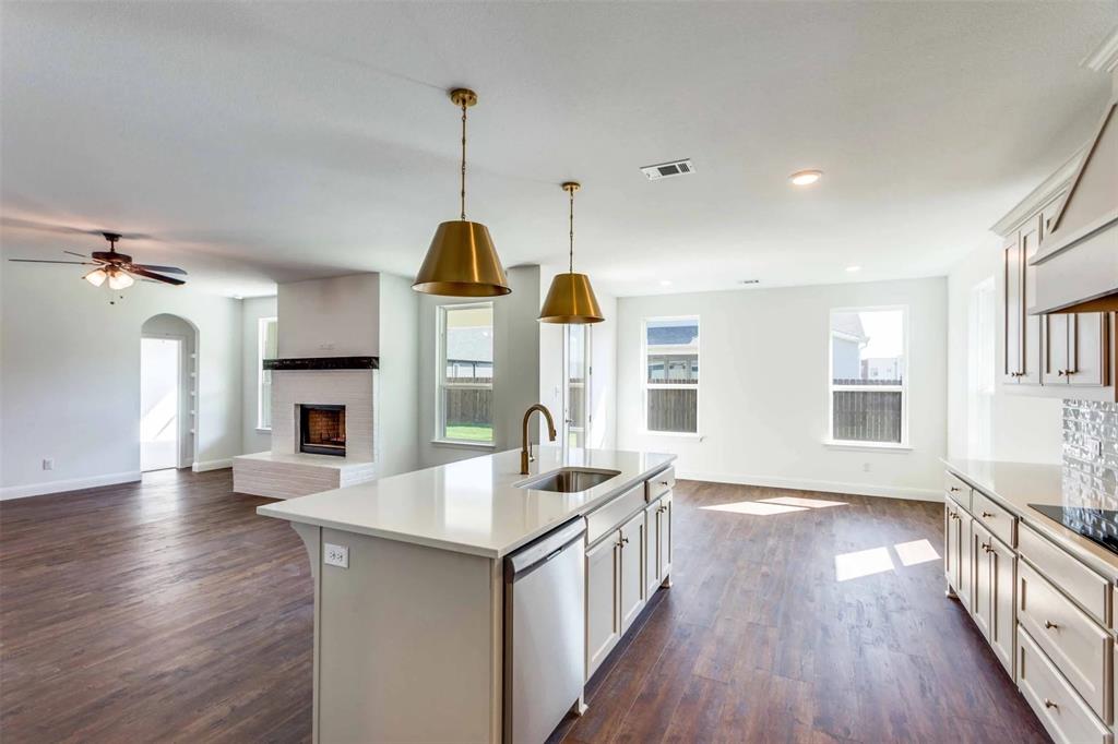 Experience comfort, quality, and designer style in this beautifully crafted new build located in the heart of The Reserves at Trinity, a peaceful cul de sac community in the highly sought after Aledo ISD. This 4 bedroom, 3 bath home features an open concept layout designed for both everyday living and entertaining. Luxury vinyl wood style flooring flows through the entry, living room, kitchen, mudroom, and hallways. The chefs kitchen is equipped with stainless steel appliances, an oversized eat in island, and custom finishes that offer both function and flair. A striking brick arch welcomes you at the entry, while the spacious living area features a cozy wood burning fireplace with a raised hearth and brick surround. Built in mud lockers offer daily convenience, and designer lighting and tile selections shine throughout the home. The private owners suite includes a relaxing soaker tub, separate shower, dual vanities, and a generous walk in closet. Enjoy incredible neighborhood amenities including a resort style pool, fitness center, walking trails, and playground, all just steps away from shopping and dining. Ask about available homes this summer and current builder incentives. Backed by expert craftsmanship and builder incentives, this home offers both beauty and value in a growing master planned community.Buyer or buyers agent to verify all information. Ask about other homes available this summer and our current incentives!