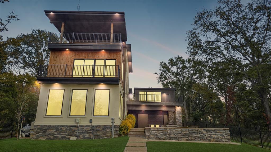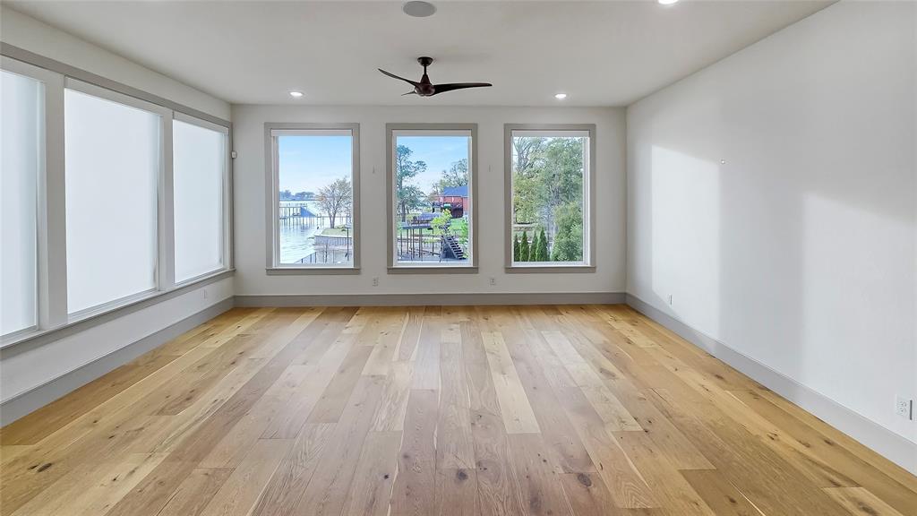 Located at the very end of the street, this beautiful home offers privacy in elegance. This is a home that can comfortably sleep 15 and entertain in style. The 1st floor has an open floorplan & picturesque views, 2 spacious LRs on either side of the gourmet kitchen & a DR. Upstairs, you’ll find large bedrooms with WIC, media room with built-in cabinets & a casita with a full bathroom across the roof top deck. The 3rd floor retreat features the primary bedroom with an ensuite bath, private balcony, sitting area & bonus room perfect for a gym. Step outside to discover your private entertainer's oasis with lake balcony views from every floor. The yard boasts a heated pool, hot tub, outdoor kitchen, fire pit & dock with 2 slips, party deck & two jet ski lifts. Additional amenities include a 4 car garage, RV & boat parking, workshop with vehicle lift & an electric gate for privacy. No HOA!